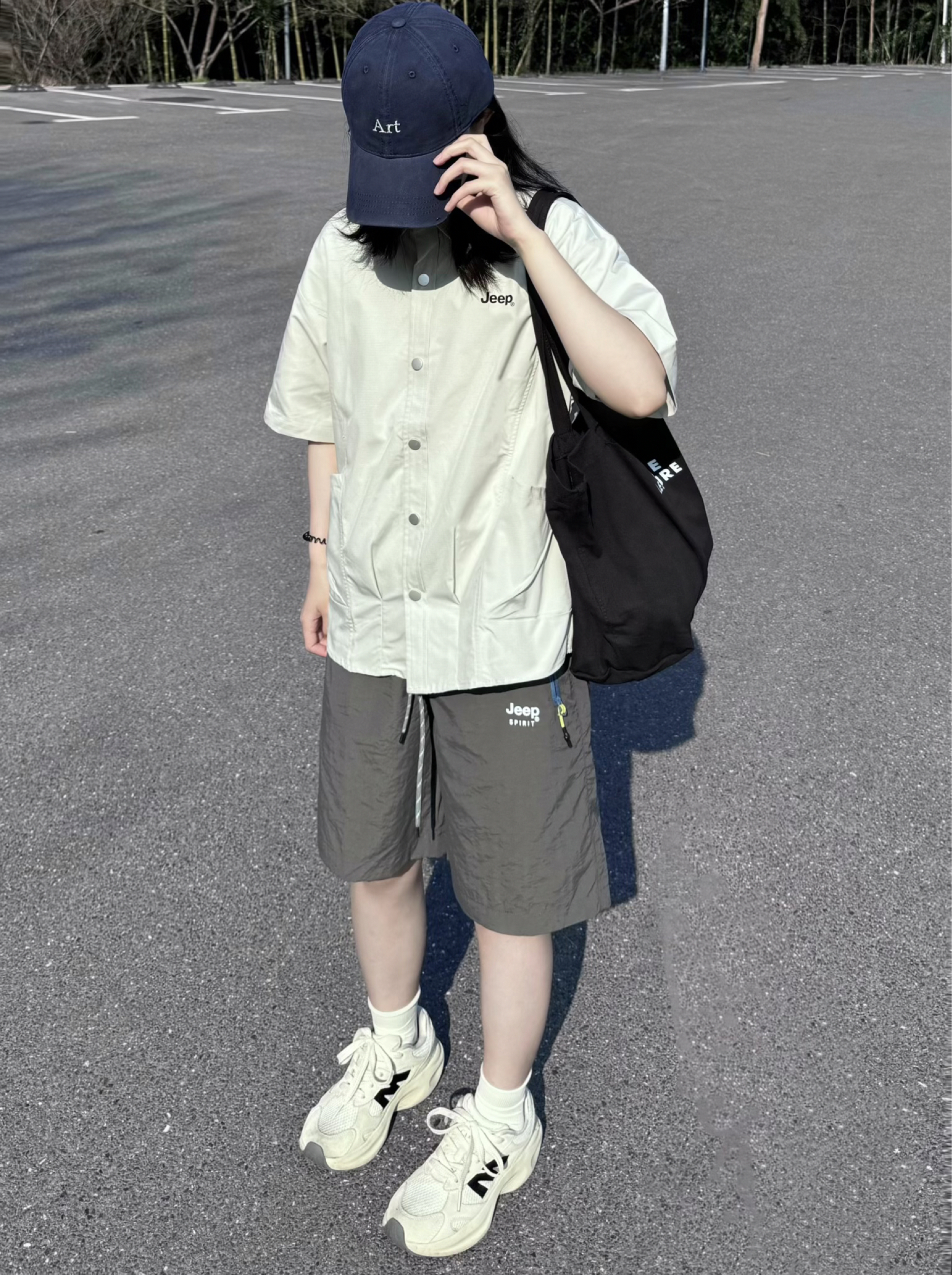 我日常的衣柜里少不了的单品感觉就是衬衫了 单穿还是当内搭都可以 最喜欢今天身上穿的 Jeep家的这件浅灰色衬衫了下身搭配五分裤刚刚好 很有少年感的一身穿上老爹鞋棒球帽 而且日常通勤休闲穿都很百搭 尺码参考 160/45Kg M码
