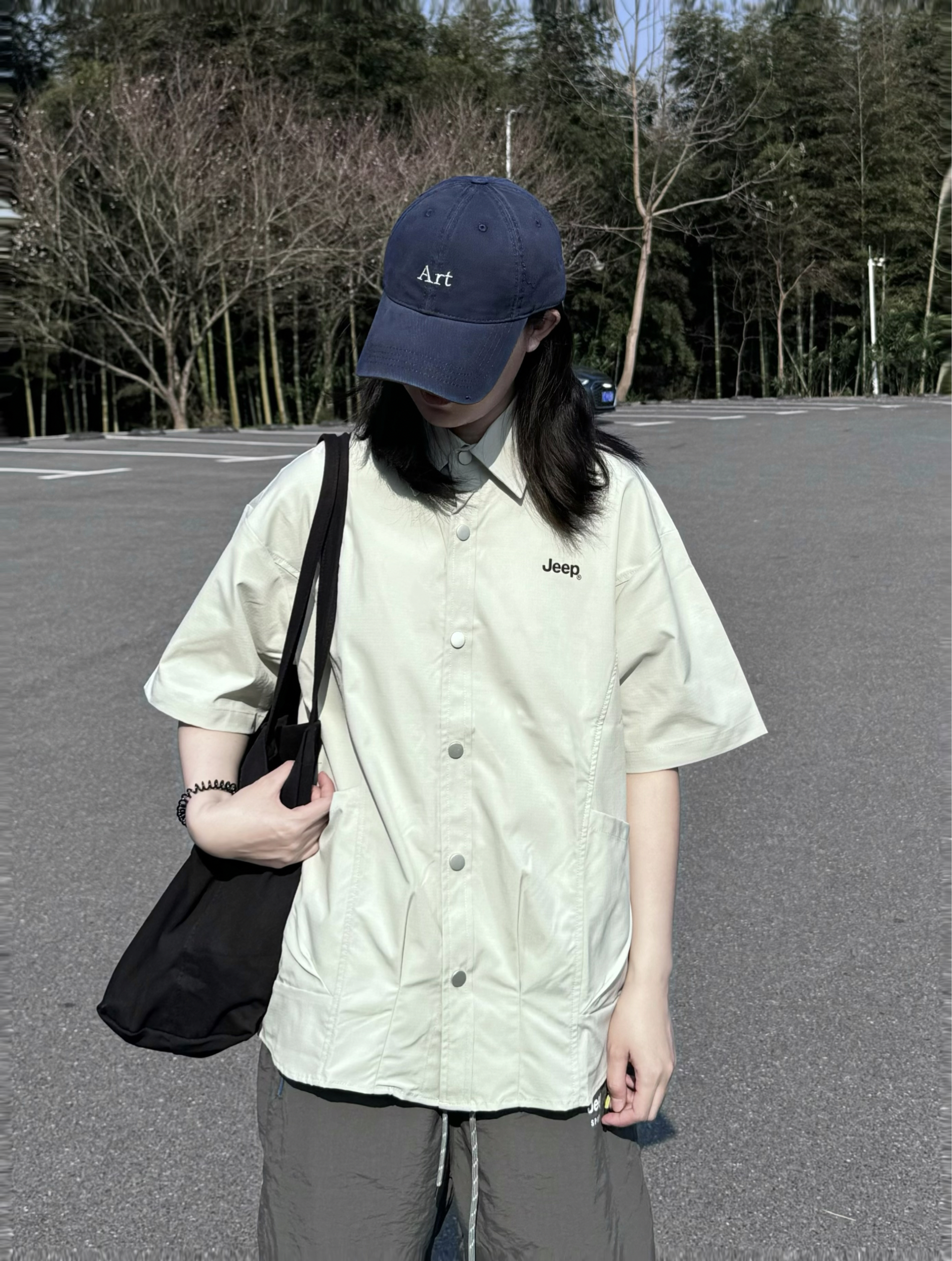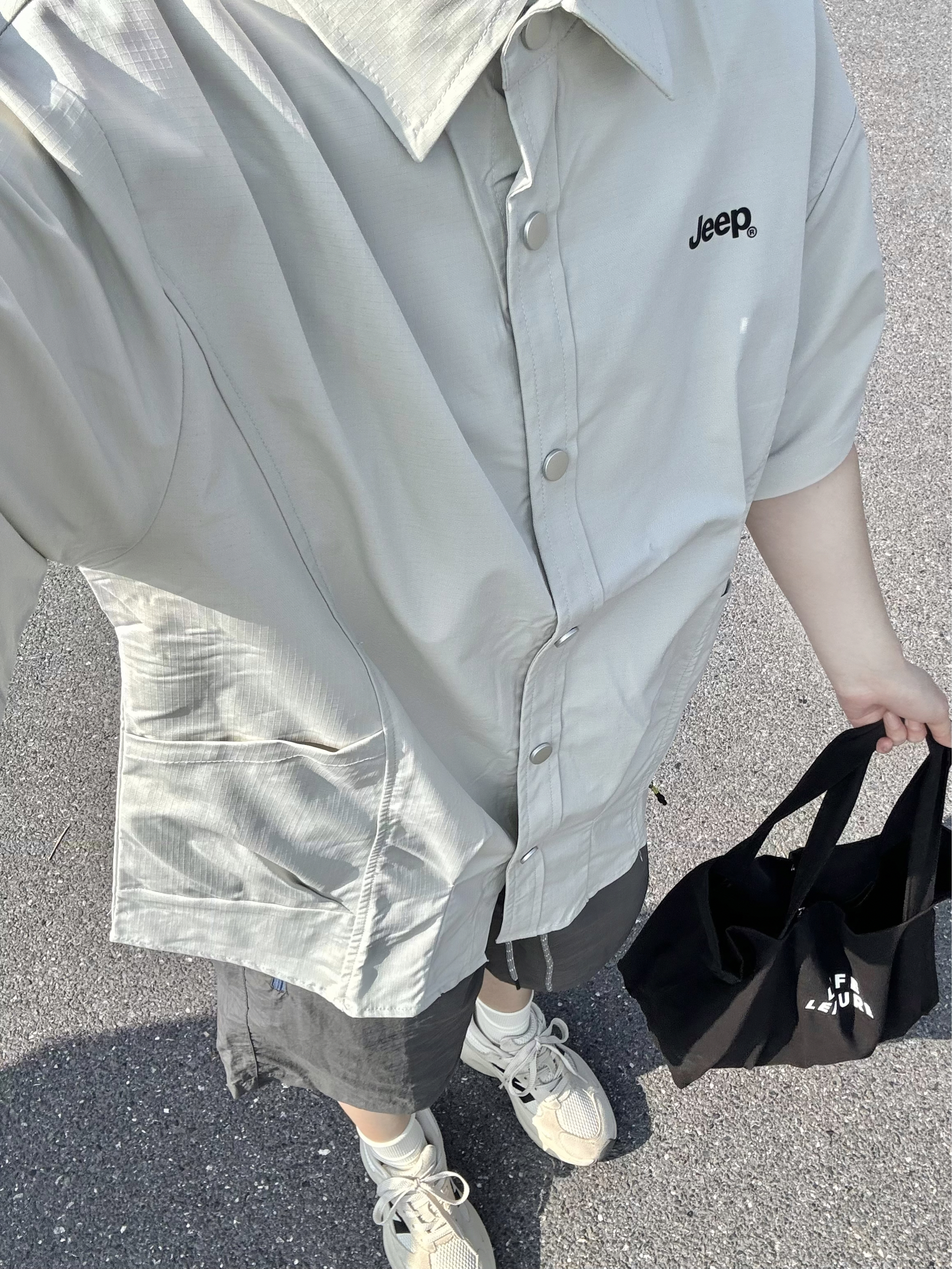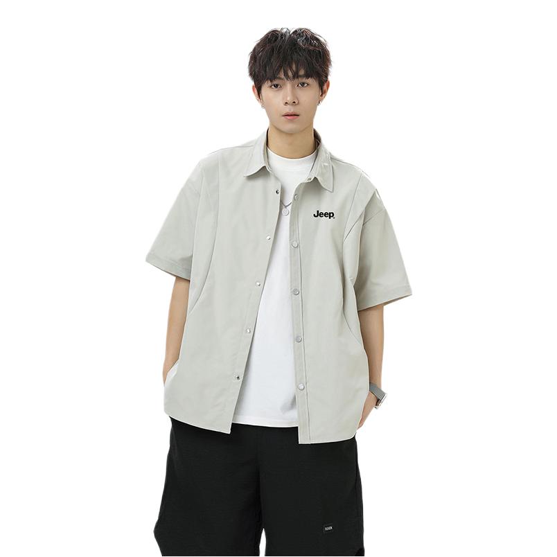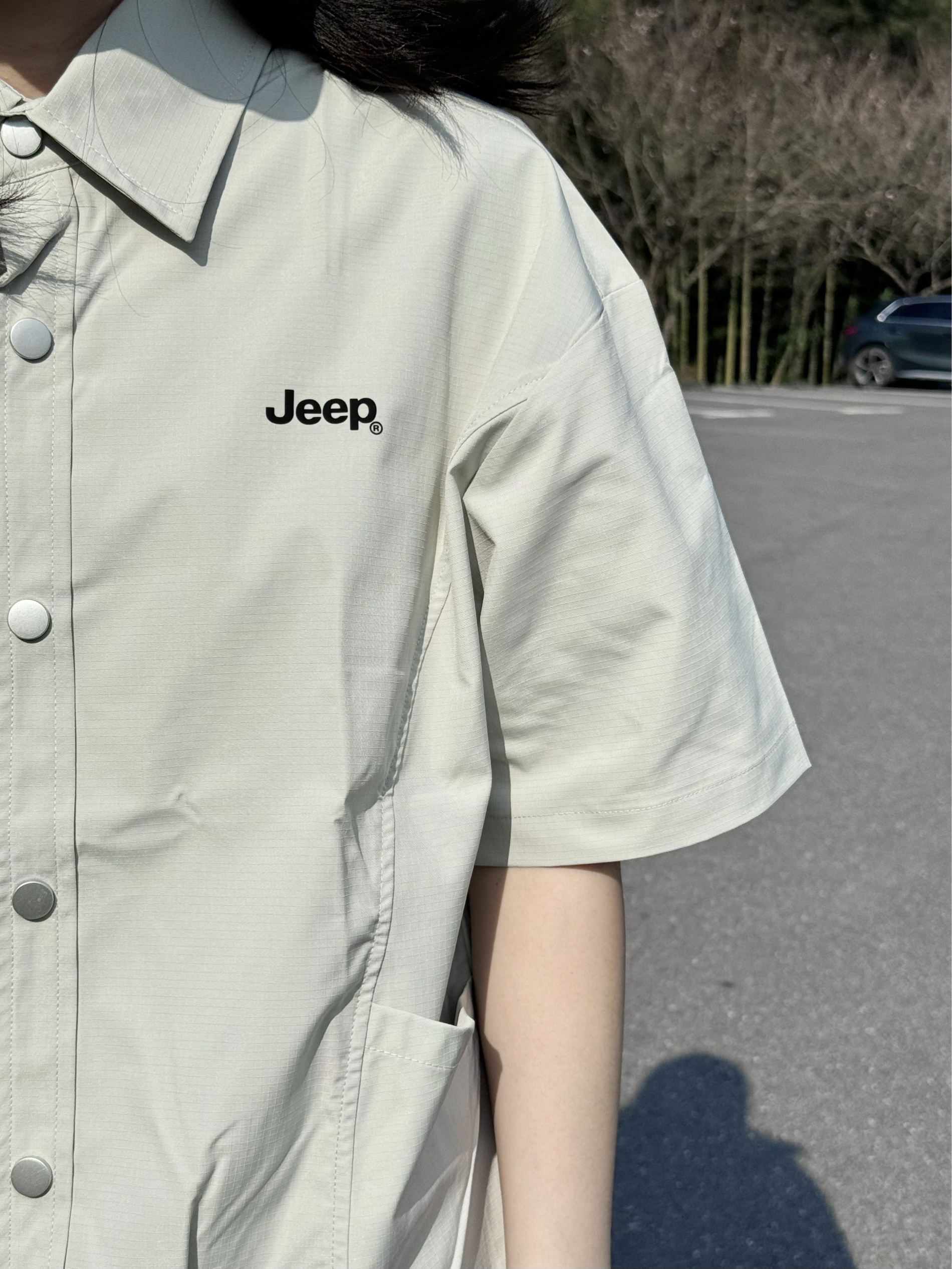 本篇笔记关联了Jeep/吉普 休闲系列透气日系工装单排扣短袖衬衫 P85DMWH079 浅灰等商品,为用户提供真实的使用体验和购买参考。