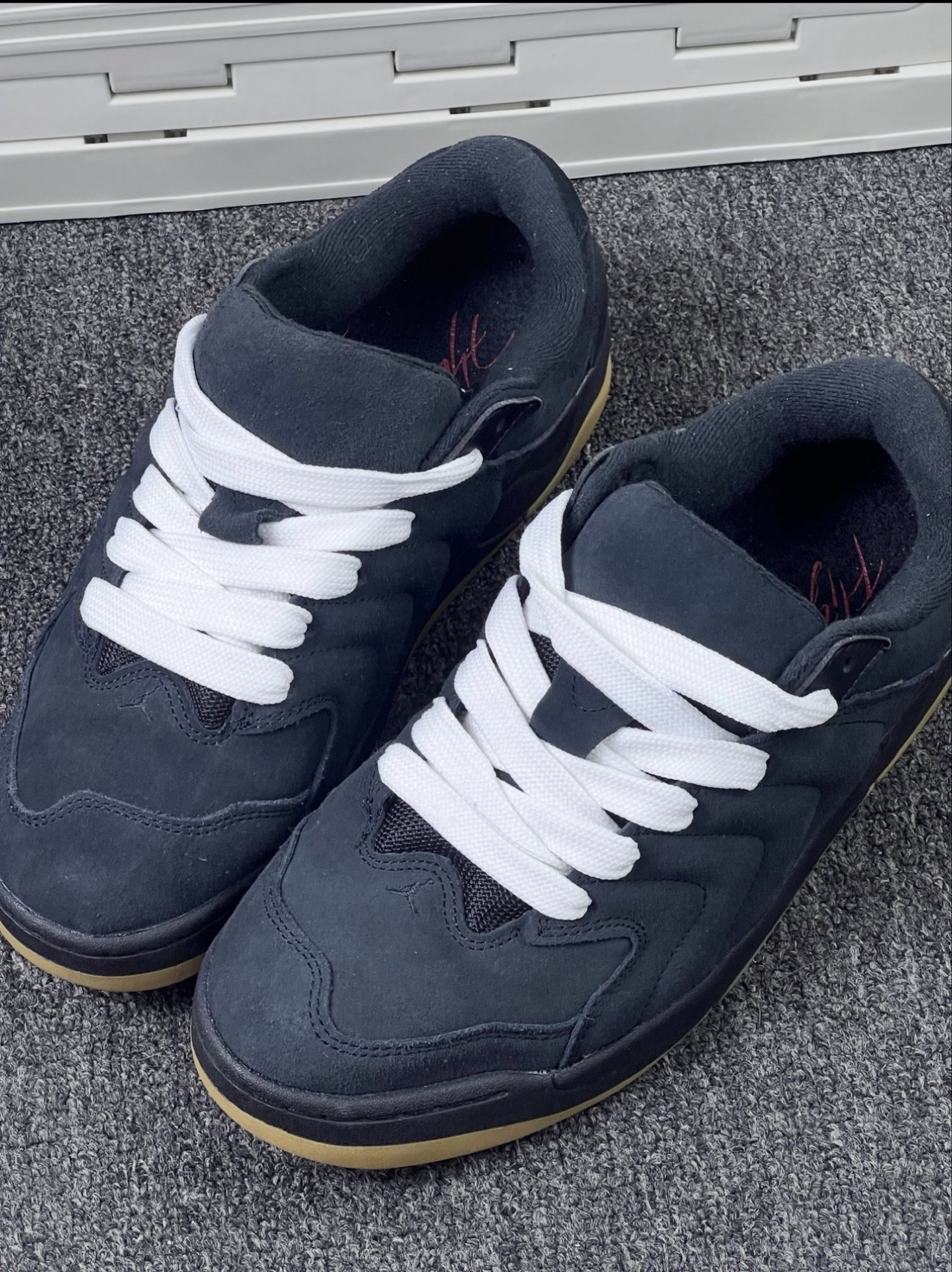 这是一双经典的空军一号,全黑的鞋身,整体鞋面也是用到了皮革的材质,摸起来很有质感,还有鞋子气垫设计是软软的不会那么板脚,上脚的脚感舒适无比。针孔的设计不会感觉到闷脚,高帮的版型增高这方面也是非常可以。这双鞋超级的酷,百搭潮流时尚,蛮适合爱帅帅的友子们来上脚这双空军一号黑武士哦👍。