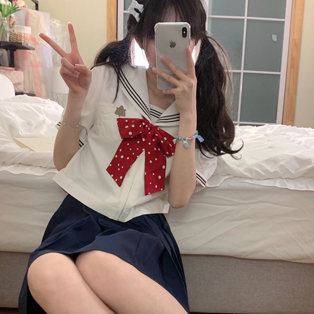 不想费脑搭配?这套直接搞定全套学院风!📦 实测淑好百这套水手服套装的两大亮点: ✅ 版型正:短袖不卡肩,百褶裙长度适中,对各种身材都友好 ✅ 省心值拉满:上衣+百褶裙一套配齐,出门效率翻倍 面料透气舒适,日常通勤或拍照都很出片 正统JK女孩的衣柜里,必须有它的一席之地!