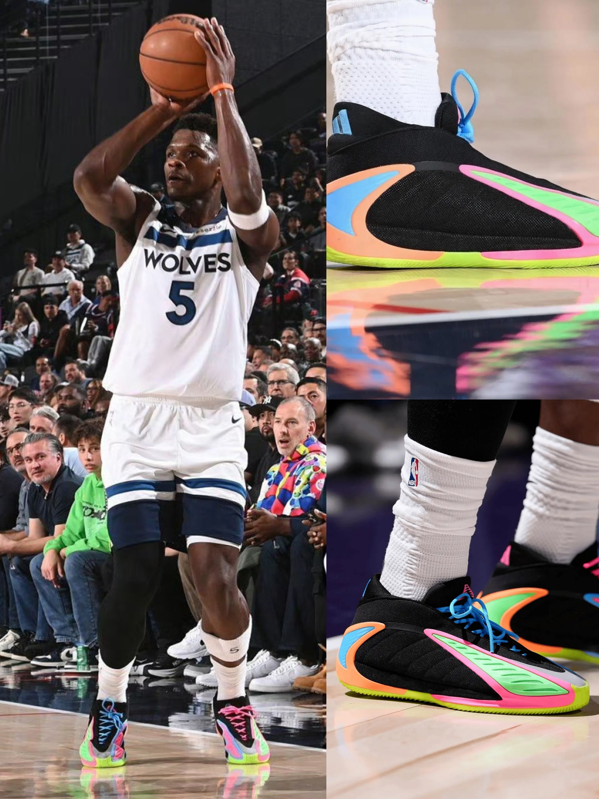 本场比赛中,爱德华兹上脚彩色adidas AE2,出战35分钟,投篮17中11,三分球8中3,罚球12中11,空砍36分2篮板5助攻1抢断。真的是带不动队友啊!