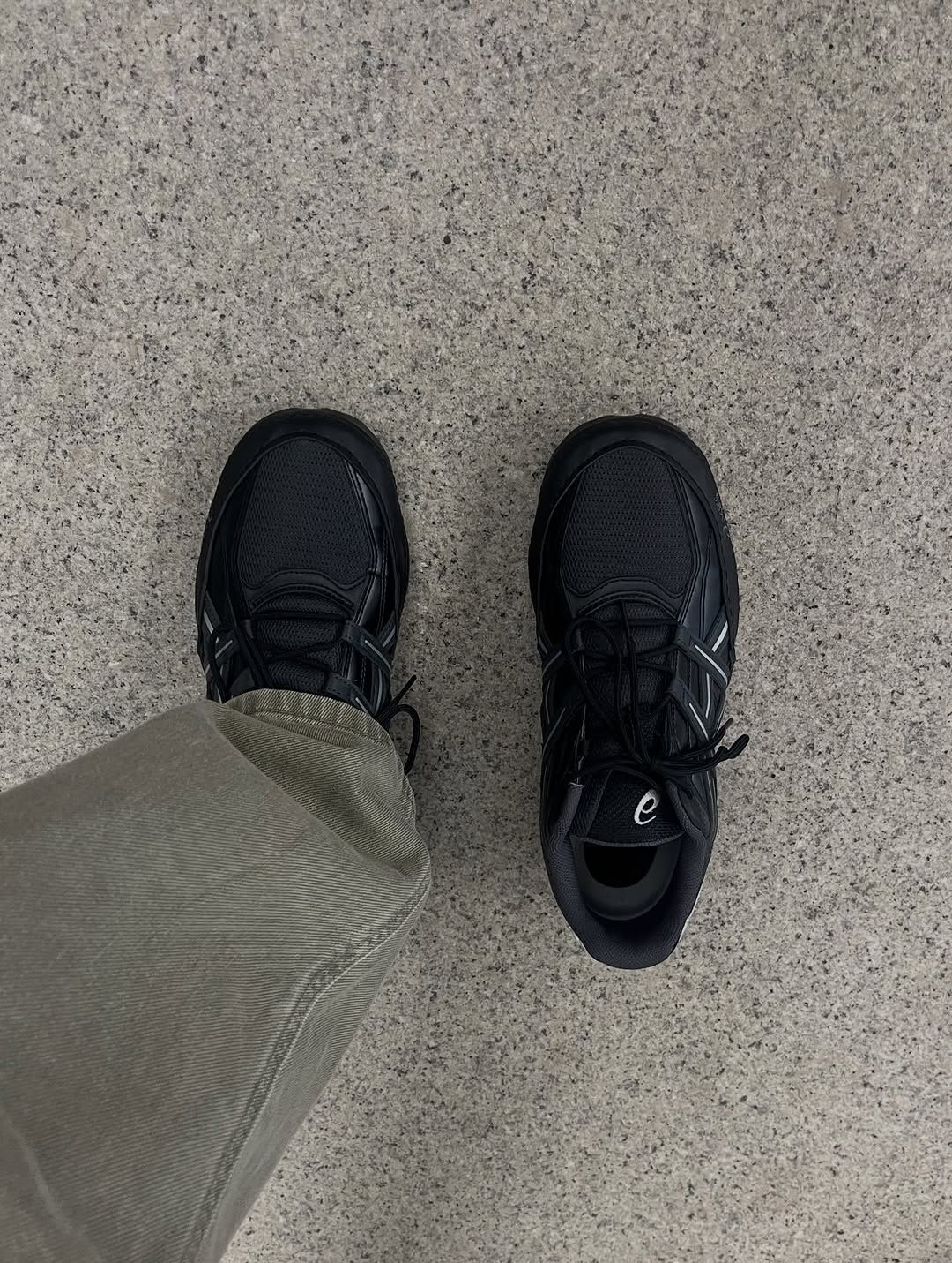 Asics黑银鞋真的承包了我近期所有搭配。 黑银拼接的复古鞋型,百搭又耐看,不管配迷彩工装裤、牛仔裤还是运动裤都很和谐,舒适度和颜值都在线,日常穿超合适。 搭配麂皮夹克,硬核又不失随性,随便一套穿搭都能靠它提升质感。