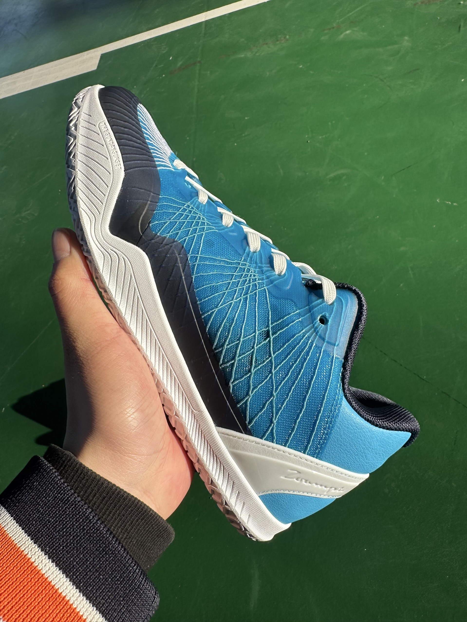 周末野球场接波,作为控卫每次急停变向都怕鞋子抓地不稳,总在突破的关键刻掉链子。好的球鞋从不是累赘,而是能让你放心把动作做满的赛场伙伴,蓝哮2代篮球鞋就是我的“实战搭子”。拿到手就被蓝白主色调戳中,鞋面的蛛网纹理像散开的闪电纹路,蓝白渐变线条勾勒出利落的鞋身轮廓,低帮造型搭配白蓝撞色的鞋底,放射状纹路视觉上超有冲击力,往球场一放辨识度直接拉满。上脚第一感觉是包裹特别贴合,不挤脚也不松垮,前掌贴地感很...
