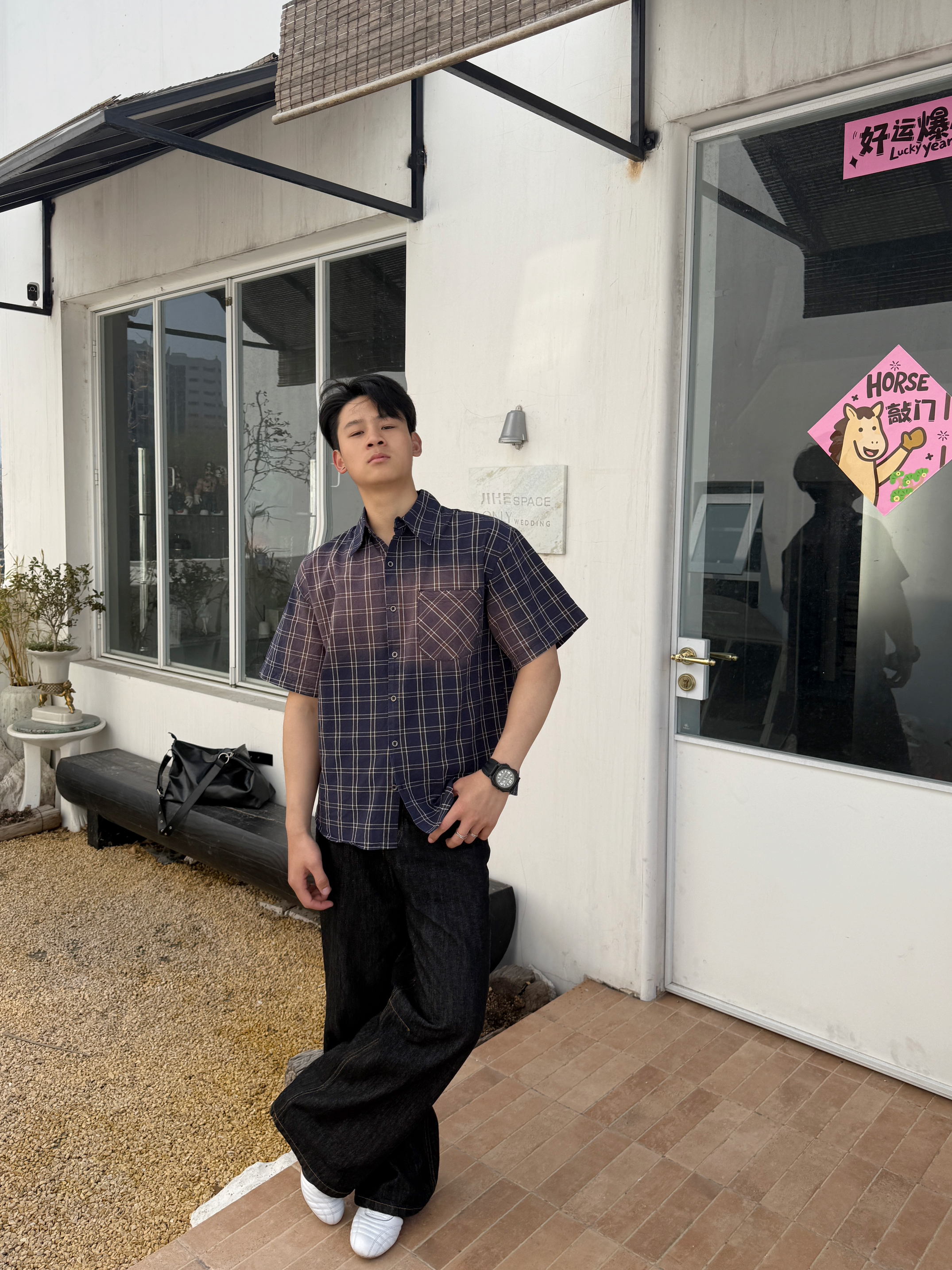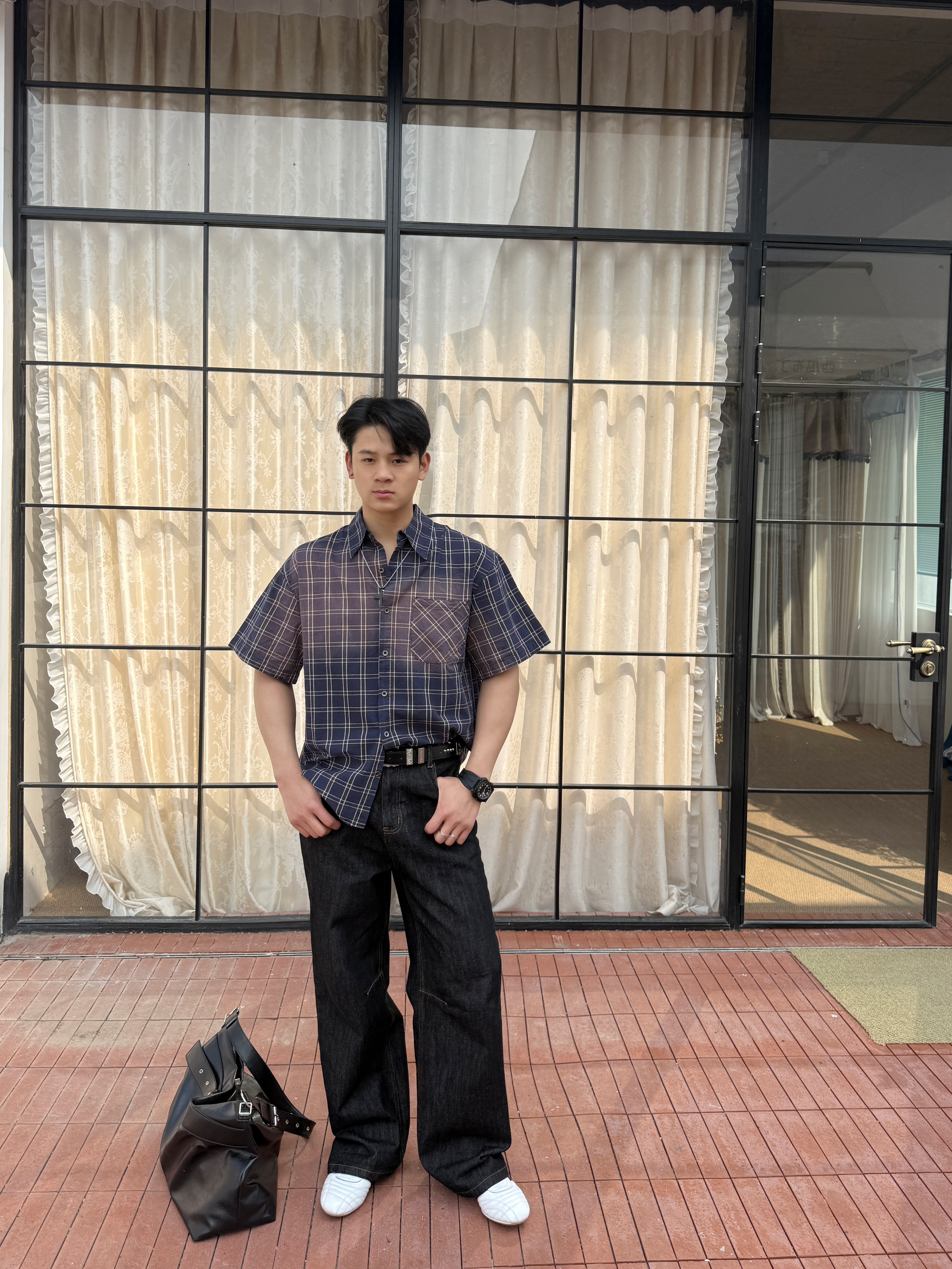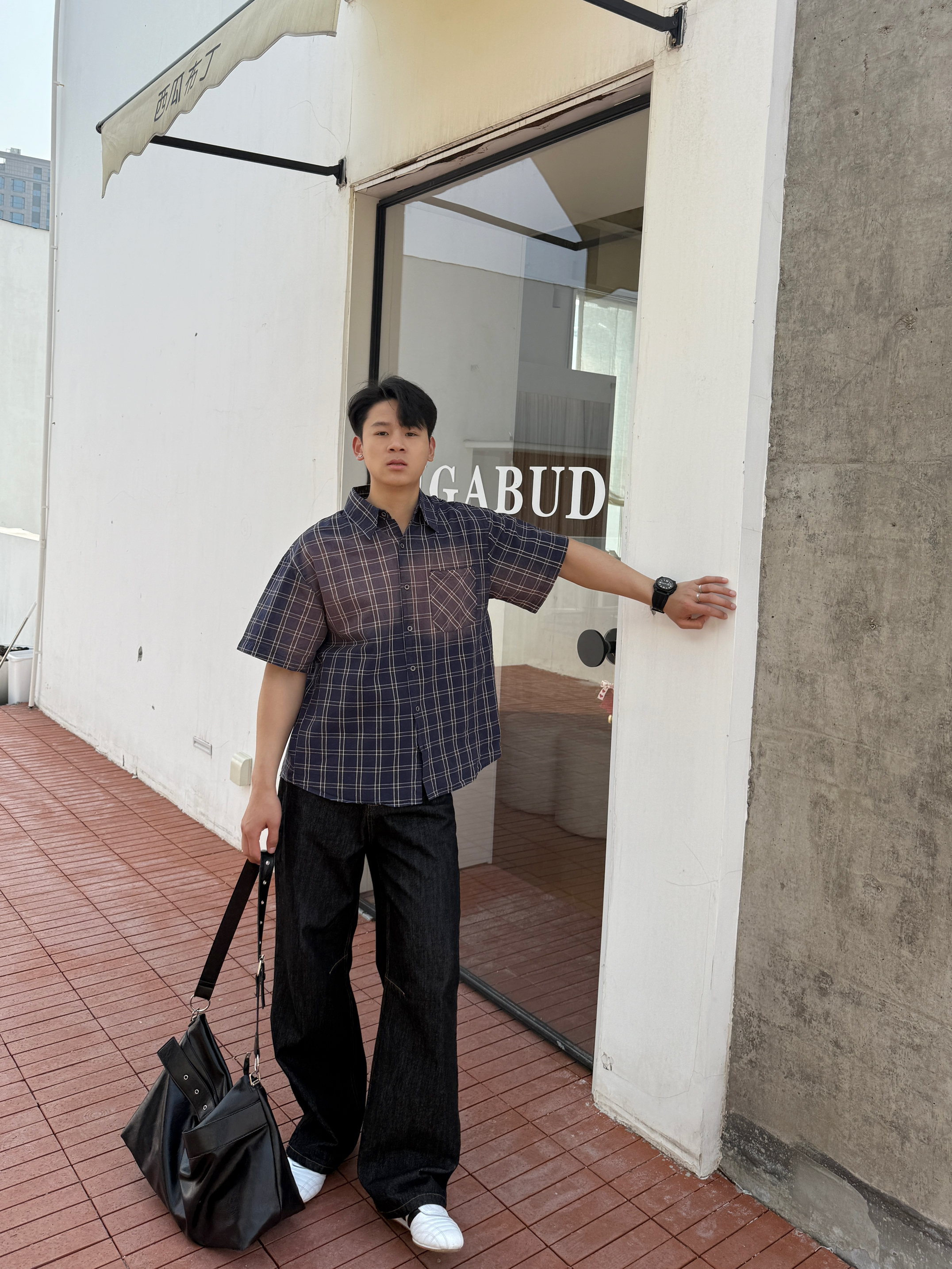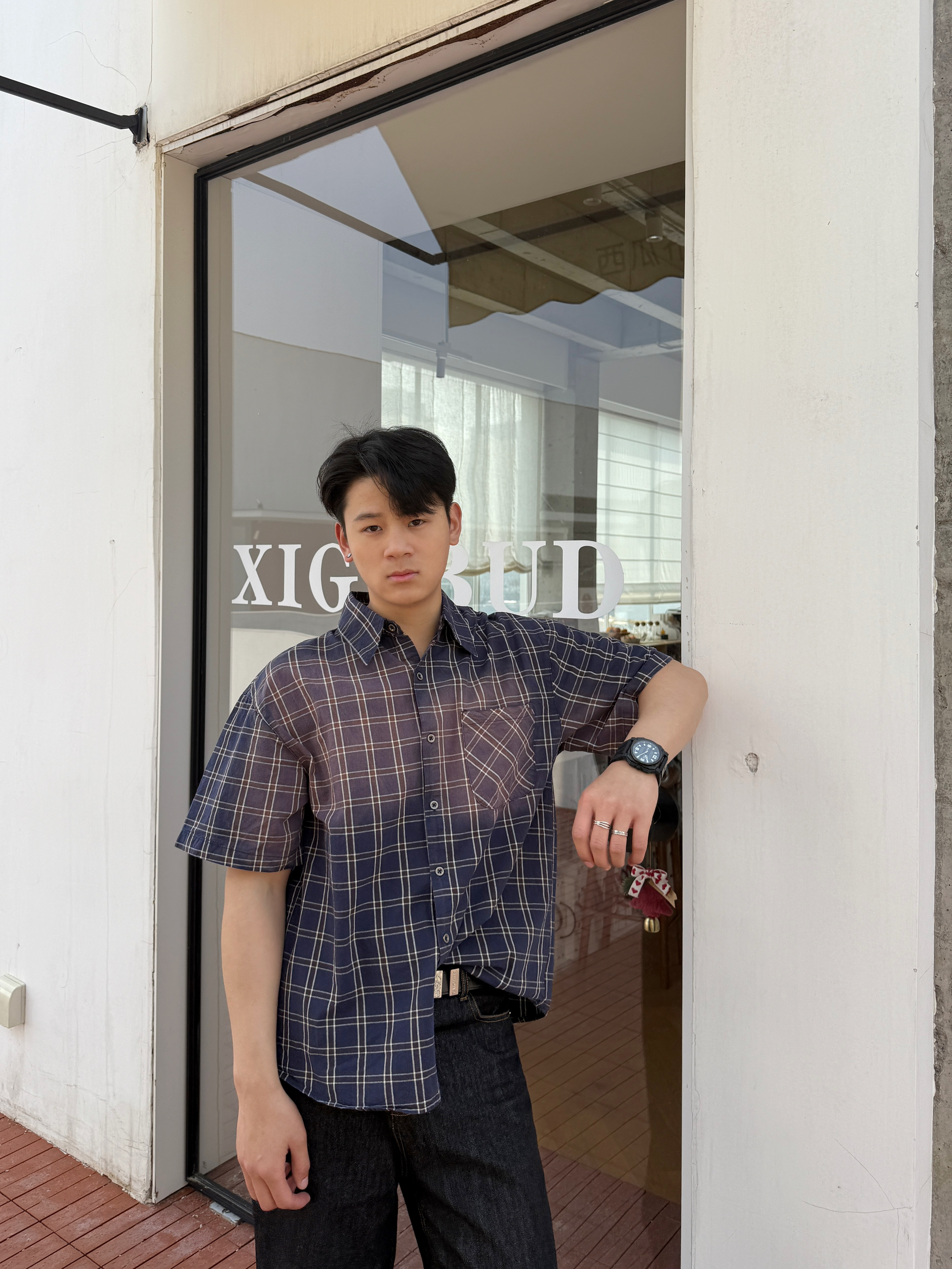 衬衫上身果然不一样 上衣我选择一件水洗做久复古短袖衬衫 翻领格纹宽松设计上身好看有特 裤子我选择一件直筒牛仔裤 直筒的设计加上原牛的质感上身显高藏肉 白色板鞋点缀整体穿搭 你感觉这样一身下来怎么样?