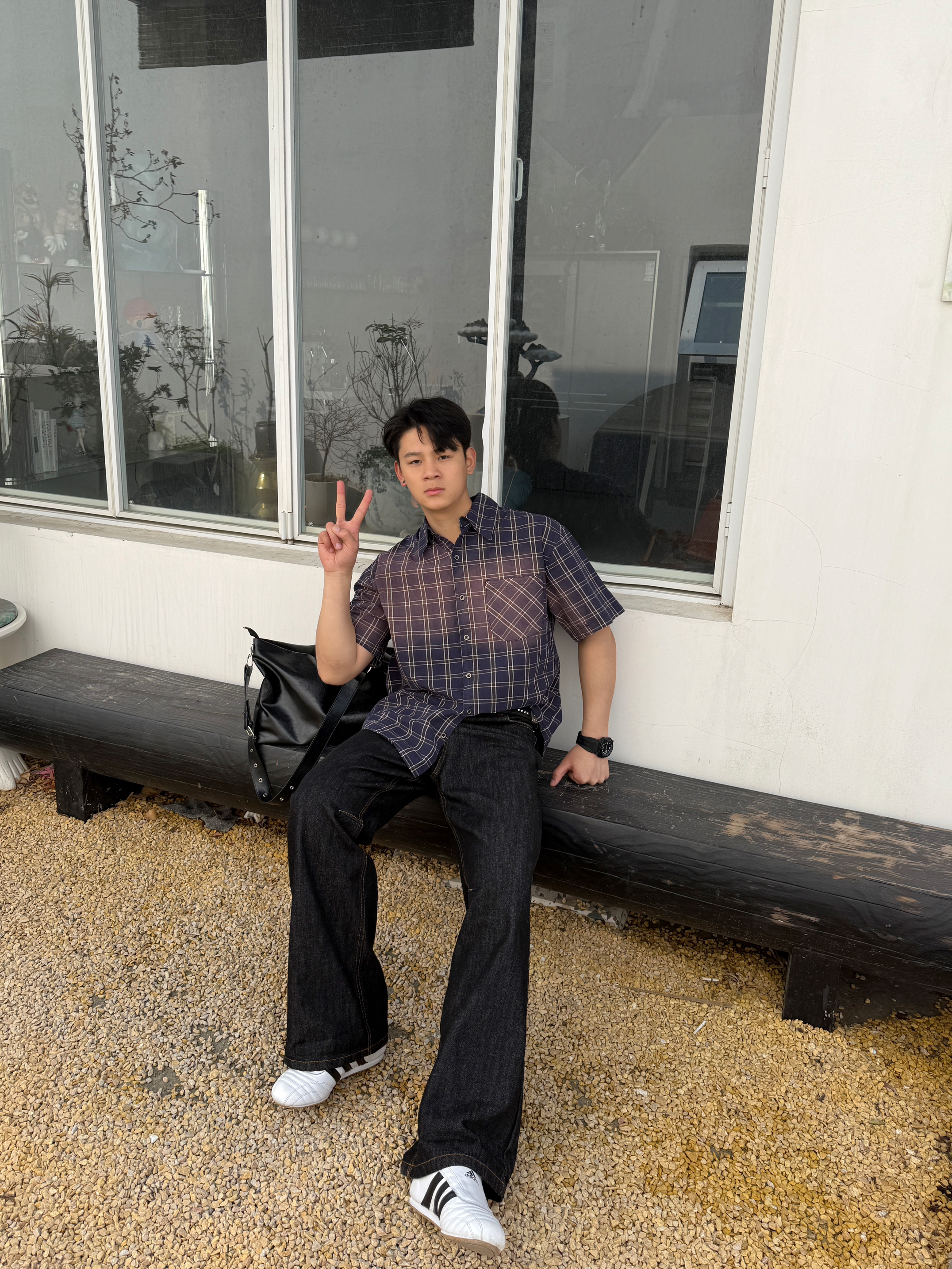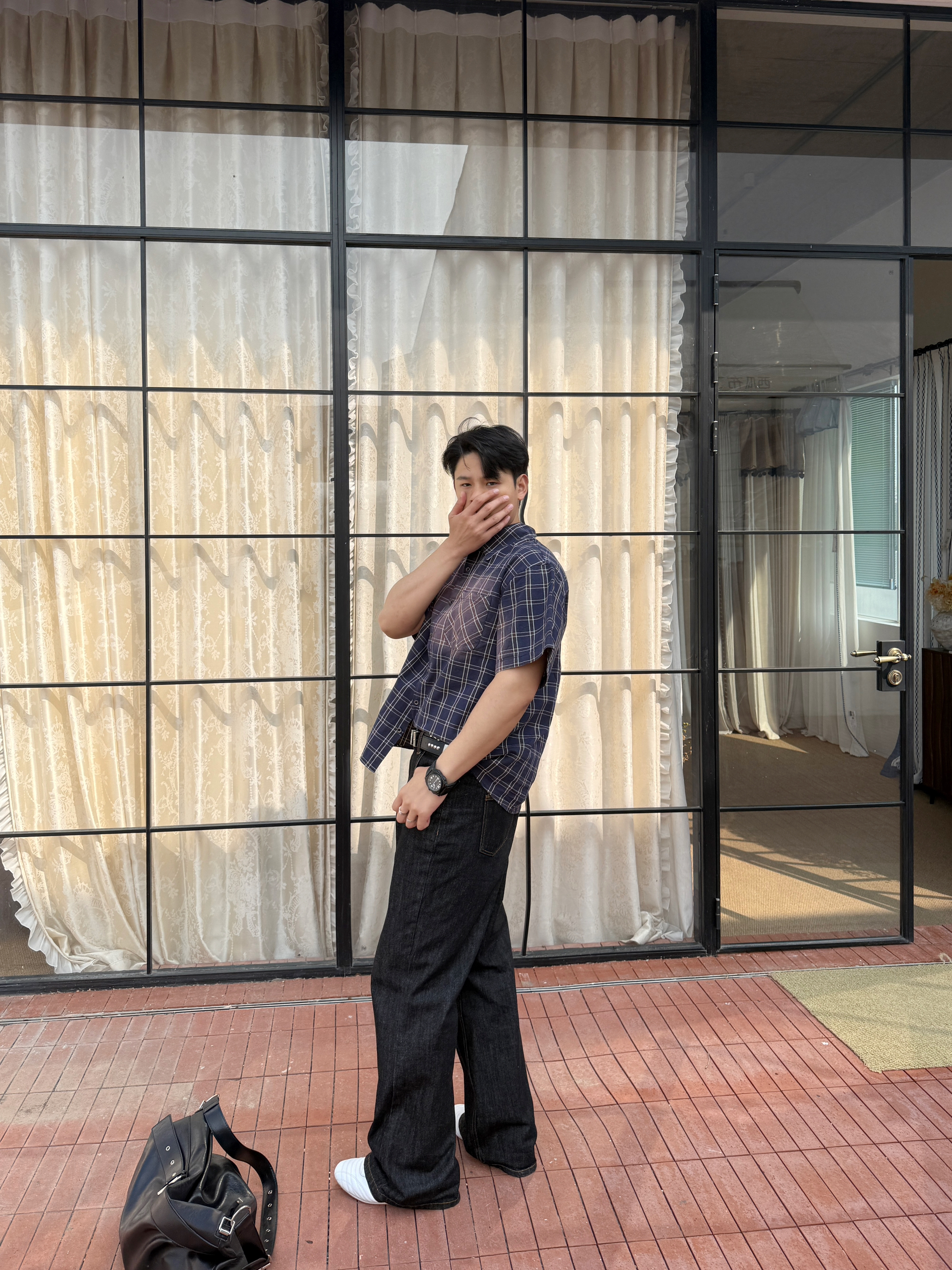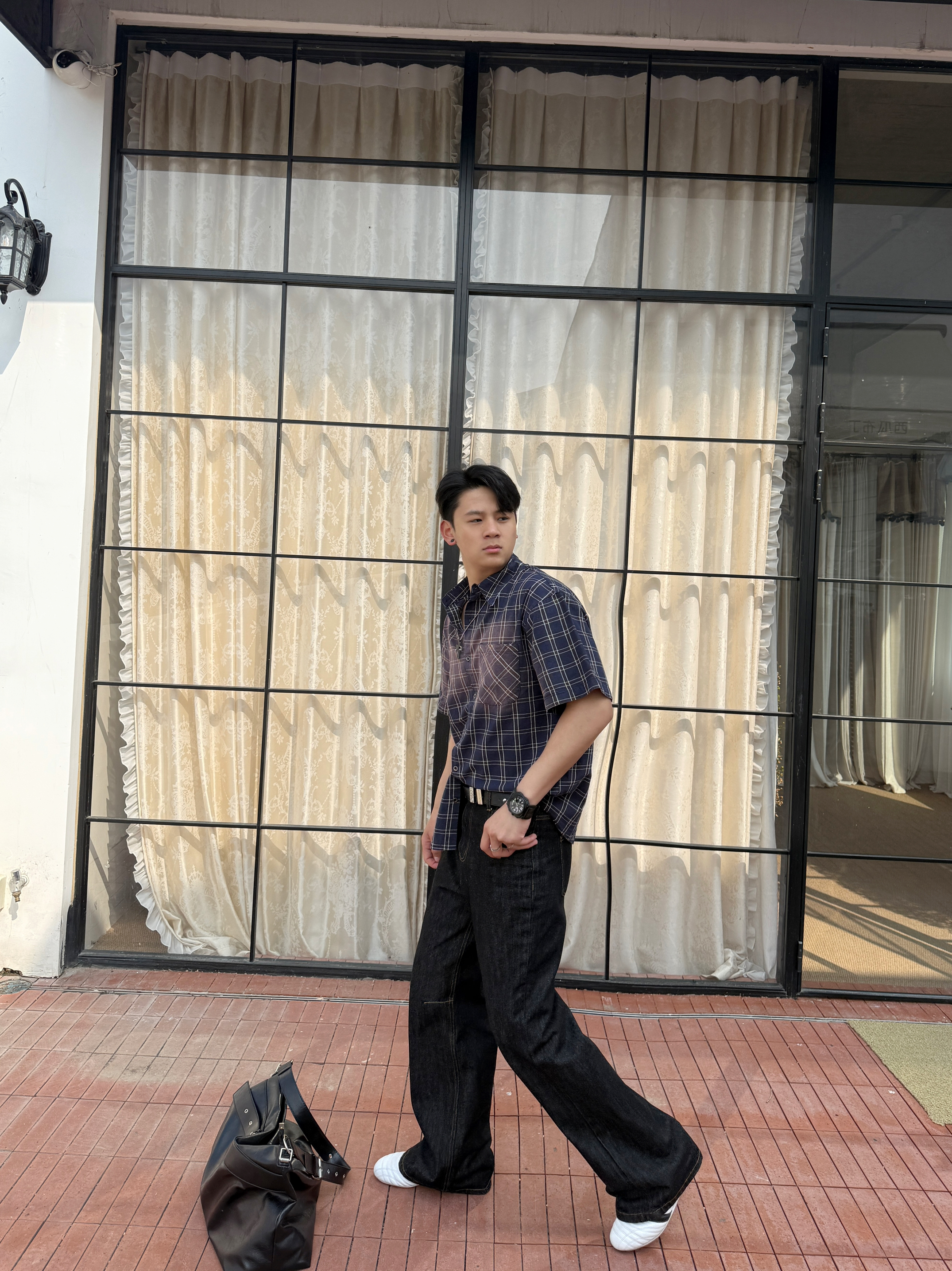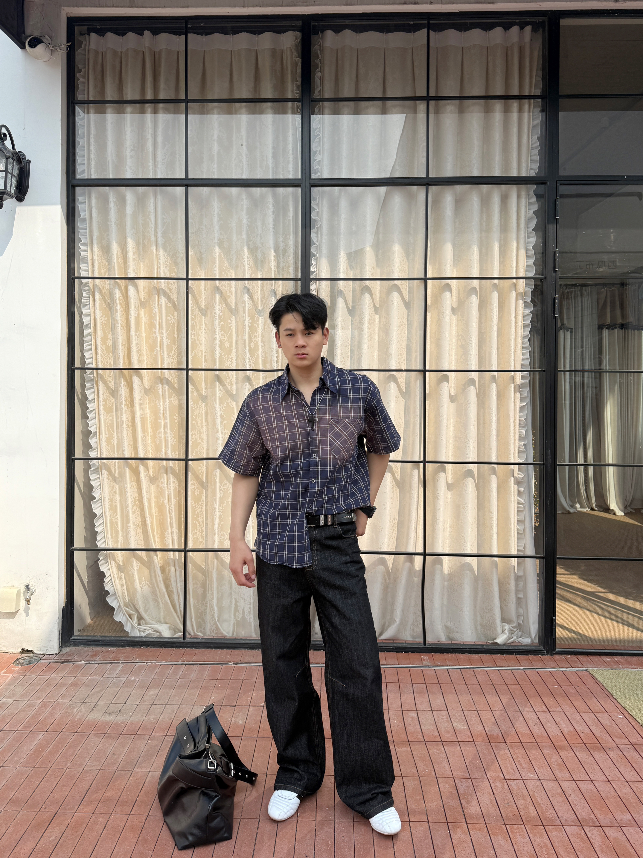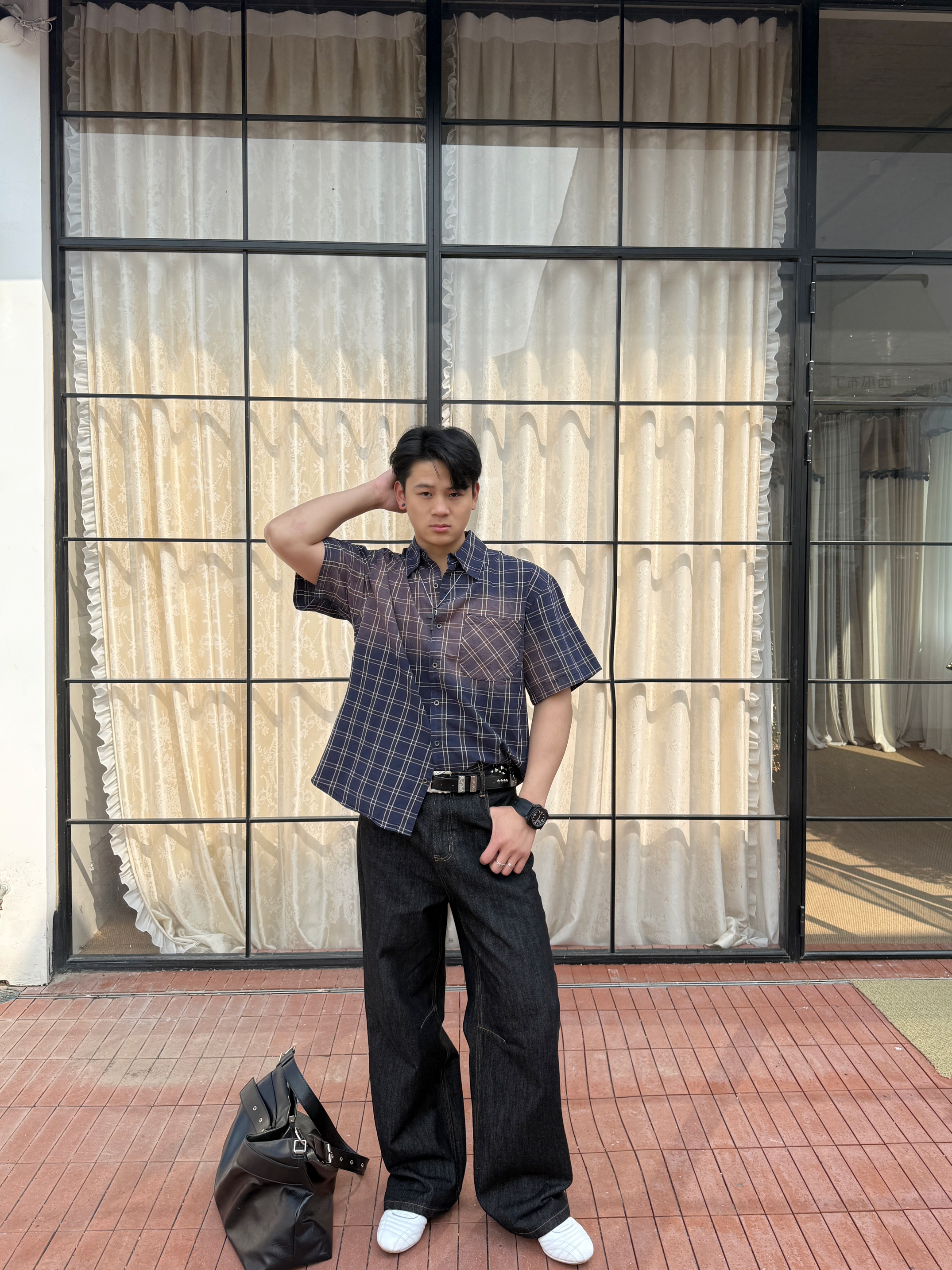衬衫上身果然不一样 上衣我选择一件水洗做久复古短袖衬衫 翻领格纹宽松设计上身好看有特 裤子我选择一件直筒牛仔裤 直筒的设计加上原牛的质感上身显高藏肉 白色板鞋点缀整体穿搭 你感觉这样一身下来怎么样?