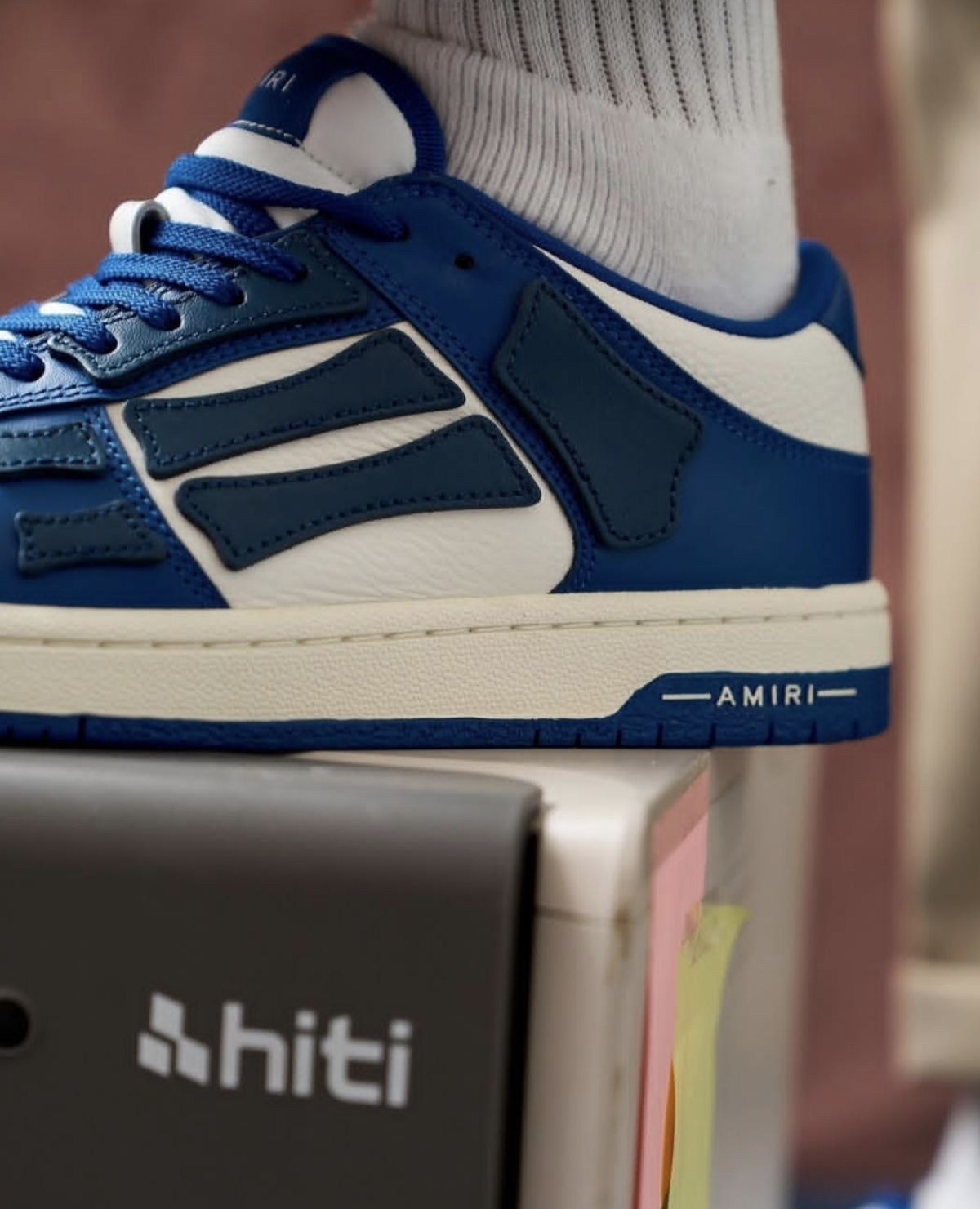 AMIRI Skel Top Low这双蓝白配色,简直是美式复古风的标准答案: - 标志性骨头设计:鞋身的立体骨纹拼接是灵魂,在蓝白撞色的衬托下更具辨识度,街头感直接拉满。 - 质感细节拉满:头层牛皮的细腻纹理+做旧米白中底,自带90年代复古滤镜,摸上去的扎实感完全对得起它的定位。 - 配色干净高级:深浅蓝+米白的组合清爽又显质感,搭卡其裤、牛仔裤都是教科书级别的cleanfit,日常...