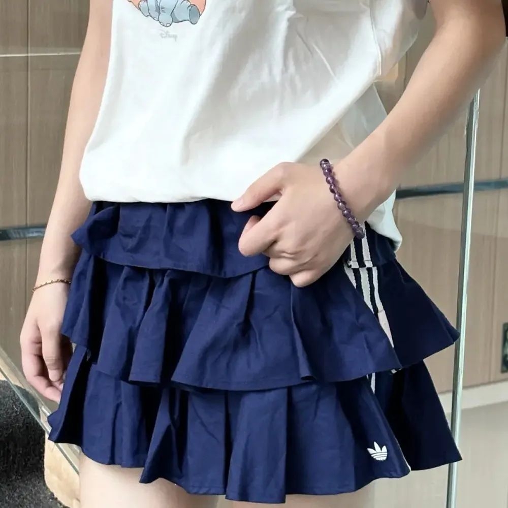 💙adidas三叶草×迪士尼玛丽猫联名蛋糕裙,藏蓝色三层蓬蓬设计,轻盈梭织面料,夏天穿超舒适!侧边三条纹+三叶草Logo,运动感满满✨内置安全裤,防走光超贴心,日常出街、运动、休闲都OK。搭配玛丽猫T恤或白色背心,甜酷少女风轻松拿捏,青春活力感爆棚!