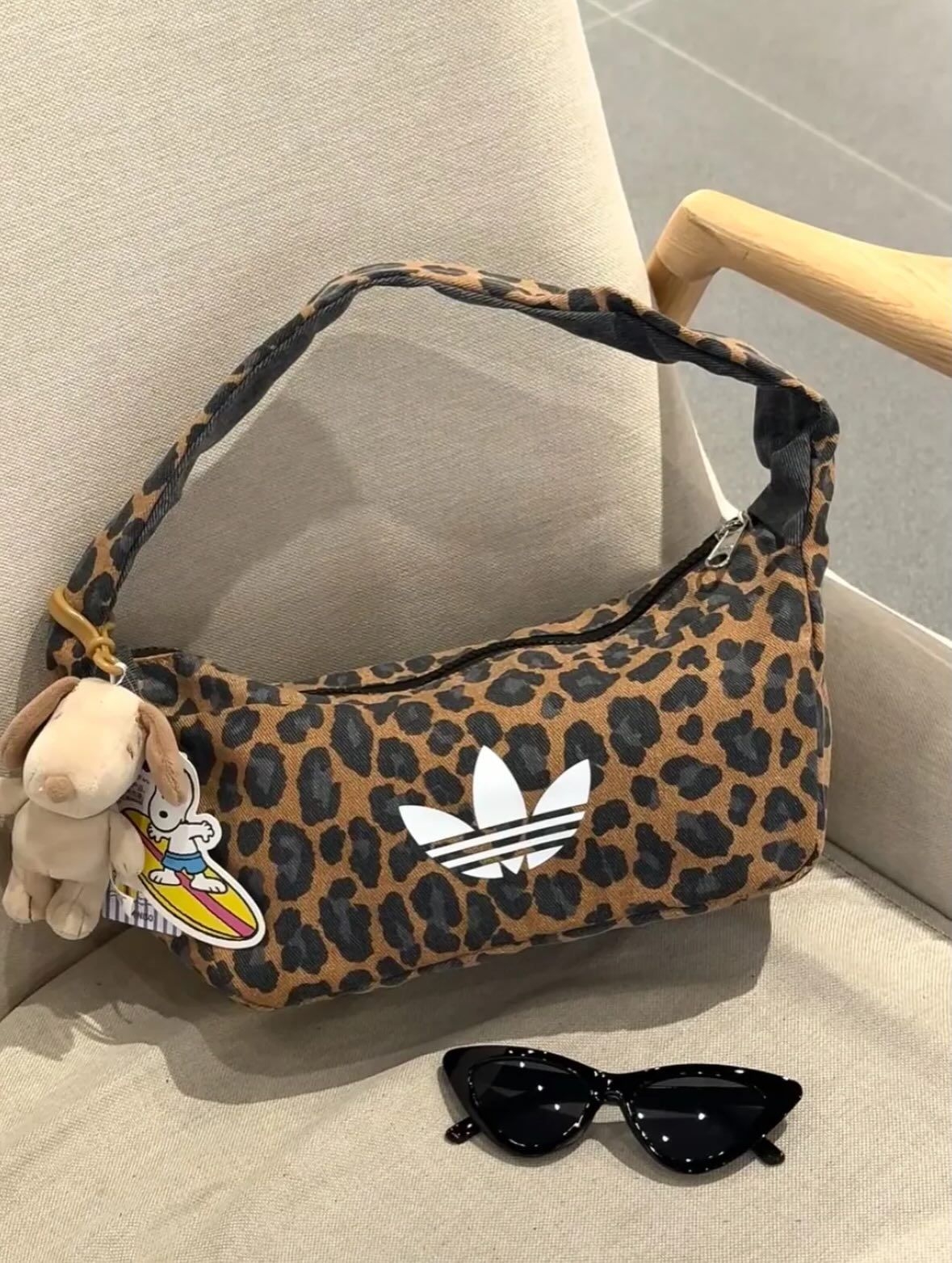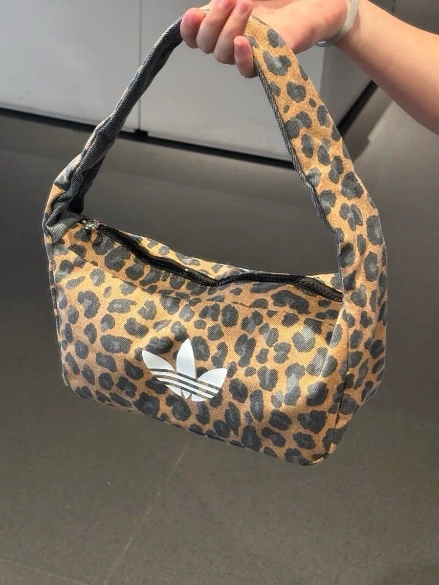 👜阿迪达斯三叶草豹纹腋下包,型号JX3198,帆布材质+经典豹纹印花,正面三叶草Logo超有辨识度✨。小号设计,容量适中,雨伞、充电宝都能装,通勤出街都很OK!肩带宽度刚好,手提or腋下背都时髦,甜酷or复古风随心搭配,是潮流穿搭的点睛之选🔥。