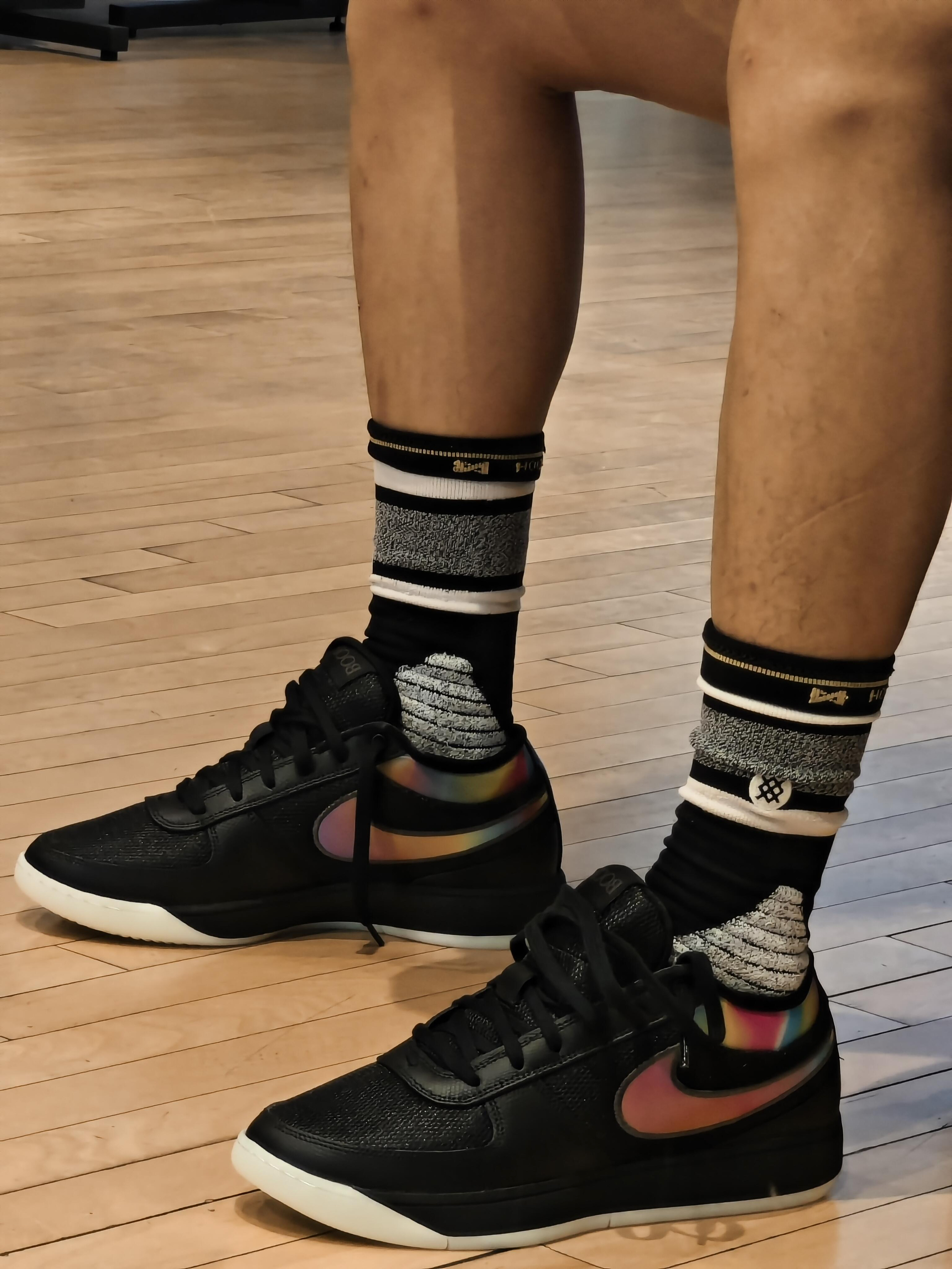 这双Nike Book 1布克1代真的杀疯了!🖤 纯黑鞋身低调又有质感, 标志性Swoosh和鞋侧拼接处自带幻彩渐变光泽, 光线流转时像把彩虹焊在鞋上,高级感直接拉满。 透气网面+扎实中底, 实战缓震稳弹,日常出街也舒服不累脚, 淡绿色夜光外底在暗处还会发光, 夜跑、夜训都自带高光buff✨。 搭运动袜、工装裤、牛仔裤都超适配, 球场是德文布克同款战靴, 街头是低调又吸睛的潮搭单品, 颜值与实...