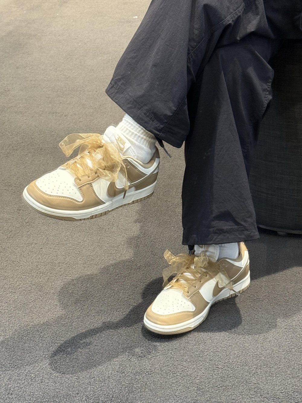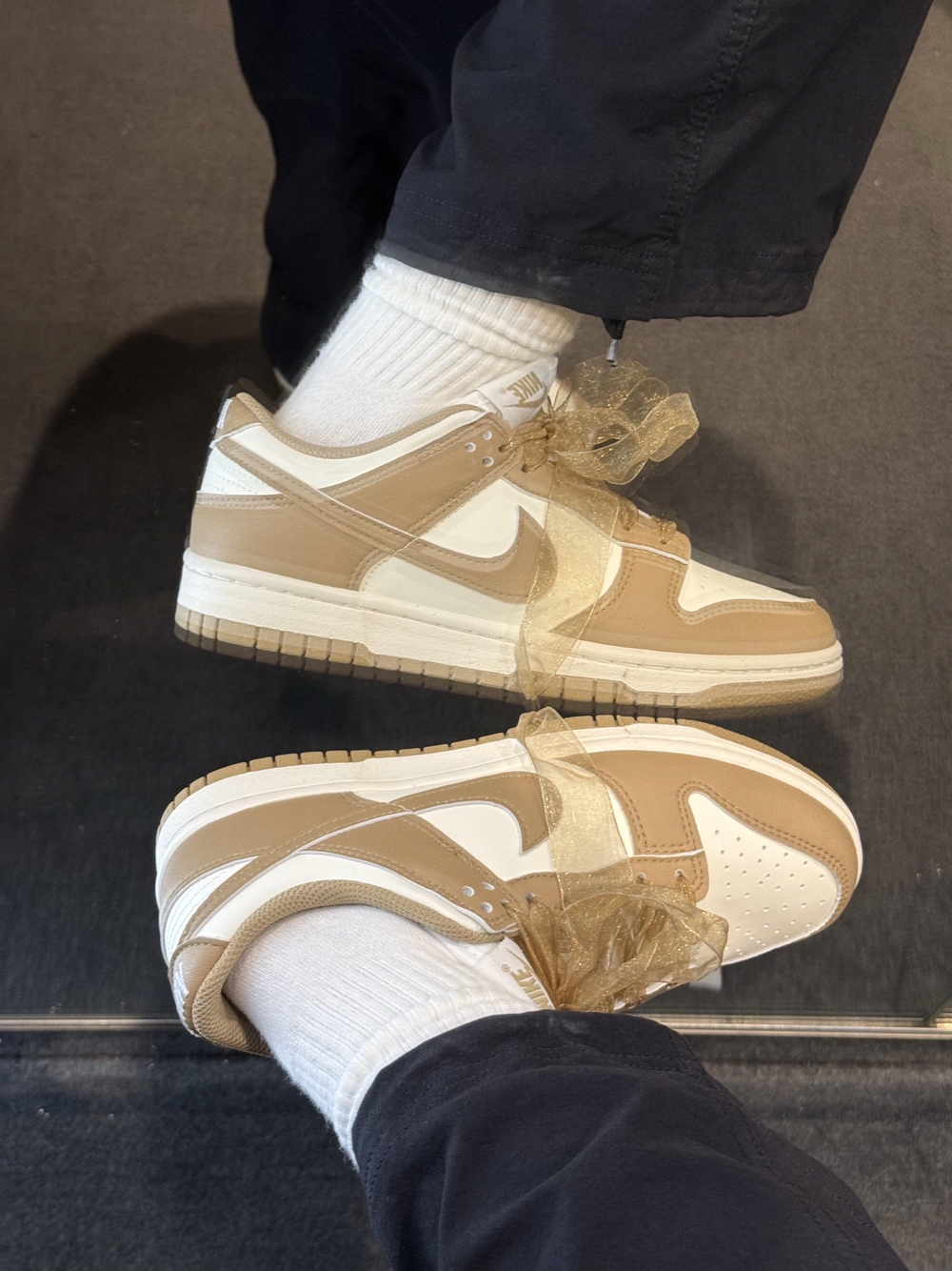 奶茶色Dunk也太温柔了叭✨ 真的没人能拒绝这么奶fufu的一双Dunk啊😭 软乎乎的浅棕搭配干净米白, 低饱和配色高级又耐看,上脚温柔感直接拉满, 黄皮、冷皮都能轻松驾驭,越看越有气质。 不管是配休闲裤、运动裤,还是牛仔裙、半身裙, 都巨和谐、巨显质感,完全不挑风格不挑人。 日常上学、通勤、约会随便一套就很好看, 温柔又百搭的经典款,闭眼入都不会亏!