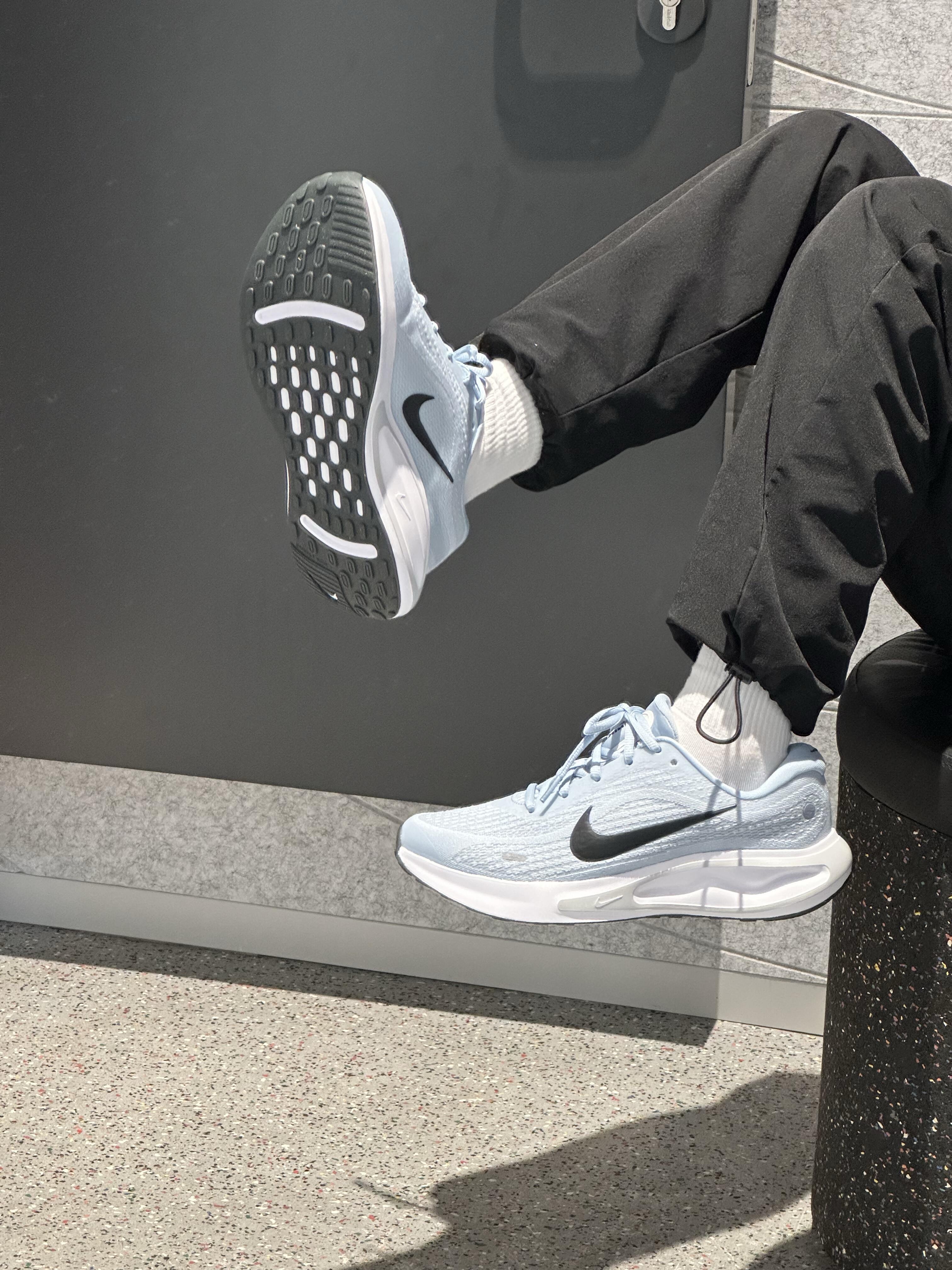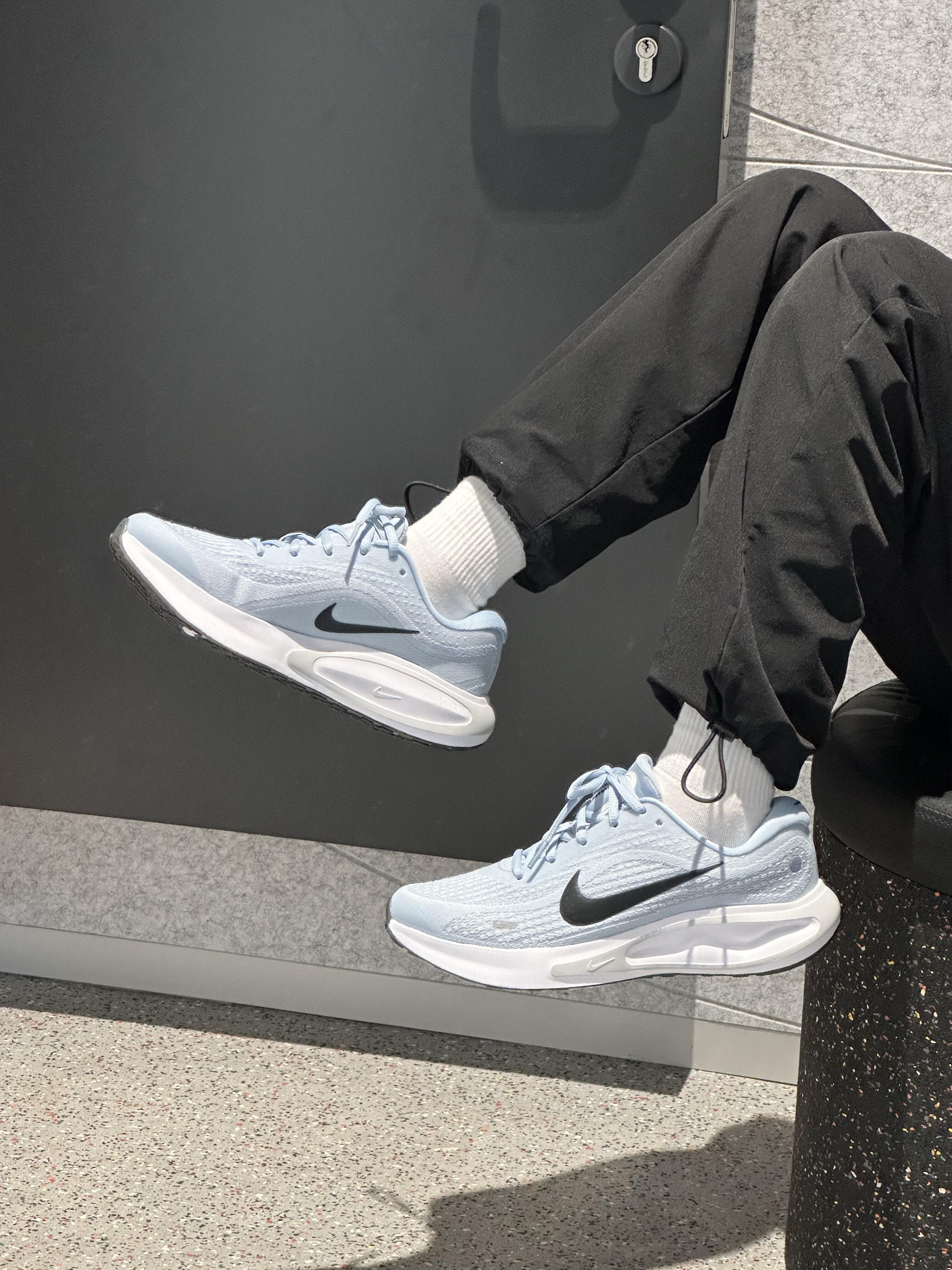 海盐蓝Journey🩵 真的让人眼前一亮再一亮! Nike这双完全是藏不住的宝藏球鞋, 清清爽爽的海盐蓝,干净又治愈, 和夏天的穿搭适配度直接拉满🌊 鞋面透气不闷脚,走路、慢跑都无压力, 鞋底软弹又舒服,久穿也不累脚。 颜值与实力双在线, 不管是专业跑步、健身运动, 还是日常出街、通勤上学都能完美驾驭。 清爽耐看又百搭,这双真的必须拿下💨