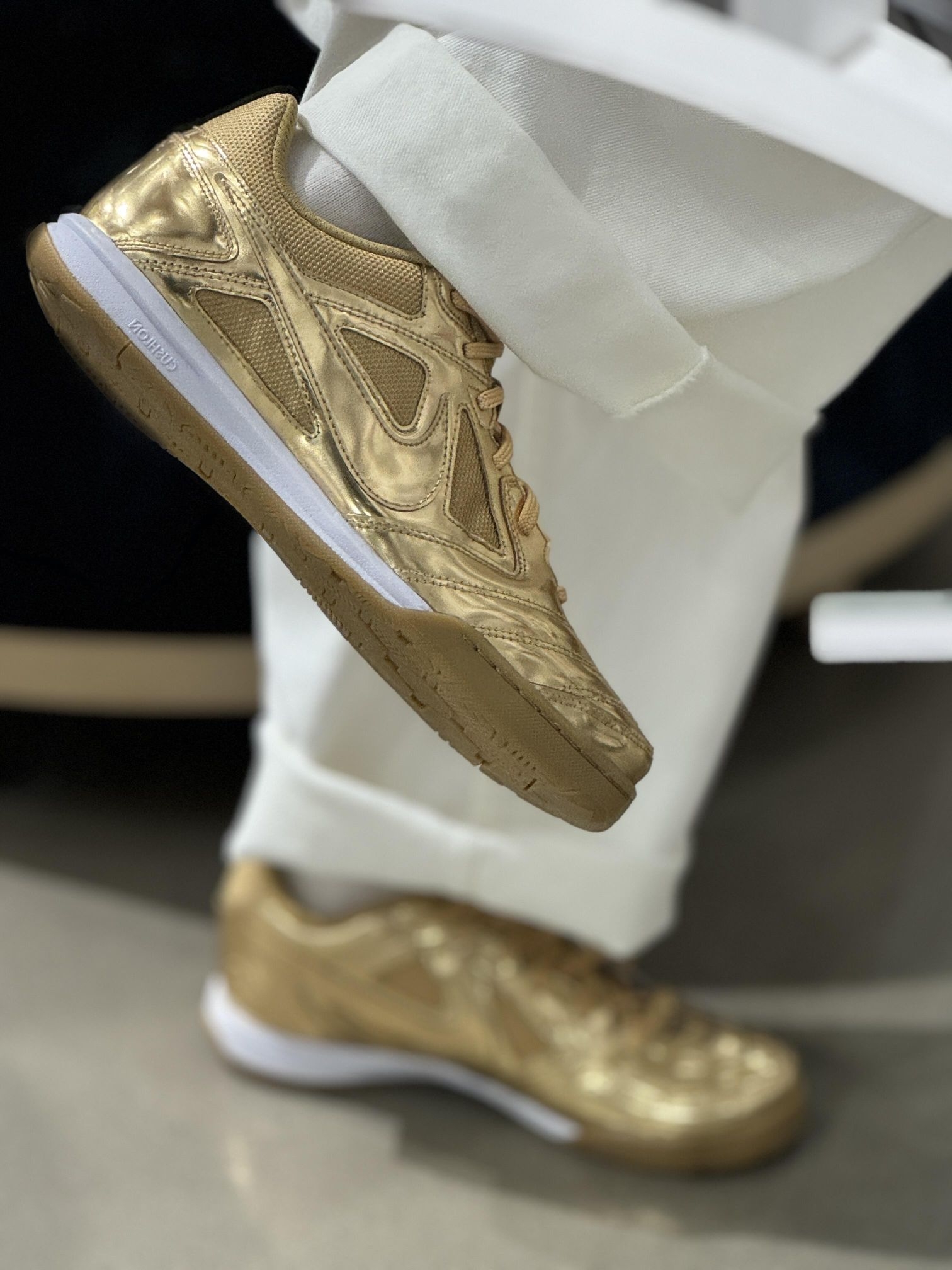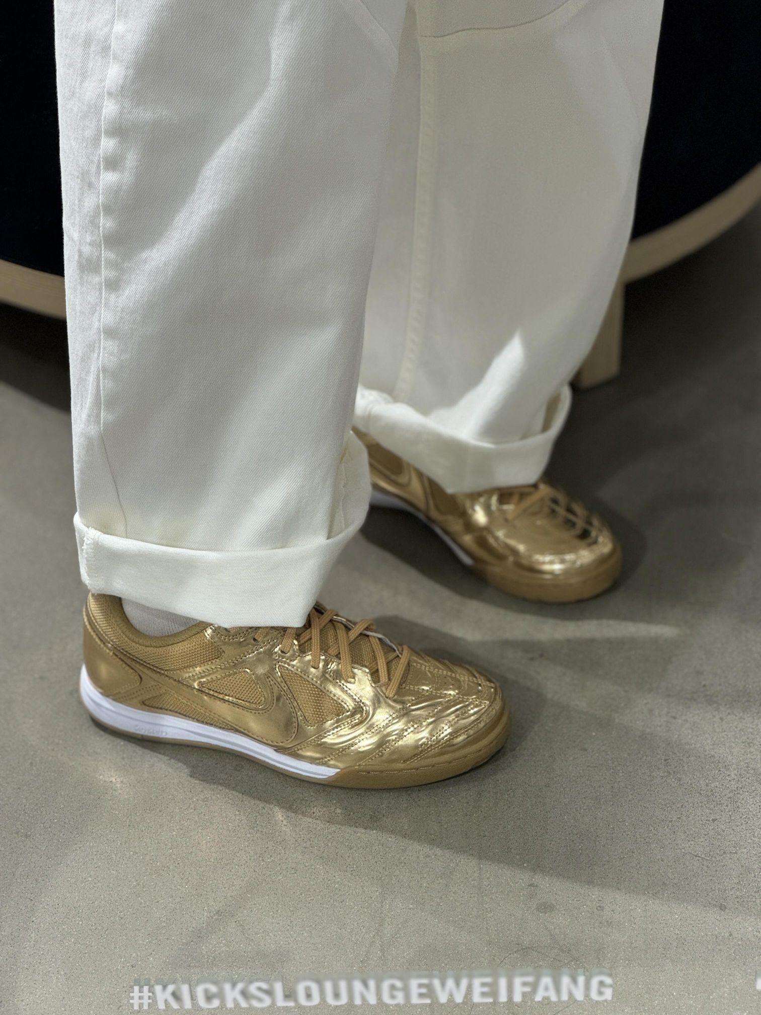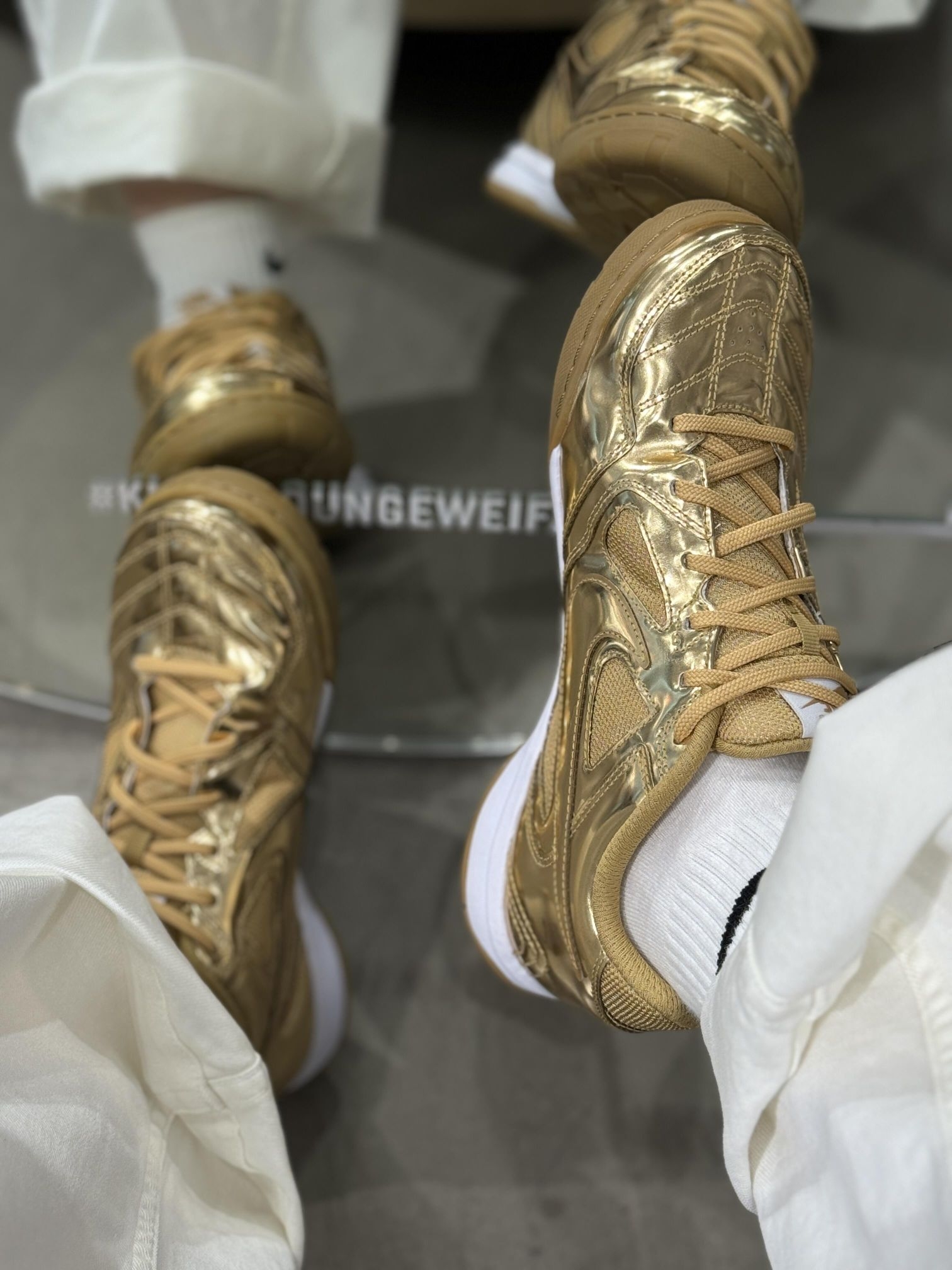 谁懂!金色球鞋真的太显白了! 白裤白袜清爽百搭,一脚踩上金色战靴,氛围感直接拉满。 自带闪光灯效果,走在路上就是焦点,回头率💯! #OOTD #金色球鞋 #显白穿搭 #春日OOTD #宝藏鞋子