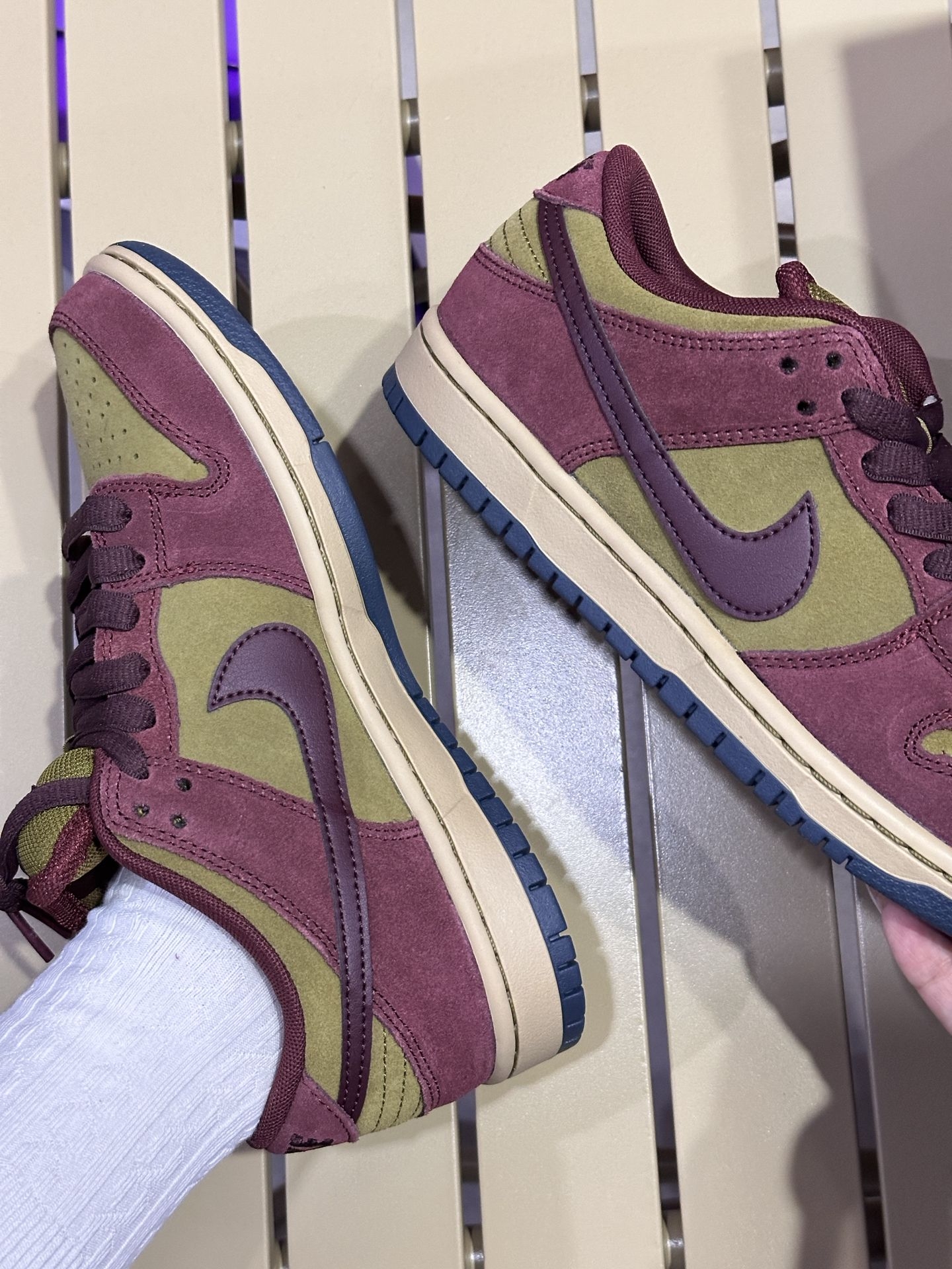 Nike SB Dunk “蝎子莱莱” 复古撞色滑板鞋来袭!|||鞋面采用高级麂皮拼接透气网布,酒红与卡其的撞色,摸得到的细腻质感,穿得出的复古腔调;搭配从工装裤到阔腿裤复古撞色轻松适配各种风格。上脚穿了一下舒适度超高,日常出街回头率简直拉满.#秋日鞋覆焕新指南 #秋日穿搭灵感特展 #把浪漫穿在脚下
