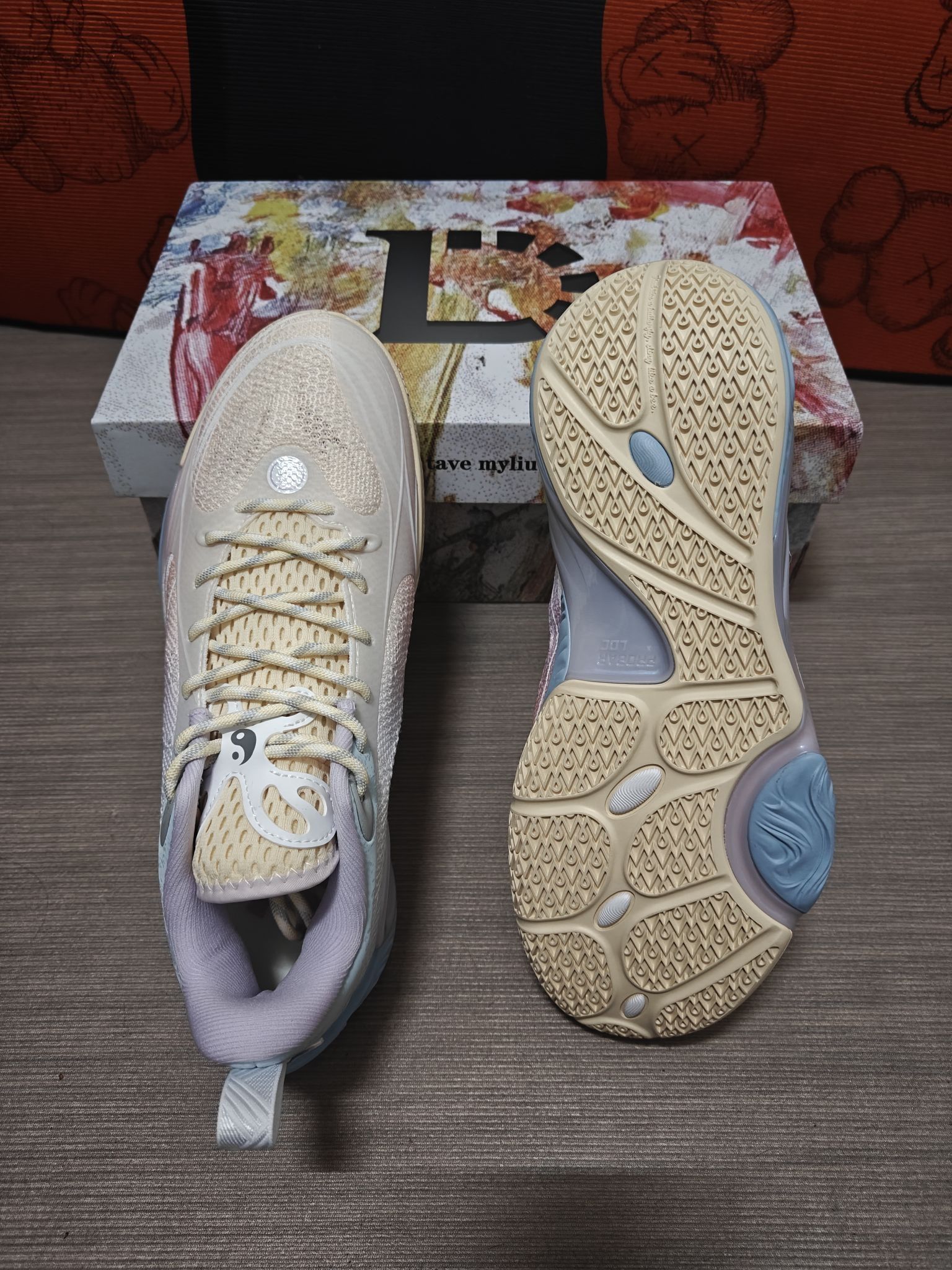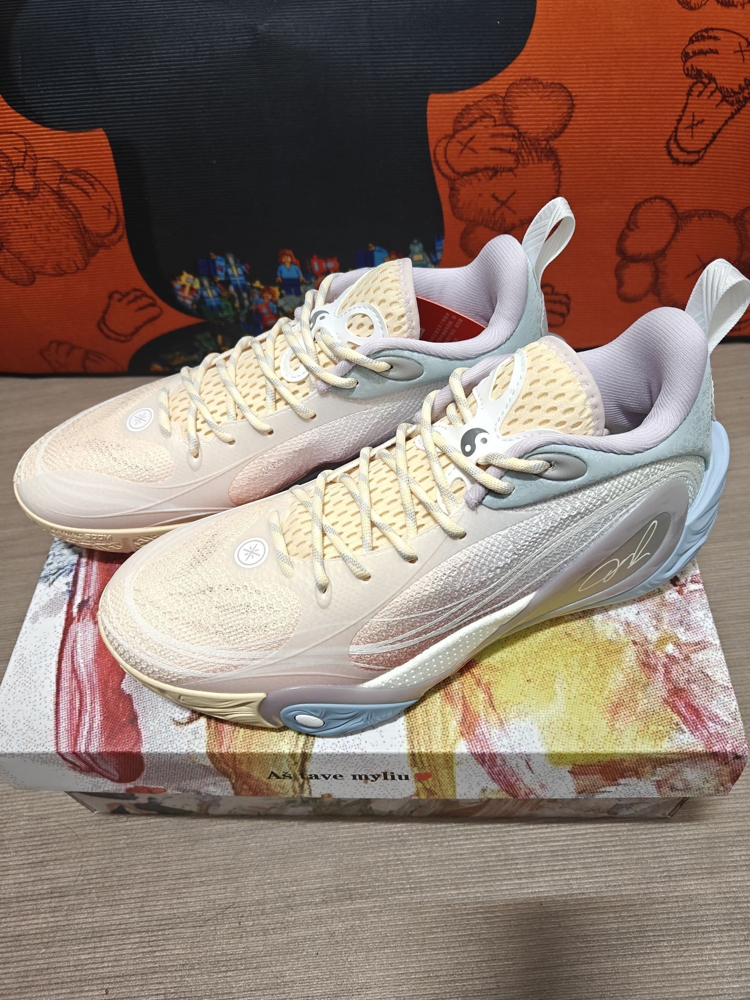 拉塞尔一代白粉配色,上脚颜值很高,低帮设计很利落。全掌䨻科技脚感软弹适中,起跳落地缓冲舒服,突破蹬地反馈干脆,不拖沓不卸力。蝴蝶型TPU支撑很稳,变向、急停时足弓不晃,防侧翻可靠,包裹紧致不挤脚,鞋带一系牢牢锁定。鞋面透气不错,长时间打球不闷脚,外底抓地强劲,塑胶地、水泥地都不打滑,耐磨表现也在线。整体轻便灵活,适合后卫打法,缓震、支撑、回弹、抓地平衡得很好,实战与颜值双在线,日常打球穿非常舒服,...