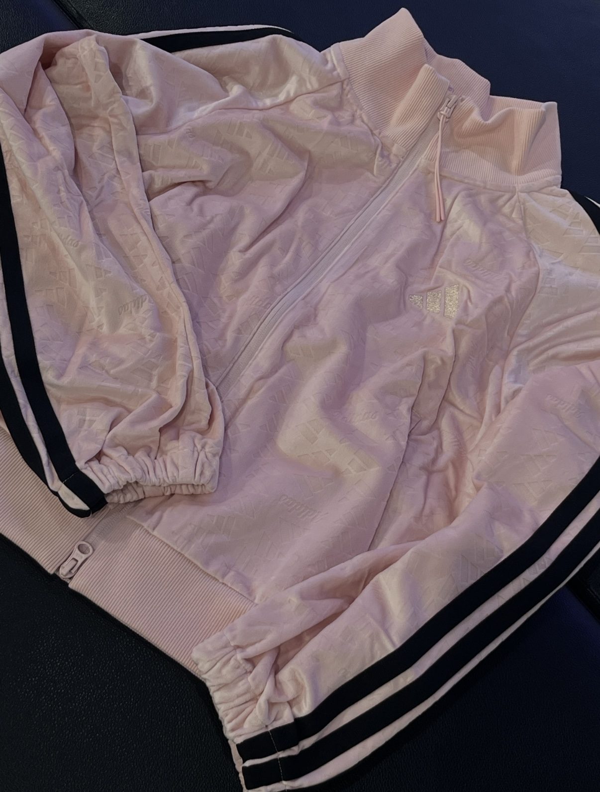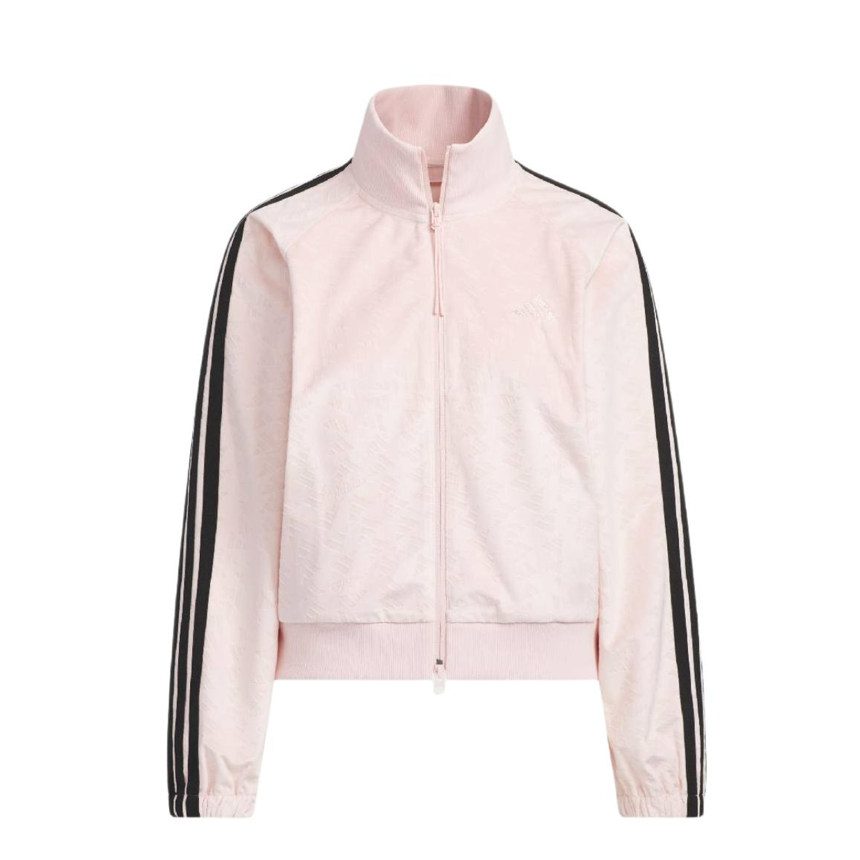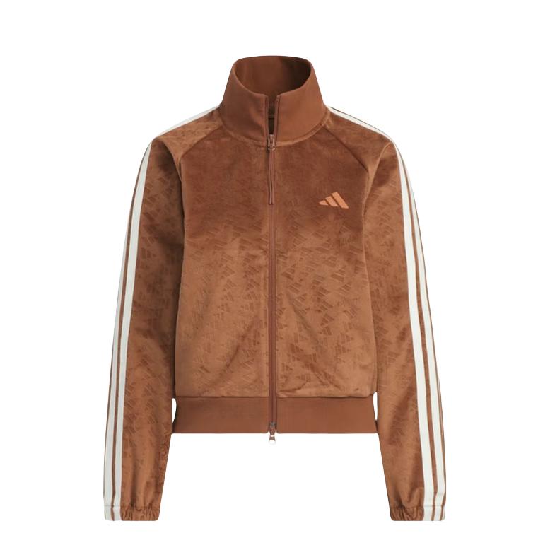 阿迪女子满印logo条纹立领 防风运动夹克,健身外套 短丝绒,点缀我的秋季穿搭,健身穿什么?外套adidas