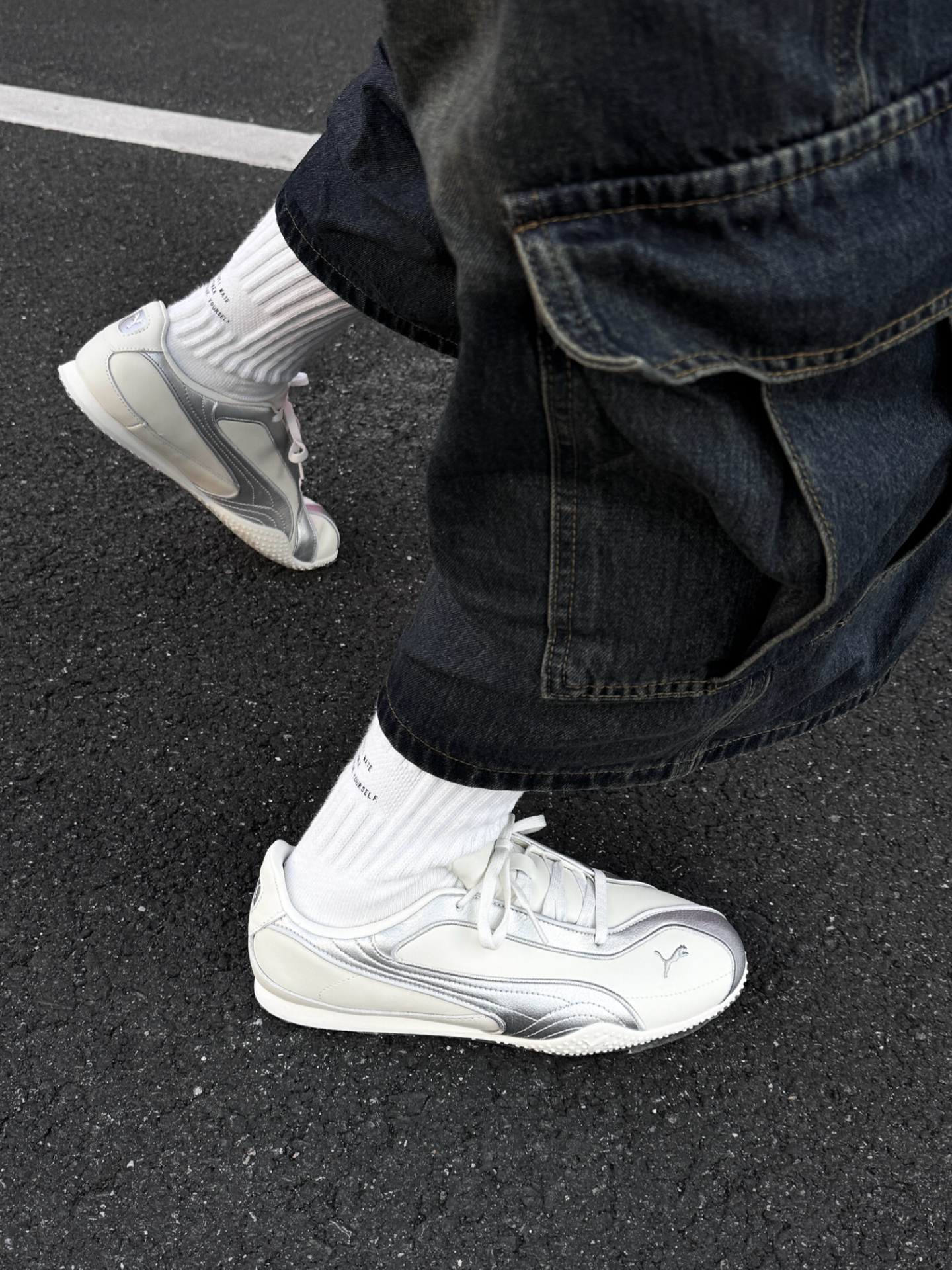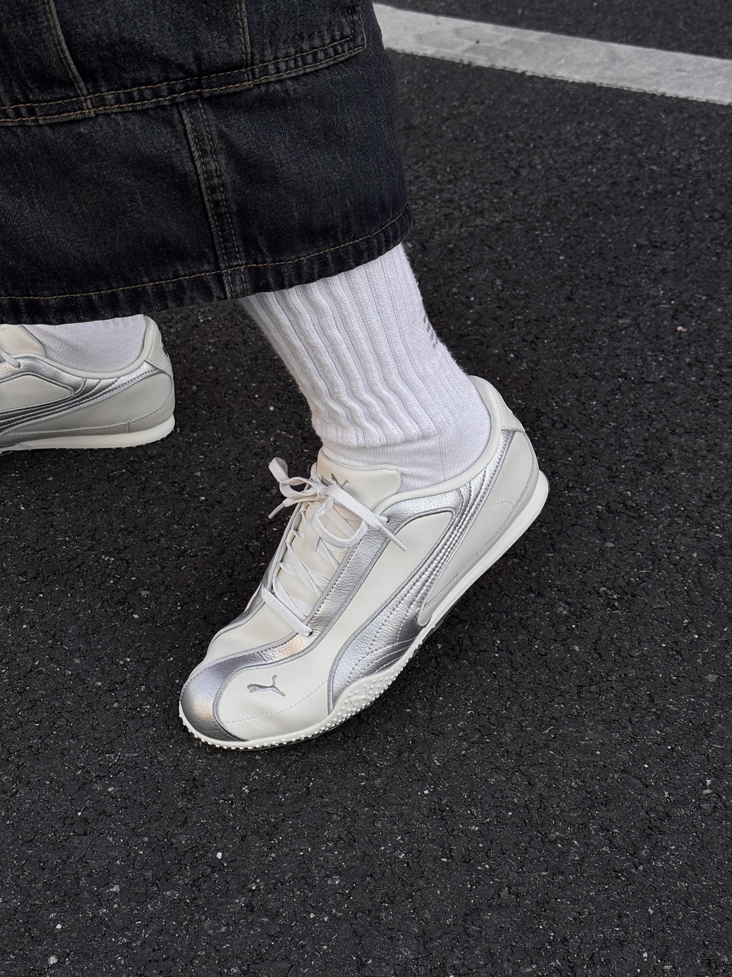 ~ 给大家分享两双 #PUMA 的薄底赛车鞋👟 我上🦶🏻的这双是白银配色的 其实我觉得女生穿会更好看 尤其是搭配芭蕾袜子和短裙 Ins博主的感觉一下就上来了‼️ 银的这双可以的让男朋友穿 情侣鞋也是安排到位了 阔腿裤拖地裤或者是7分裤都可以搭配🤩 尺码小建议: 徐哥平常穿的40这双40的刚好合适💡 #赛车鞋到底谁在穿 #买双新鞋哄自己上学 #就是个板鞋脑袋 #新鞋零时差2026 #性价比...