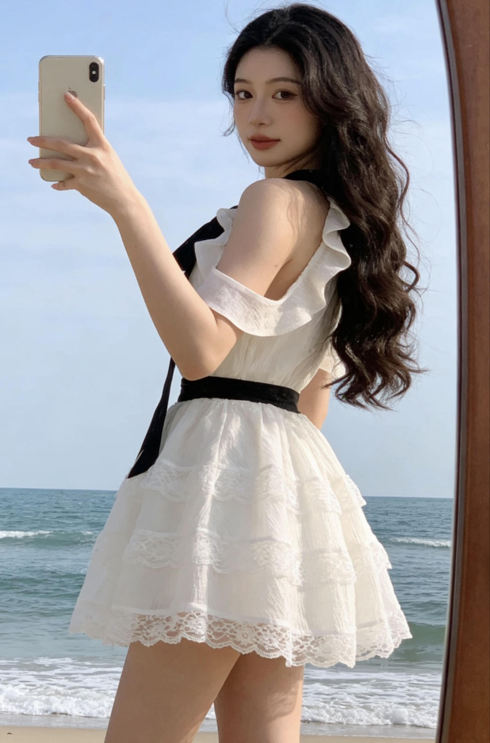 春日好看的公主裙 特别百搭 很显肤色 气质少女裙 拍照很出片~ 韩系氛围感十足 在海边更出片
