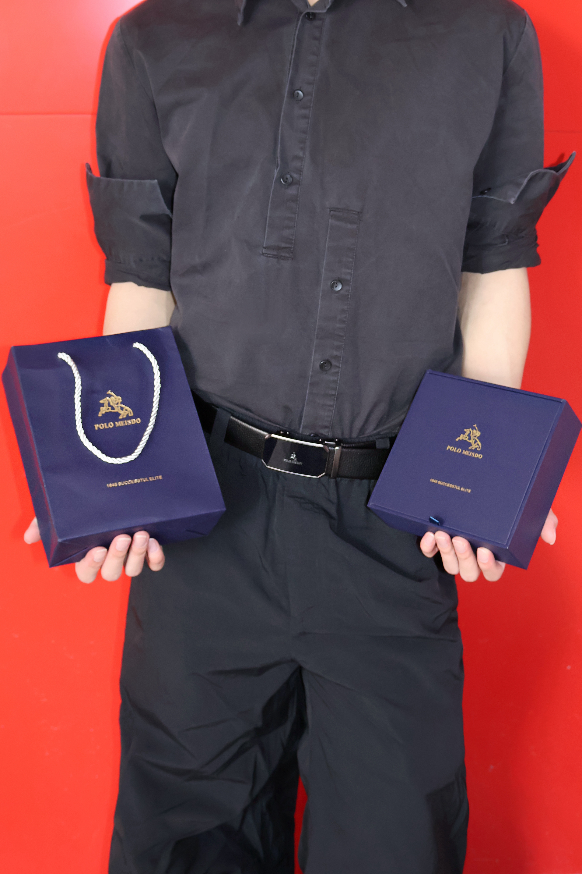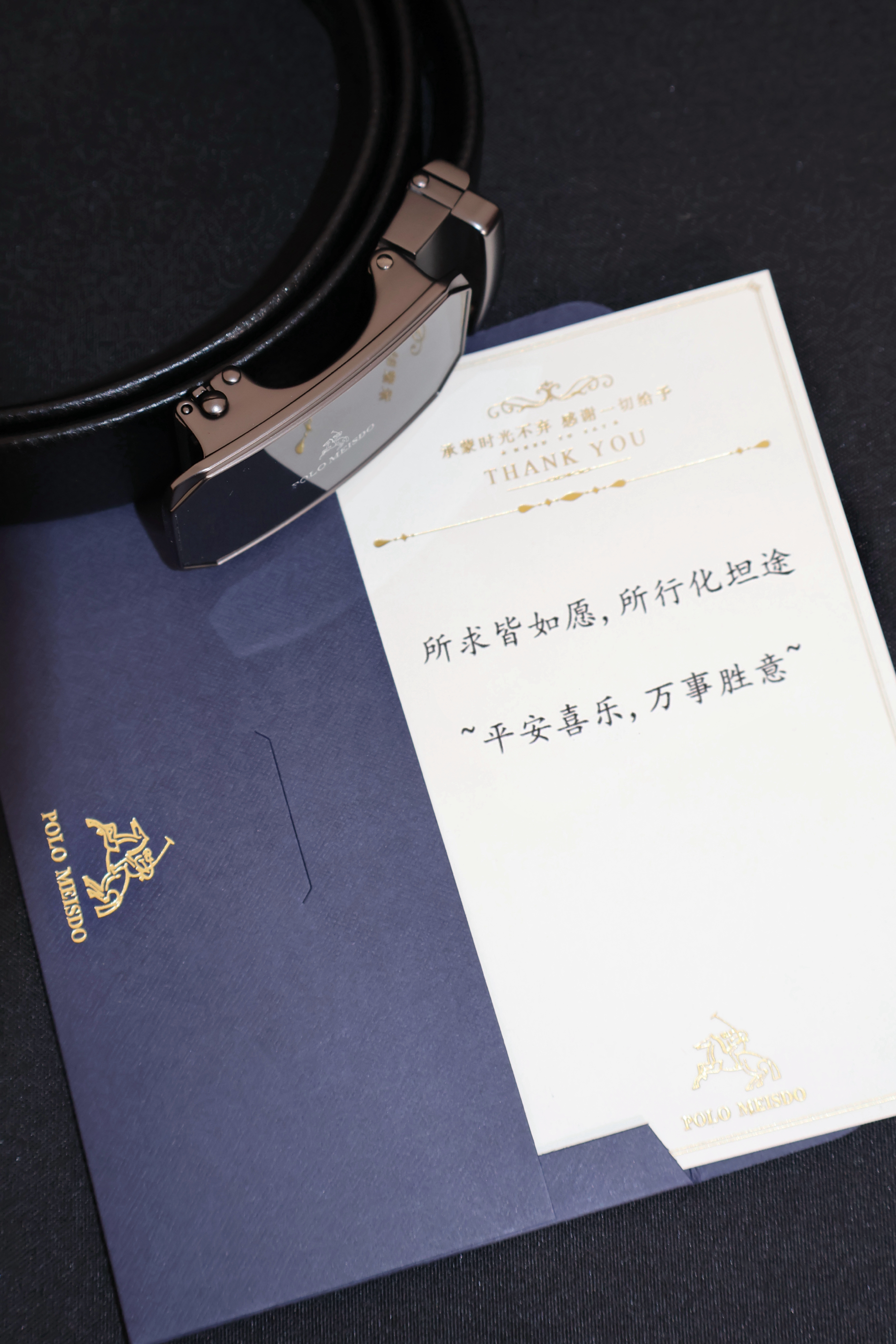 给家里那位挑生日礼物真的做了不少功课,最后选了POLOMEISDO这条皮带,收到后真的很满意~ 礼盒包装很精致,还能代写贺卡,仪式感直接拉满💌 带身是牛皮的,摸起来质感细腻又耐用,合金扣头简约大气,自动扣设计也很方便,日常通勤、正式场合都能搭。 不管是配西裤还是休闲裤都很合适,低调又显品味,实用性和颜值都在线,送男生真的很合适~