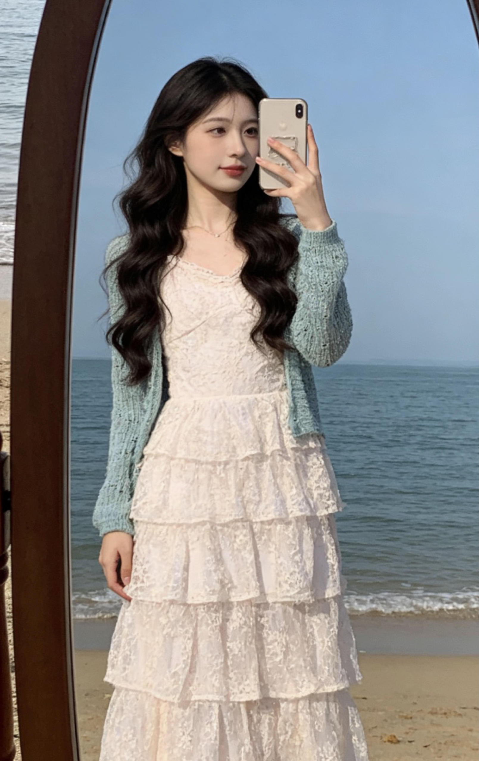 这个针织小套装也太好看啦 很适合春天 很显肤色 拍照也很出片 针织外套也很百搭 小裙裙可以单独穿