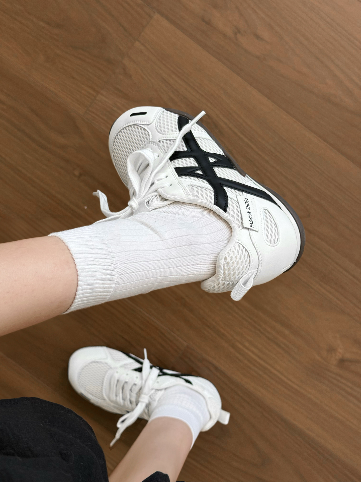 看似薄底实则是隐形增高3cm!!悄悄拉长腿形~ 🐼黑白配色老百搭了 而且鞋面有很大一部分都是网面的嘎嘎透气 蛮适合夏天穿嘟 软底软面弯折轻轻松松 跑跳都可以驾驭 就像我这样!简单搭配黑色短裙就吼吼康耶~ #早八无脑穿搭 #5G速通春日穿搭 #此人鞋商极高 #单鞋拿捏春日氛围感 #春日鞋柜c位