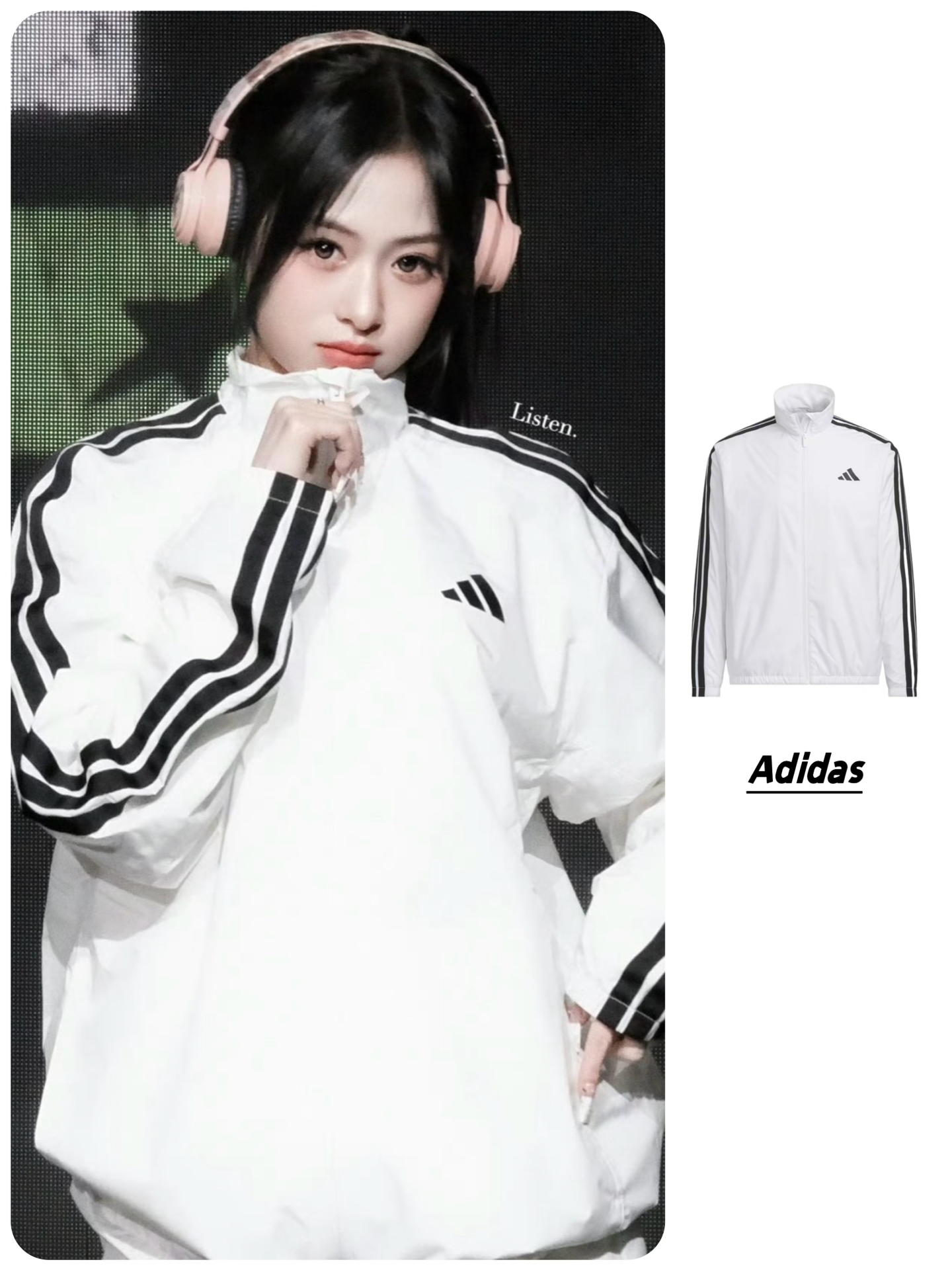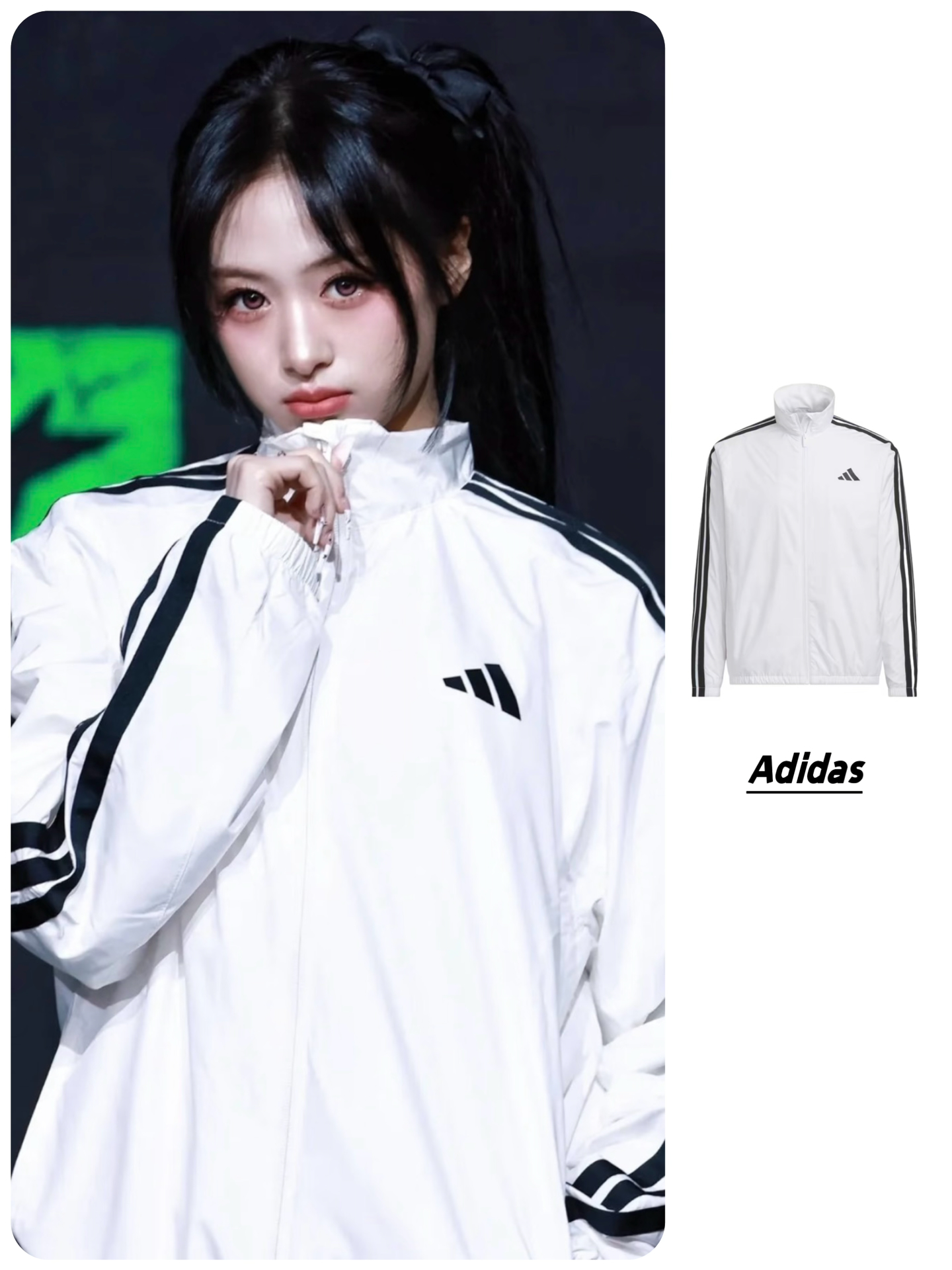 本篇笔记关联了【Ahyeon同款】Adidas/阿迪达斯 Sportswear防风拉链条纹高领长袖夹克 KA1291 白等商品,为用户提供真实的使用体验和购买参考。