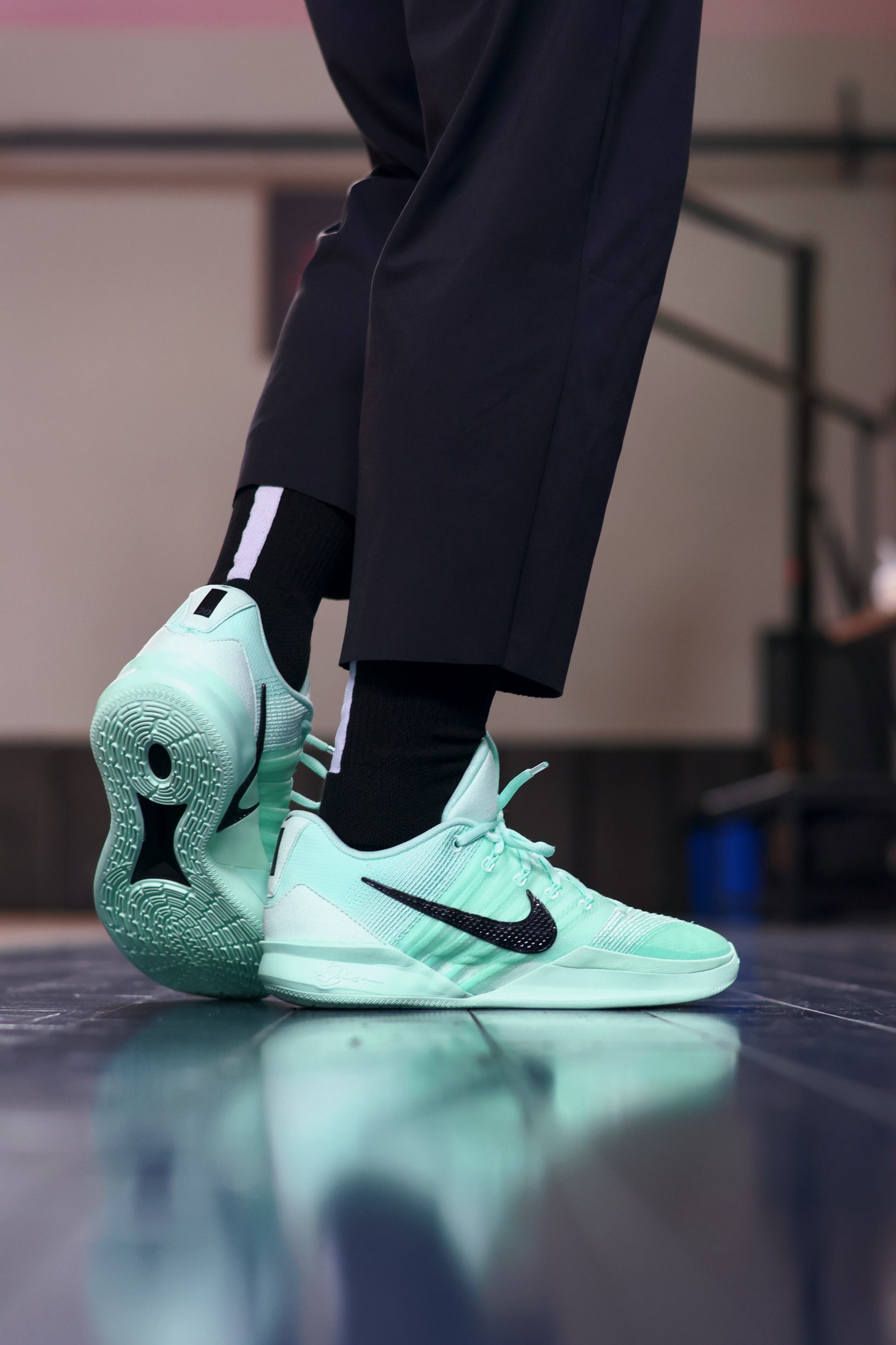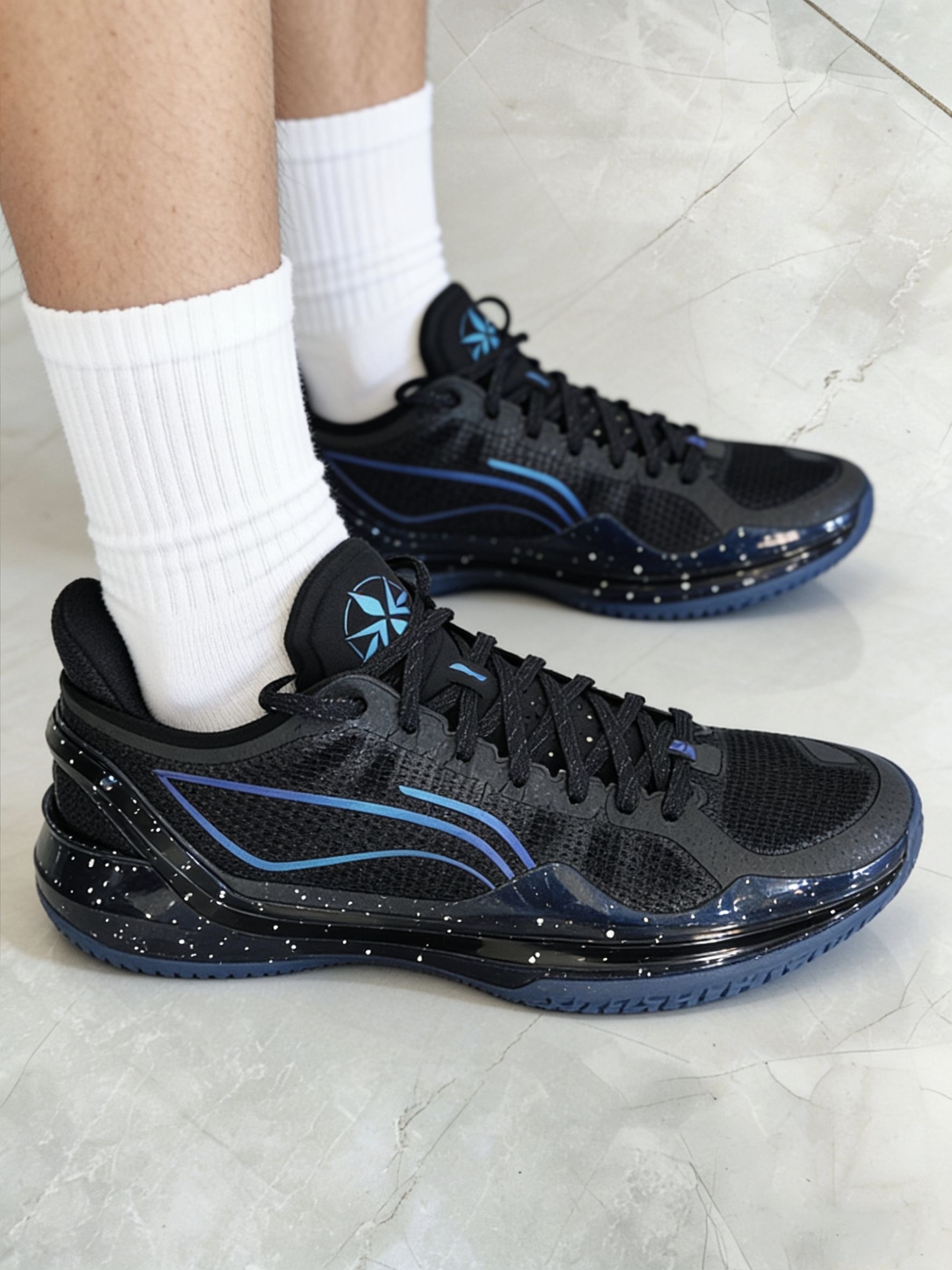通体哑光黑+金属金的配色,高级感直接拉满,不挑肤色不挑穿搭。未来感流线型鞋身+前掌拉链设计,瞬间区别于传统篮球鞋,自带赛博朋克那味儿;鞋身三条纹以点状银线呈现,低调又有细节,后跟和鞋舌的金色蜘蛛人Logo,完美呼应米切尔「蜘蛛侠」的绰号,每一处都藏着设计巧思。不对称的金色中底支撑块更是点睛之笔,既强化了视觉层次,又能提供侧向支撑,颜值与实用性并存!