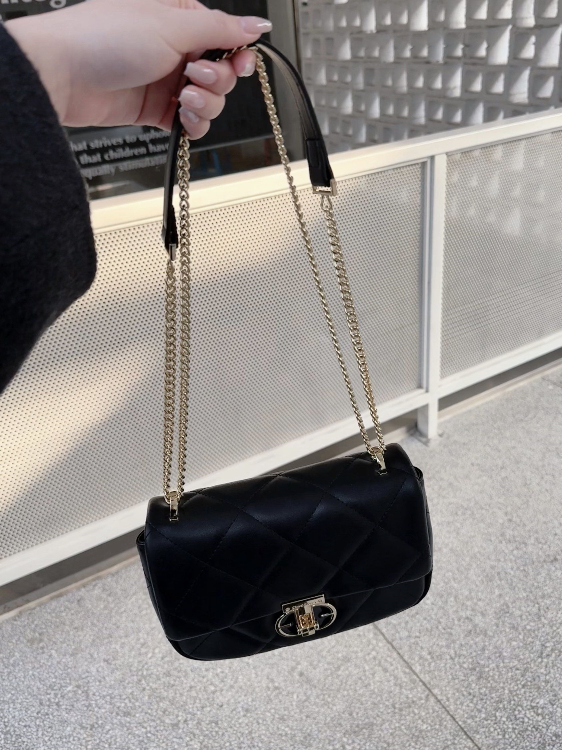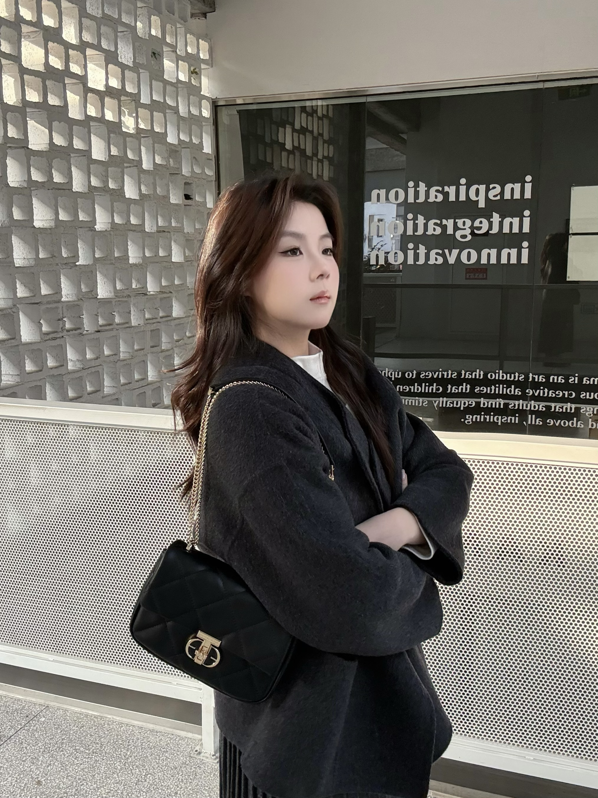 小香风的链条包经典不过时 材质是牛皮的摸上去很有质感 可以单肩背也可以斜挎 我比较喜欢单肩背 很有气质 里面的容量也是足够的 装得下出门一天要带的东西