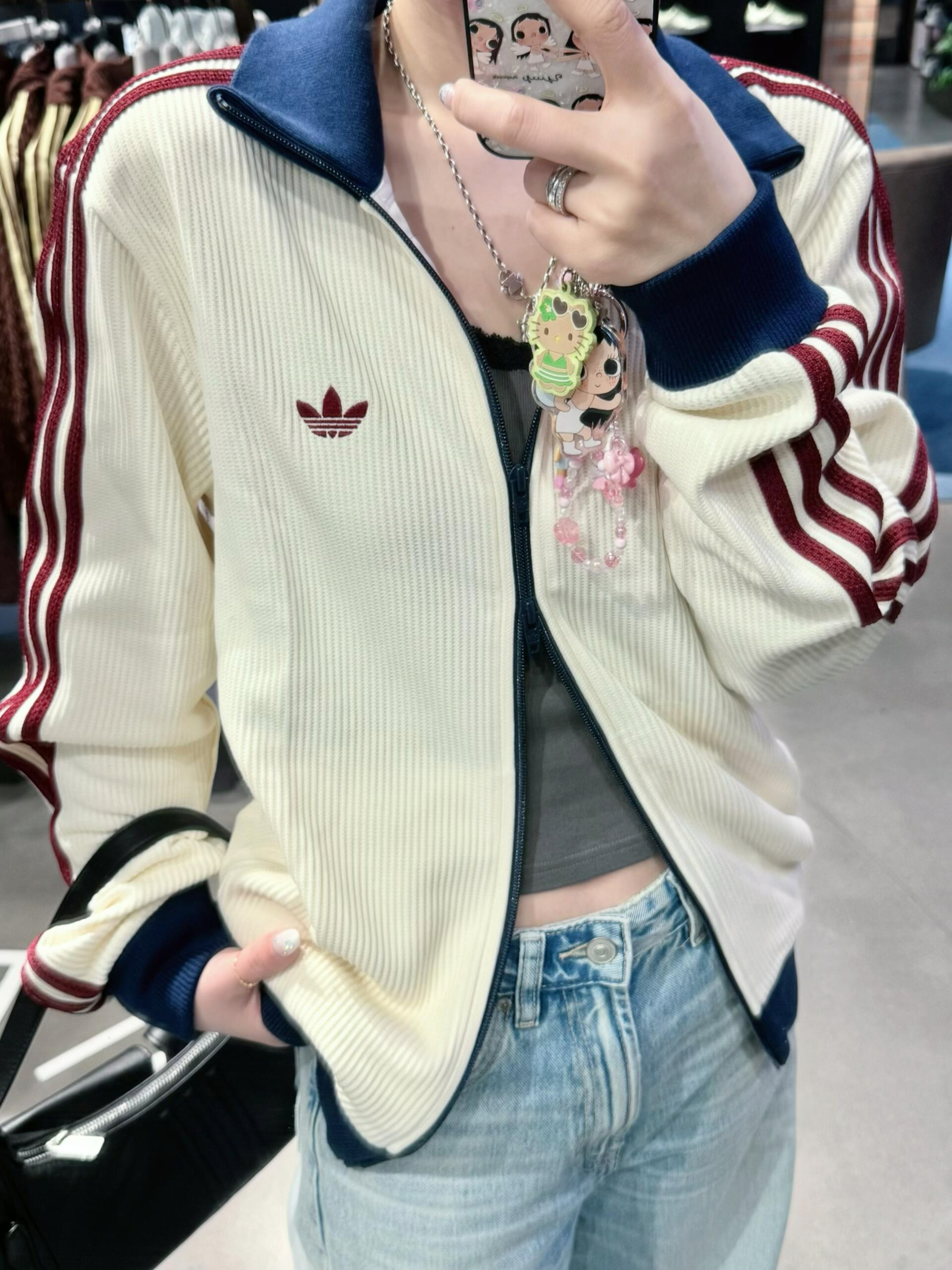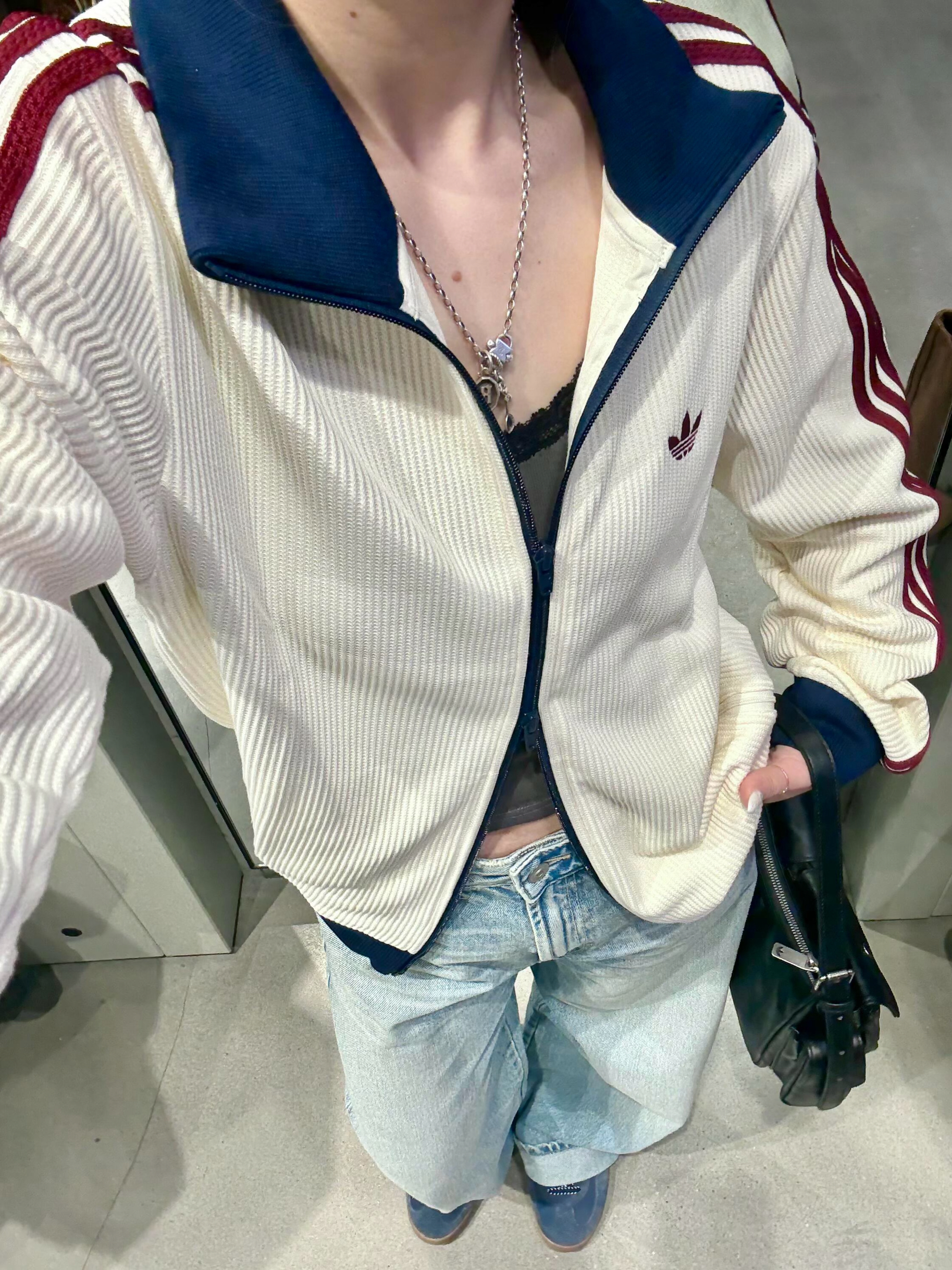 阿迪华夫格外套重磅回归❕不用再蹲小韩代购啦👏🏻 衣柜里永远缺的那件「万能外套」,终于被我找到了! 阿迪这款华夫格🧇外套,自带温柔氛围感buff,上身就很绝。 奶白色干净又显气质,搭配肌理感满满的华夫格面料, 加上藏青翻领撞色小心机,简约却超有细节🤍 不管是Citywalk、日常通勤、上学还是约会, 一件就能轻松hold住全场,温柔又高级,不挑身材不挑人。 实穿度拉满、颜值拉满、氛围感直接焊在...