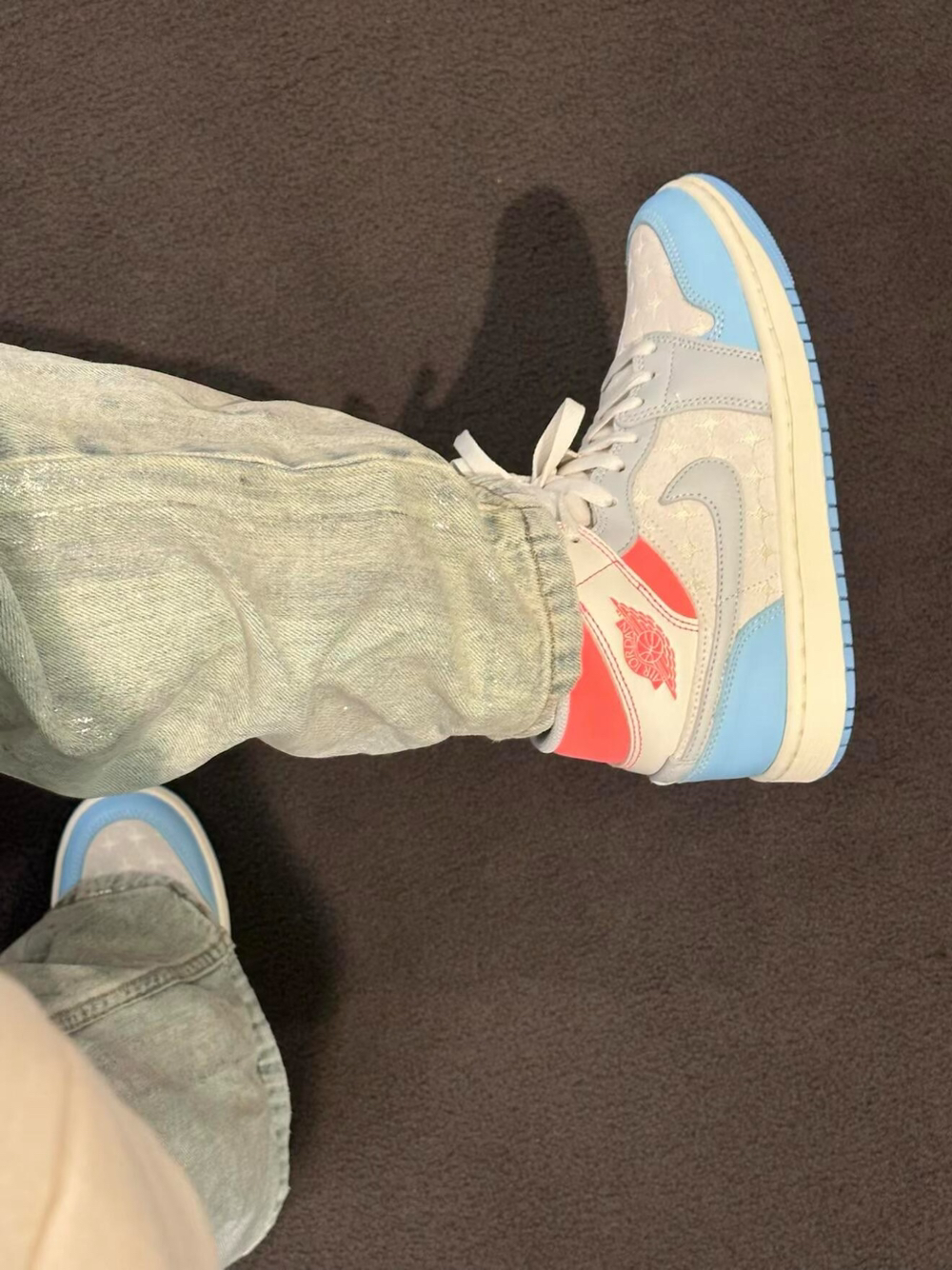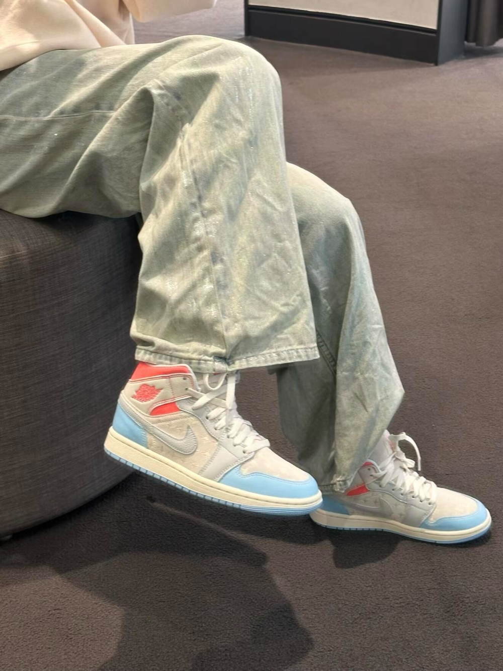 这双满天星✨AJ1也太好看了叭!🥹 海盐蓝搭配珊瑚橙撞色, 清清爽爽又元气满满, 上脚瞬间温柔又吸睛。 浅灰麂皮与冰蓝皮革巧妙拼接, 质感高级又有层次, 鞋身暗藏满满暗纹星星设计💫 低调精致,越看越有味道。 每一处细节都做得超用心, 百搭又耐看,日常出街、约会通勤都适配, 颜值与质感双双拉满,真的很难不爱🤩