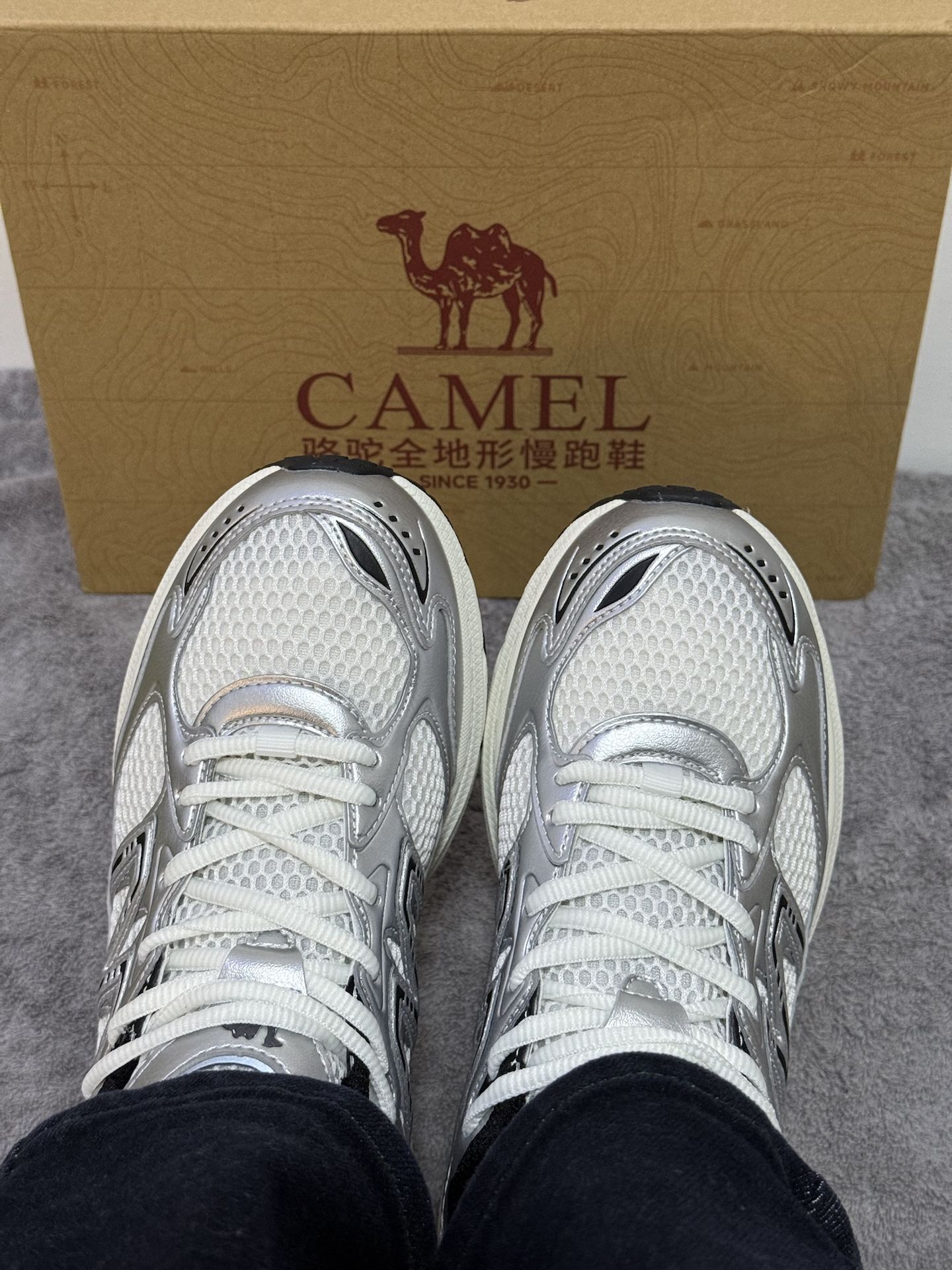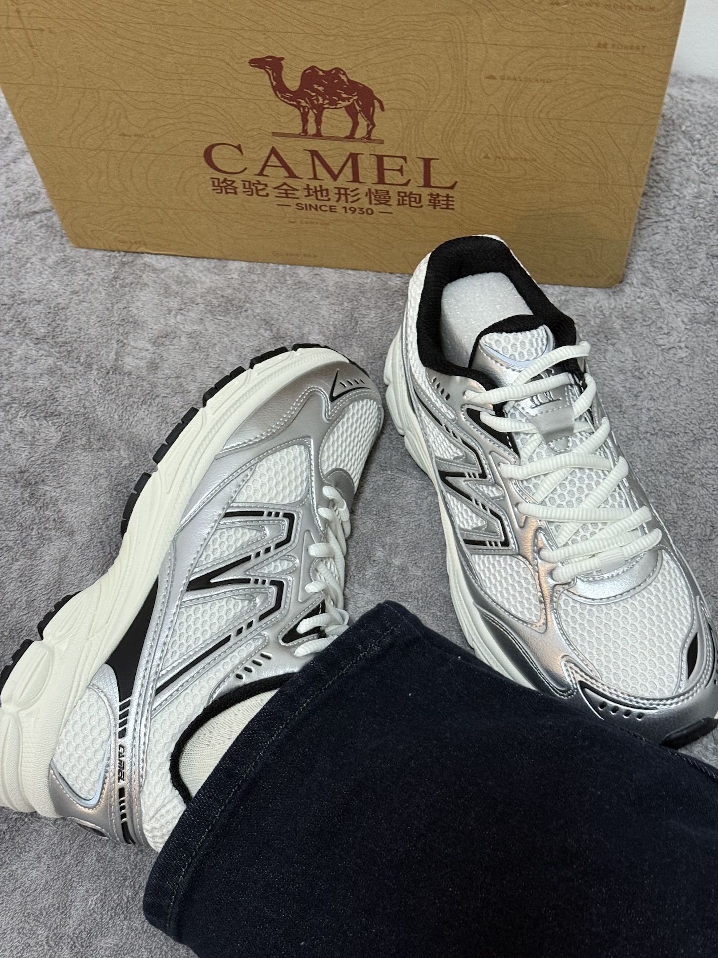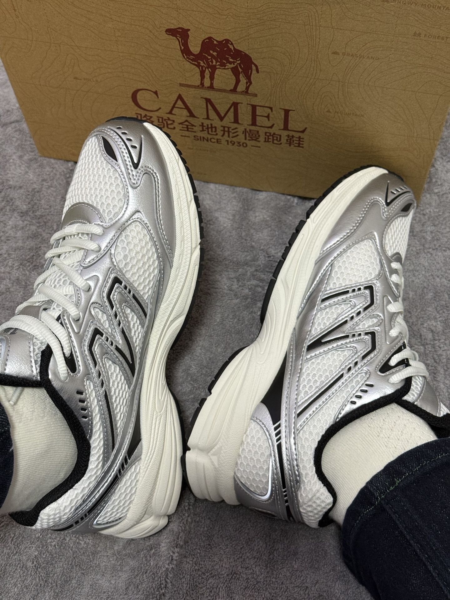 复古回潮!骆驼这双全地形慢跑鞋才是潮流天花板🆒 银白撞色+经典老爹鞋型,完美复刻90年代运动风,搭配运动装、休闲装都超有味道! 网眼透气设计,夏天运动也不闷脚,缓震大底走路、跑步都稳得一批,学生党、运动党直接闭眼入! 关键是颜值抗打,不管是上课、健身还是逛街都能穿,实用性与颜值并存! 百元价位就能拿下的宝藏鞋款,这波入股绝对不亏!💥