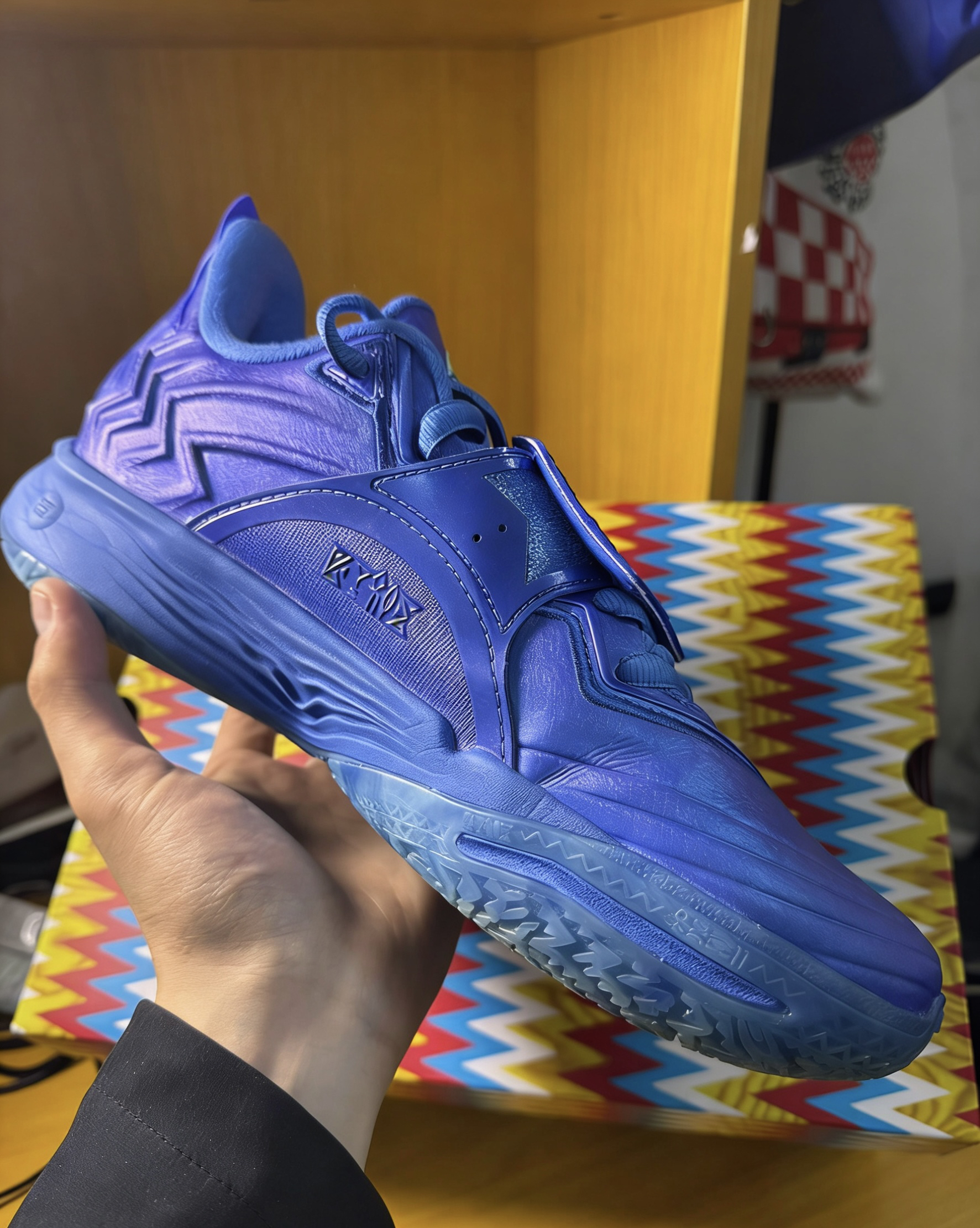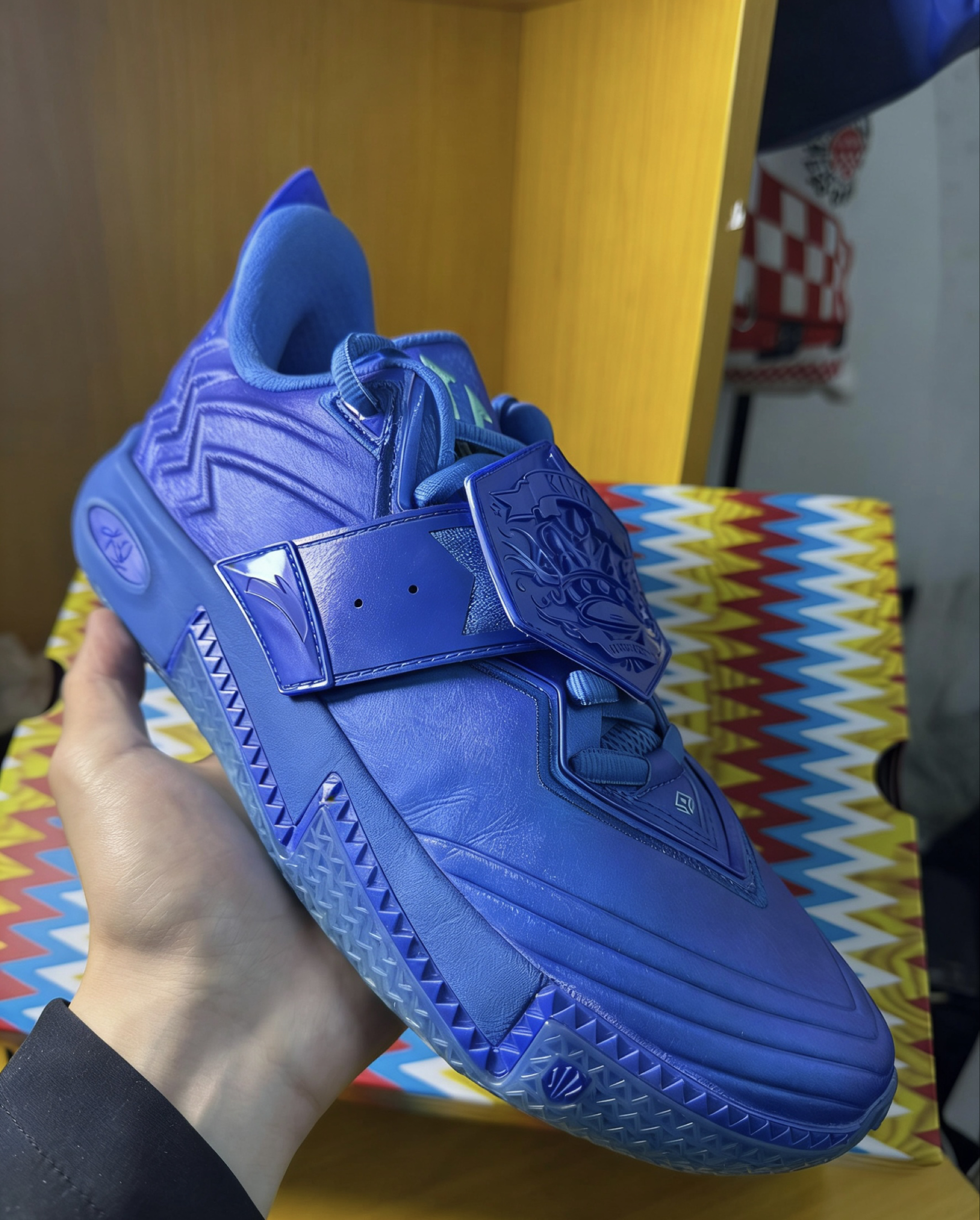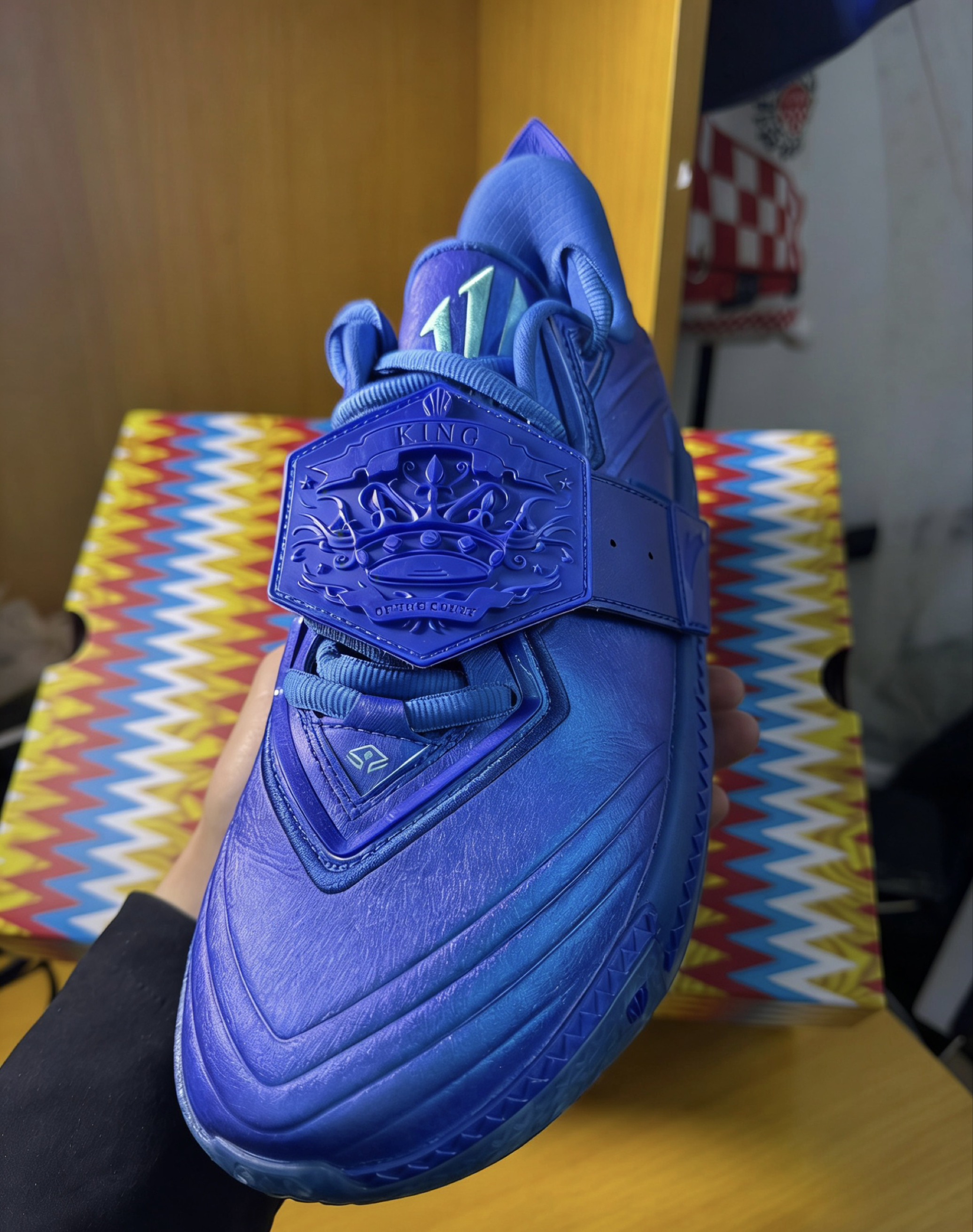 家人们谁懂啊!这双安踏KAI2「单挑王」配色真的美到我心巴上了💙 通体电光宝蓝+金属光泽,在灯光下blingbling的,像把整个星空穿在脚上🌌 ✅ 颜值杀疯了 鞋身魔术贴直接焊死亮点!浮雕皇冠徽章+「KING OF THE COURT」字样,把欧文的王者气场拉满👑 可拆卸设计还能玩出花样,想低调就摘下来,想炸场就贴回去,一鞋两穿太会了! ✅ 实战党狂喜 全掌氮科技中底,弹到能起飞的脚感谁穿谁...