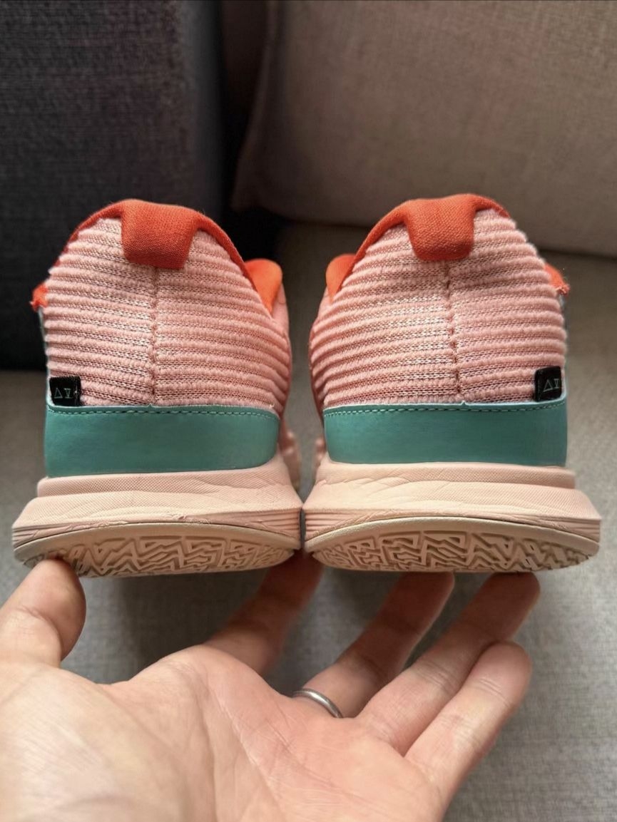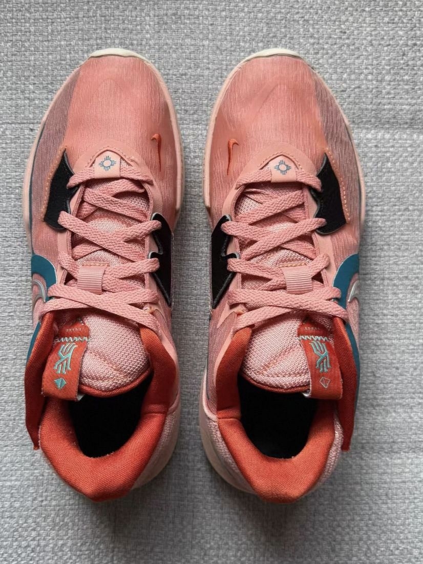 这双欧文5穿了快半年,粉蓝撞色确实吸睛,出街也不违和。前掌气垫反馈很直接,变向时能明显感觉到支撑,抓地力在室内场也稳。 唯一槽点是鞋楦偏窄,宽脚兄弟得买大半码,而且鞋面透气一般,夏天打久了有点闷。 整体来说,是颜值和性能都在线的实战好鞋。