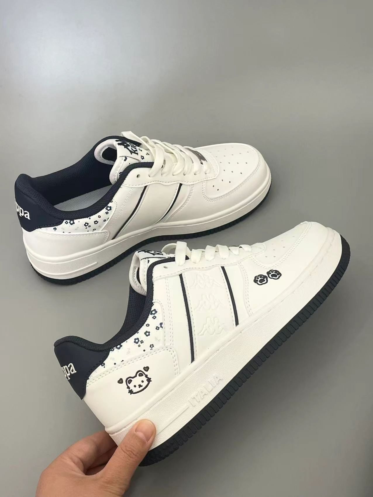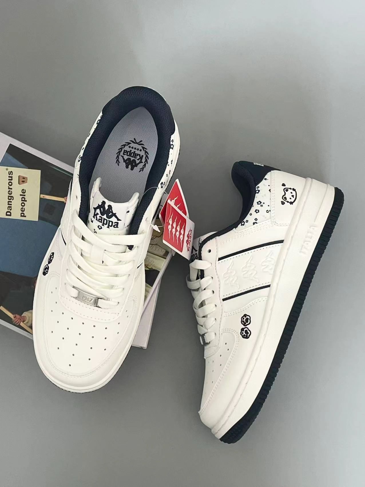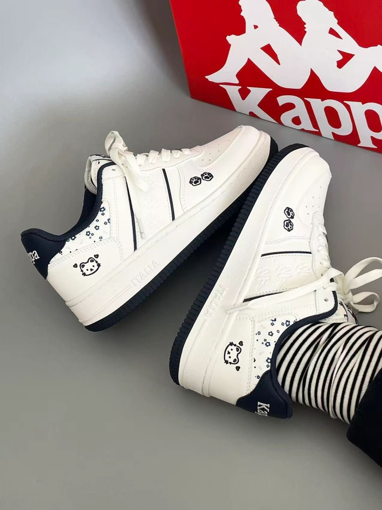 谁懂啊!Kappa这双小熊小白鞋直接长在我的心巴上💖 奶白+藏蓝撞色超清爽,鞋身满是软fufu的小熊爪印和爱心图案,甜妹DNA狠狠动了! 皮质鞋面质感拉满,耐脏又好打理,脏了一擦就干净,懒人狂喜~ 厚底设计偷偷增高5cm,上脚巨显脚小,搭配百褶裙、牛仔裤都超绝,日常通勤、约会逛街都能穿,舒适度拉满,暴走一天都不累脚! 这双颜值与实力并存的宝藏鞋子,真的让我一眼沦陷,姐妹们闭眼冲!