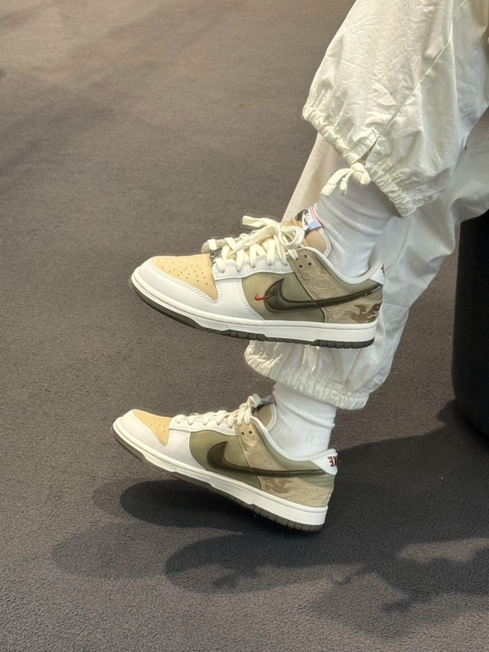 这双🐎马年Dunk也太好看了叭!🥹 谁懂啊!一上脚就被这温柔到骨子里的米棕配色狠狠拿捏了! 低饱和棕调自带复古滤镜,温柔又有质感, 不管是搭牛仔裤、工装裙还是百褶裙,都超显气质🥰 鞋身暗藏的祥云纹理细节真的绝到犯规! 低调又精致,只有凑近看才能发现的小心机, 中式韵味直接拉满,国风党狂喜! 鞋侧小勾搭配红标点缀, 像朱砂痣一样点睛, 既有马年的喜庆感,又不会过于张扬, 本命年穿它出门,氛围感...