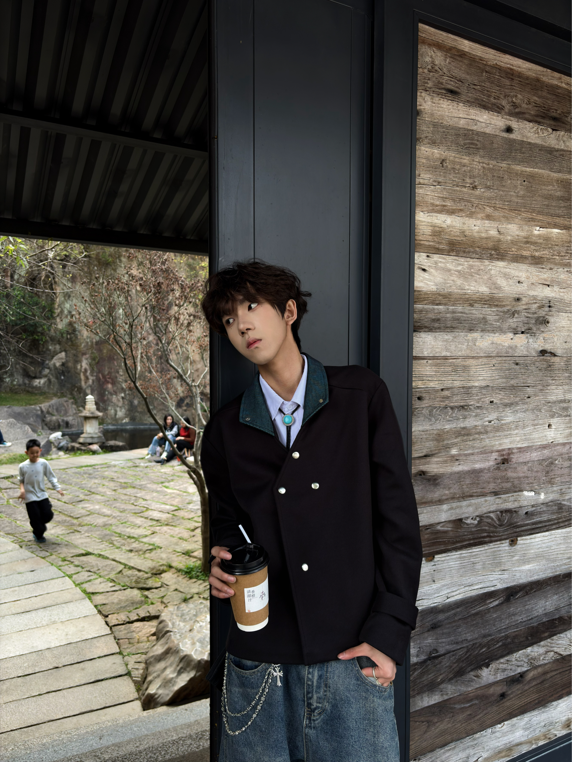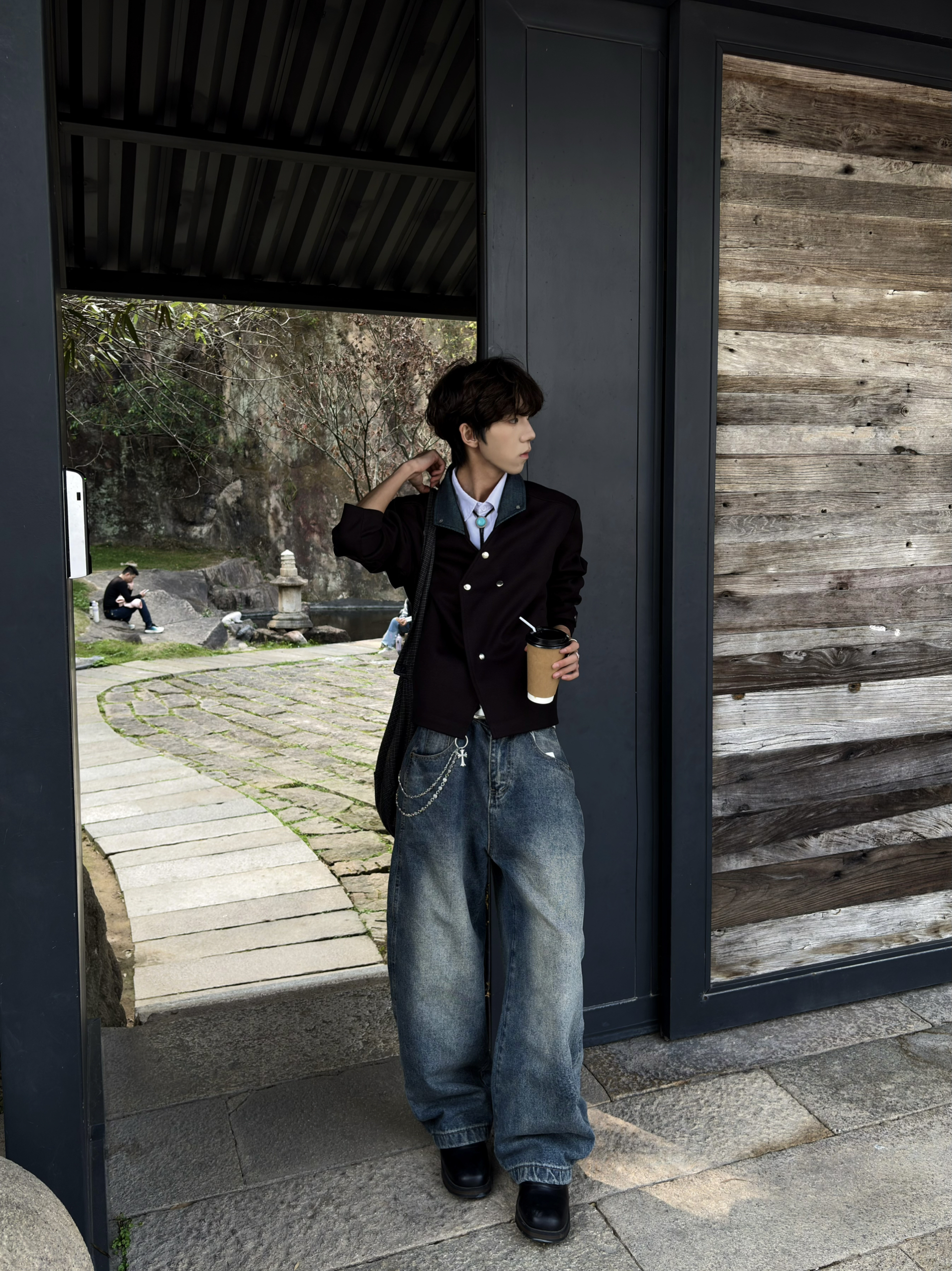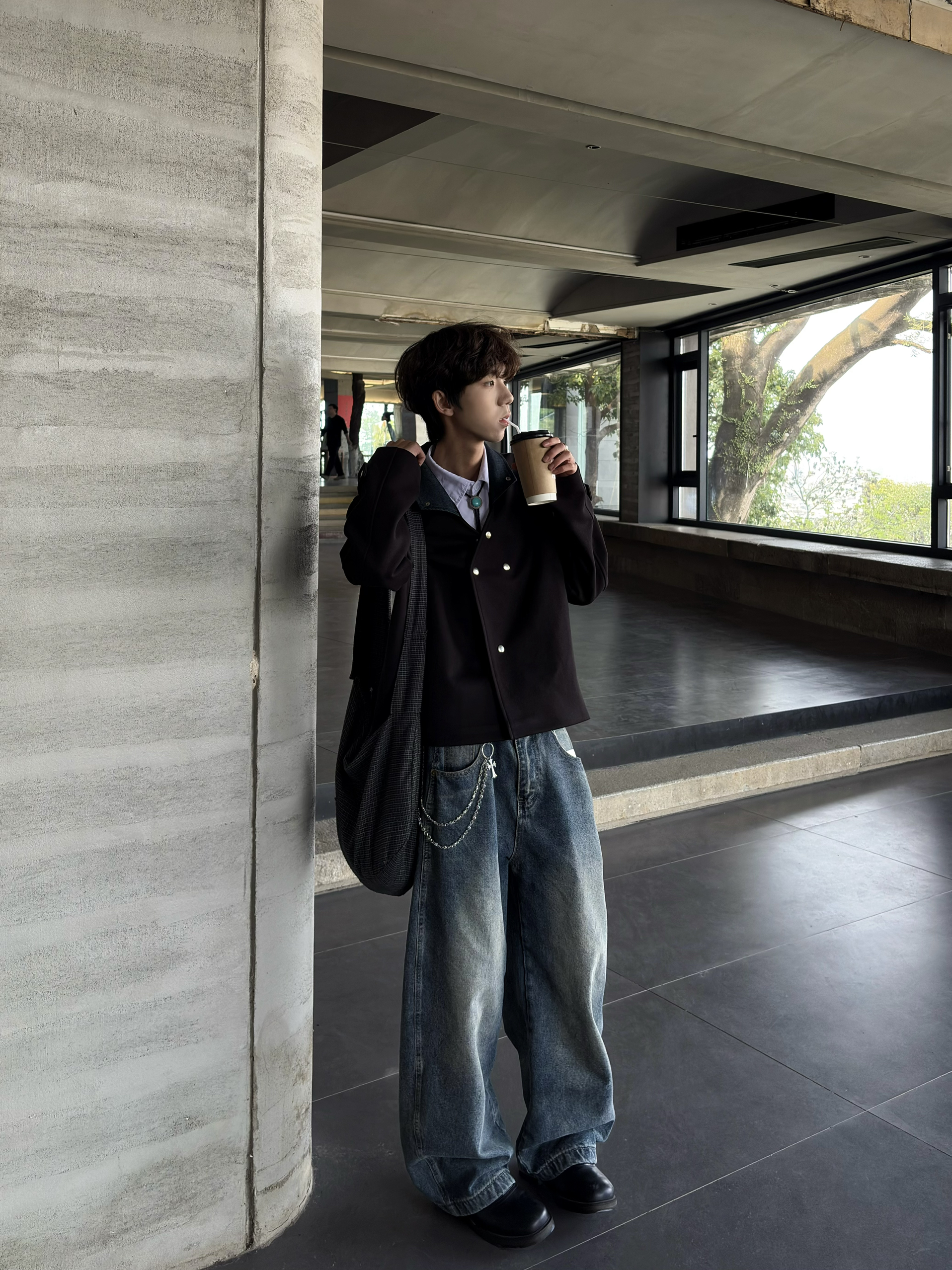 哈咯👋这里是困包💤呀~ 入春了终于到CleanFit的舒适区了♨️ 👕选择了一件黑色夹克 领口是深蓝的设计🔫 整体给我的感觉就是一个字“雅”❗️ 👖选择了深蓝的阔腿牛仔裤 和衣服领口颜色相呼应🧬 宽松的版型适配所以身材~ 🚶博主身高:178cm 体重:55kg 👔M|👖L