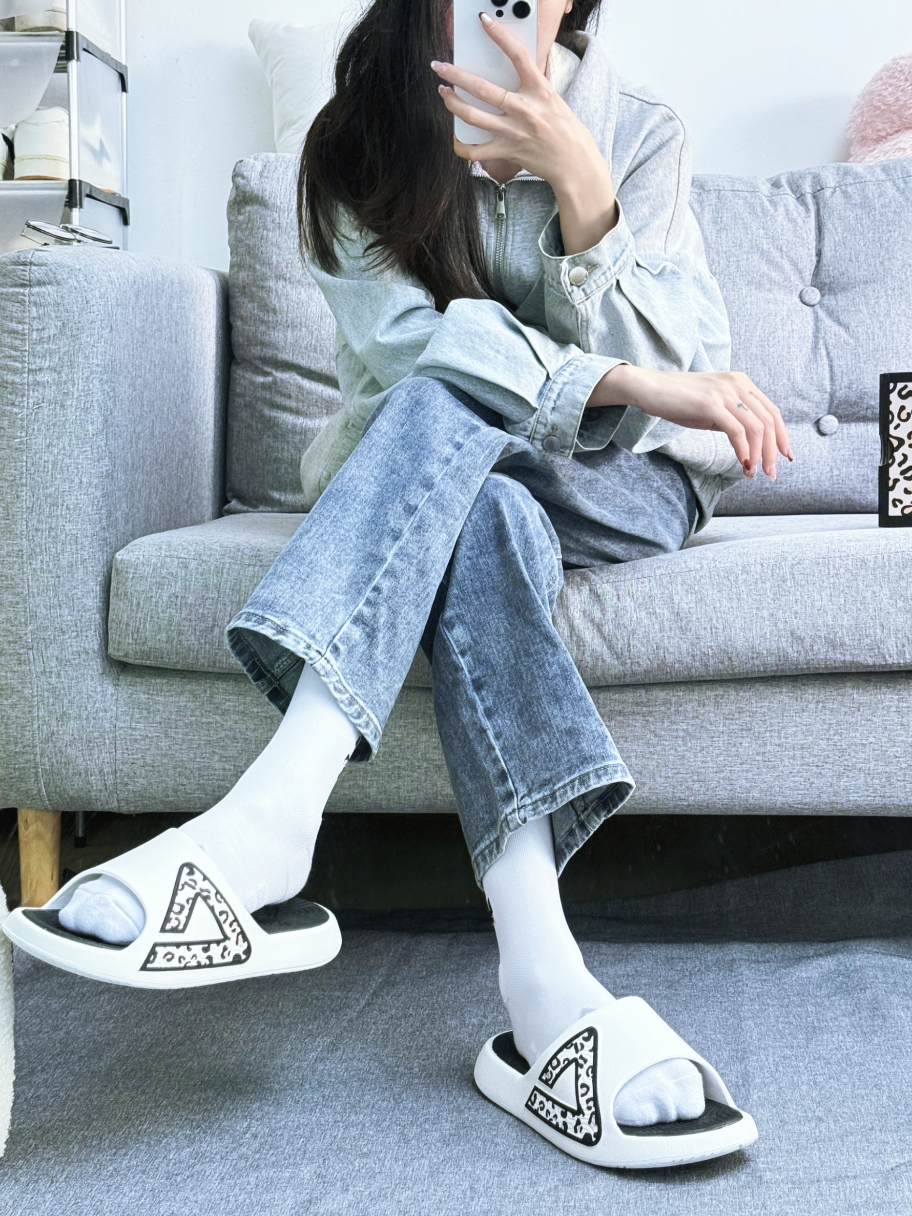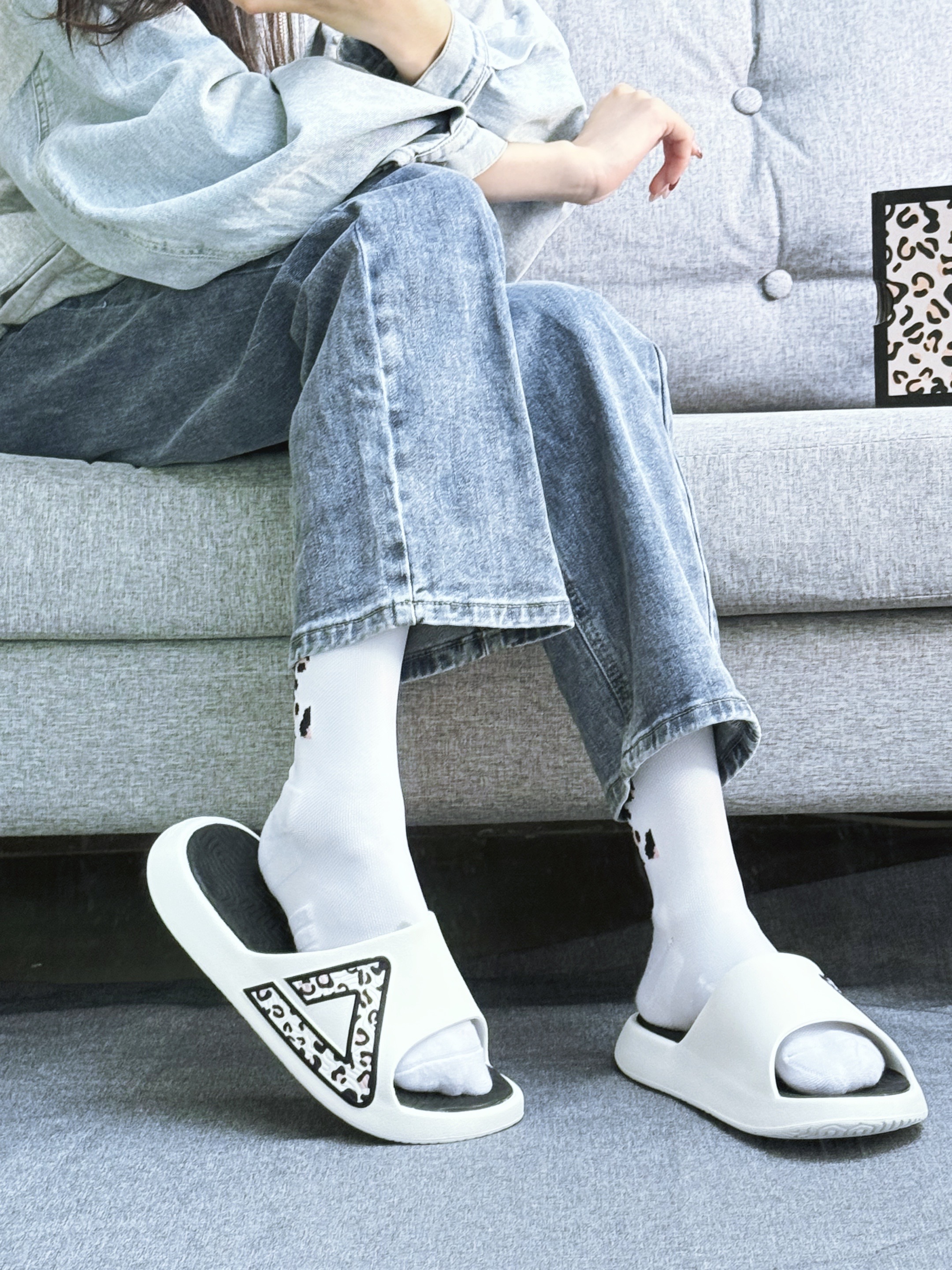 匹克拖鞋又出新品啦! 经典的黑白配色 整体简约又百搭! 特喜欢侧面的豹纹logo,感觉穿上像是充满了活力! 而且搭配一双小白袜干干净净!