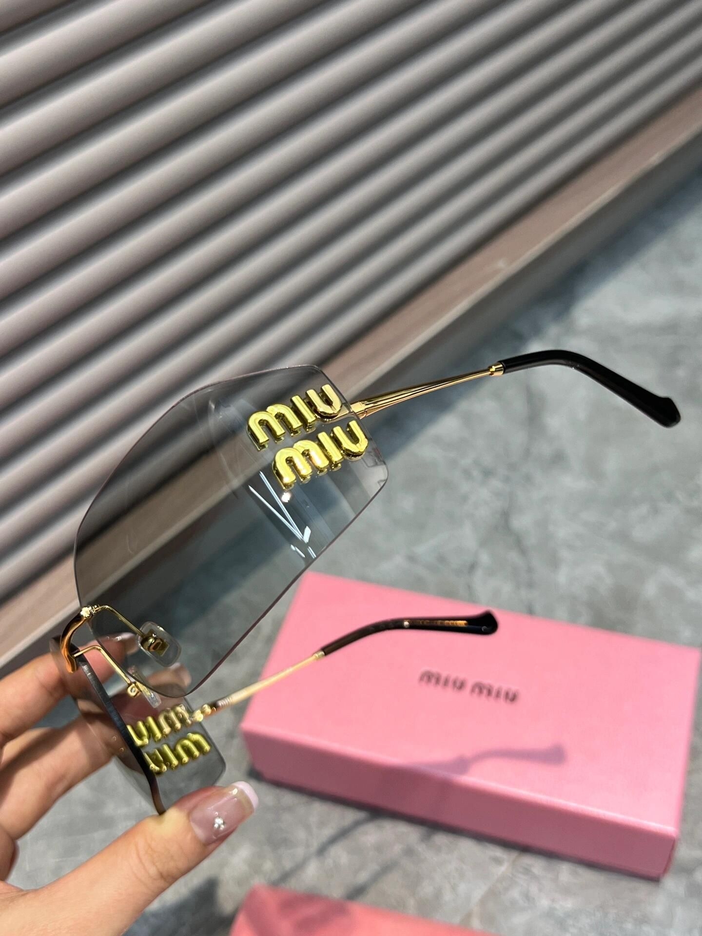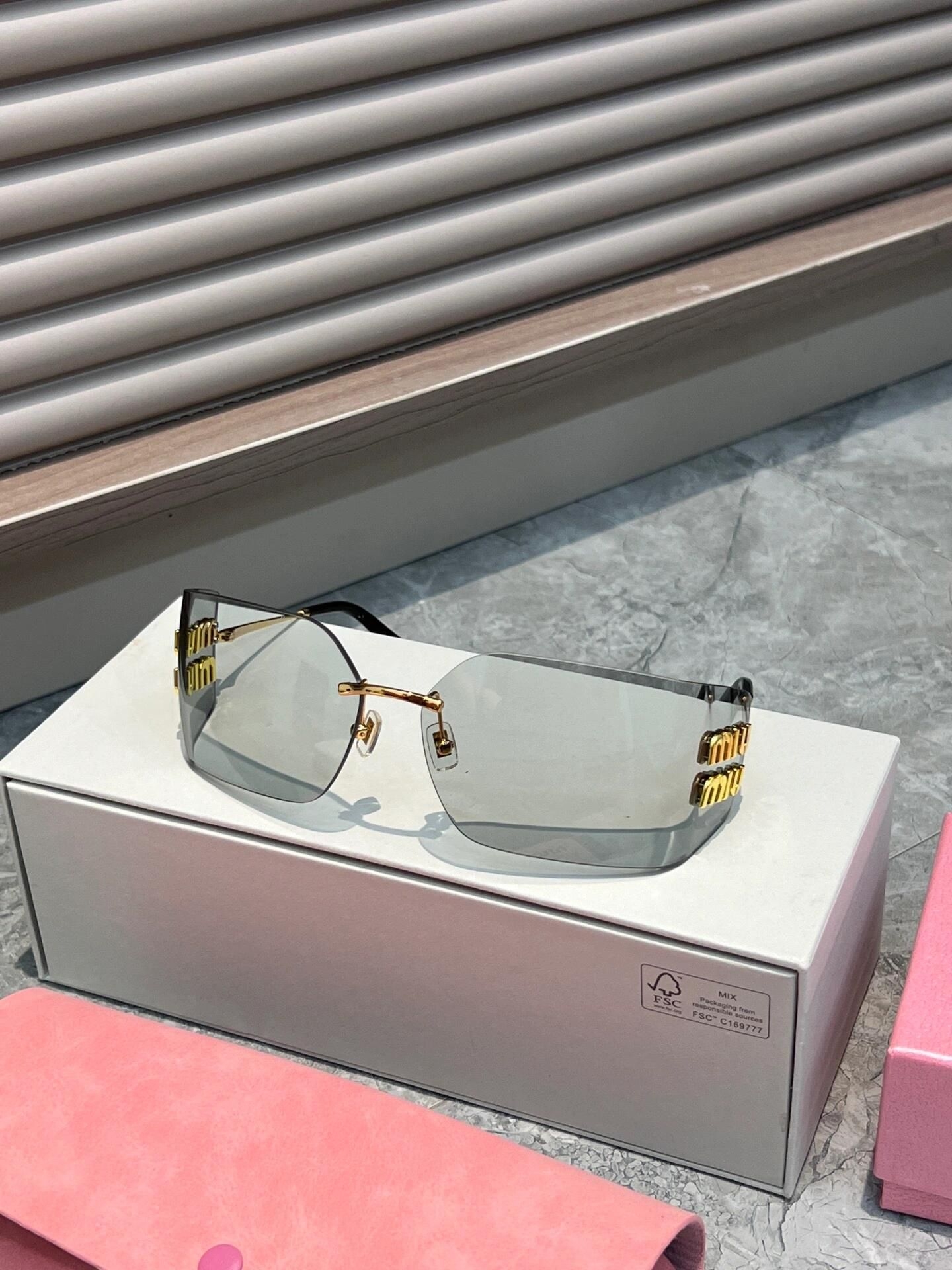 ✨MiuMiu 无框墨镜,金属镜框+无边框设计,轻盈又高级!镜片防紫外线,日常佩戴超安心😎。镜腿有品牌徽标,辨识度满分,时尚感爆棚!Y2K复古风,搭配千禧辣妹或欧美风穿搭都超有范儿💃。明星同款,张元英、吴昕都在戴,凹造型必备!