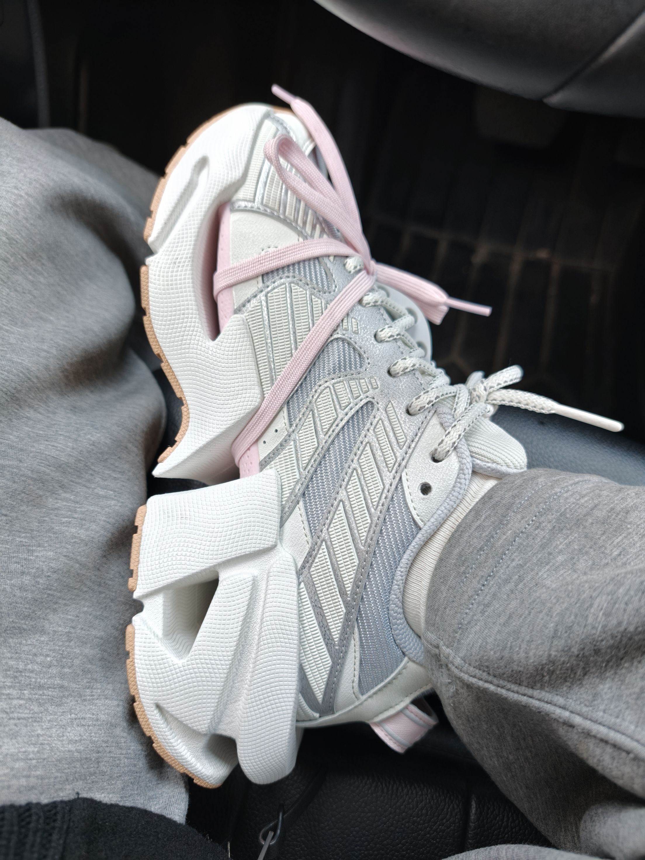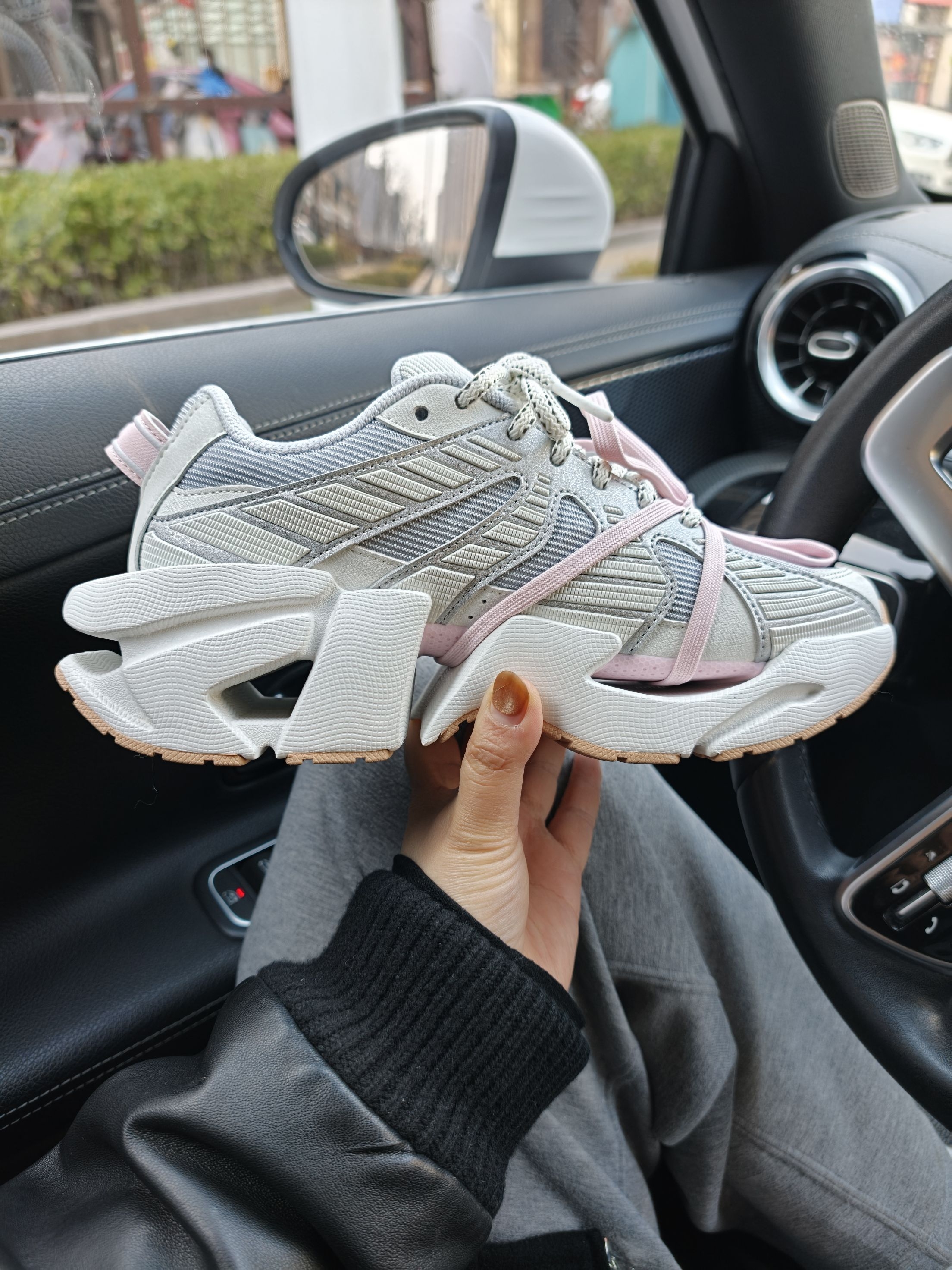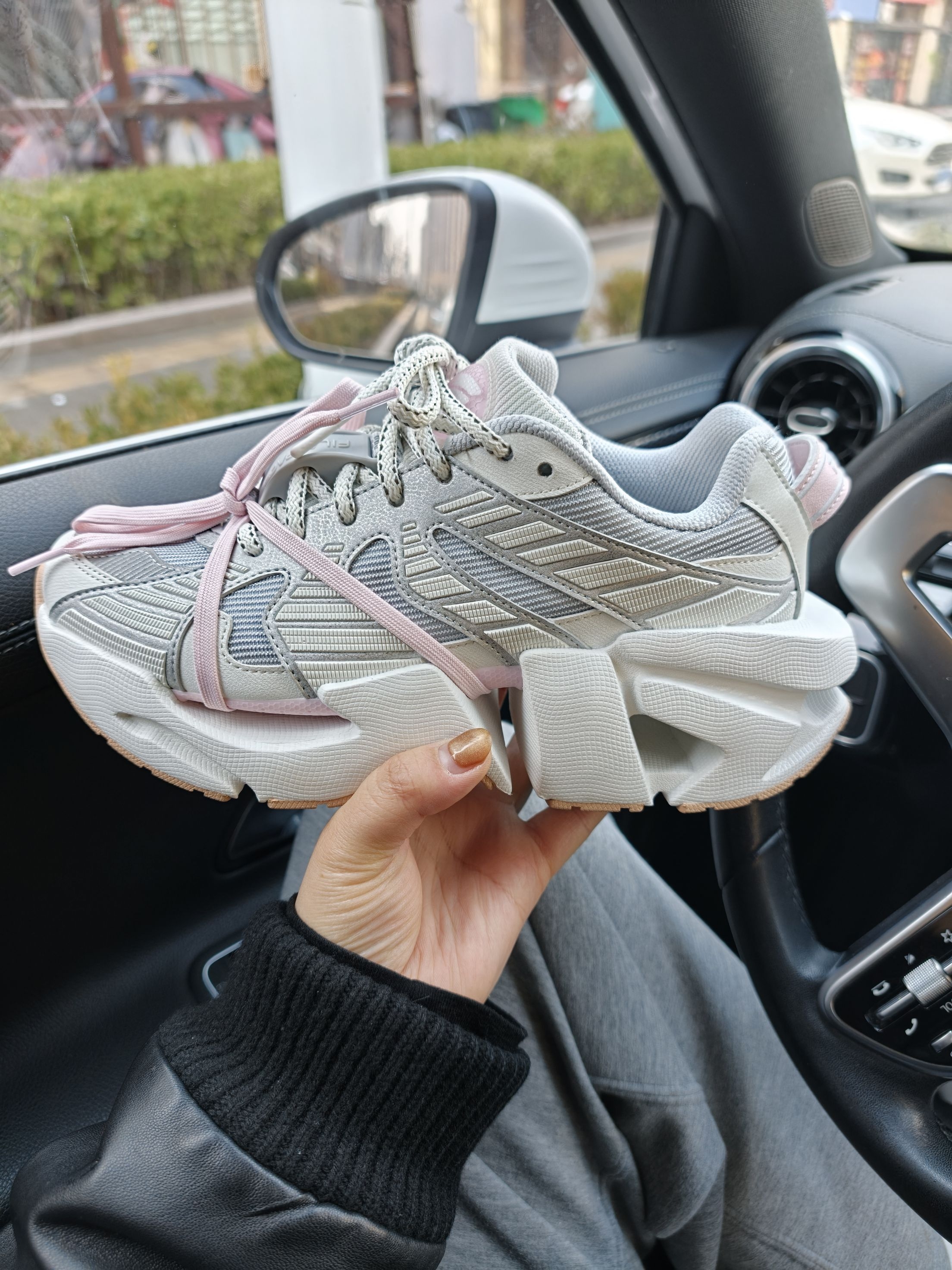 谁能拒绝一双甜酷并存的老爹鞋啊!这双FILA太空鞋真的长在我审美点上~灰银拼色+温柔粉绑带,既有机能风的酷感又藏着少女心,机甲感厚底不仅显高还巨显腿细!上脚软弹不磨脚,春天配牛仔裤、小裙子都超绝,走在街上回头率直接拉满,小个子姐妹闭眼冲就对了!#👟球鞋名称:斐乐机甲鞋 🔍分享理由:增高5厘米,甜酷风