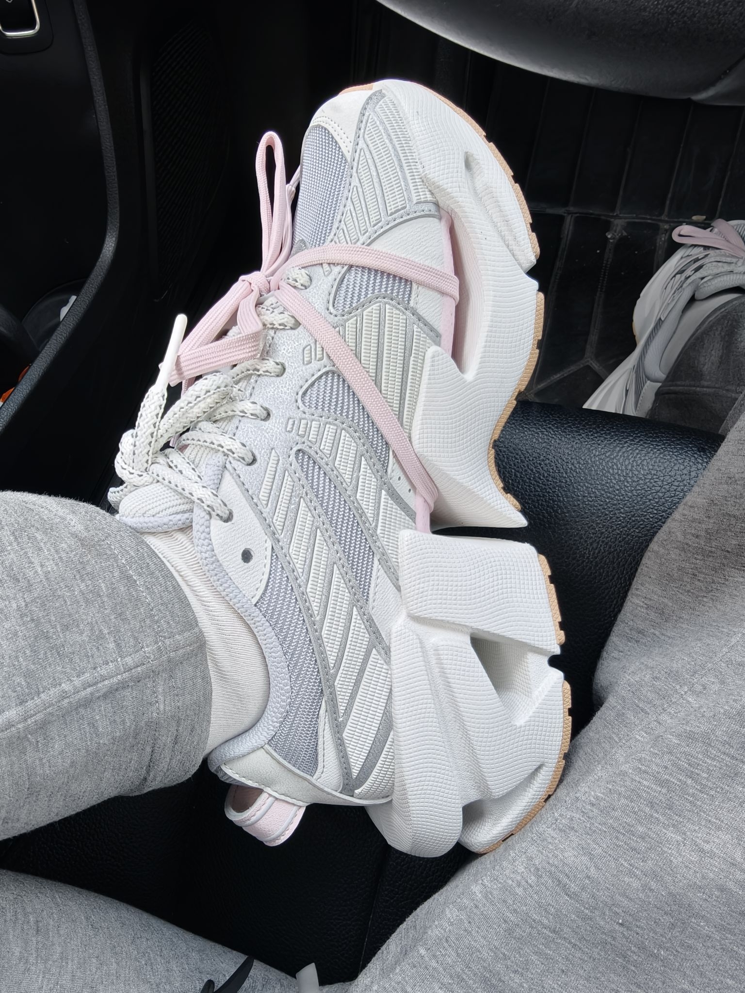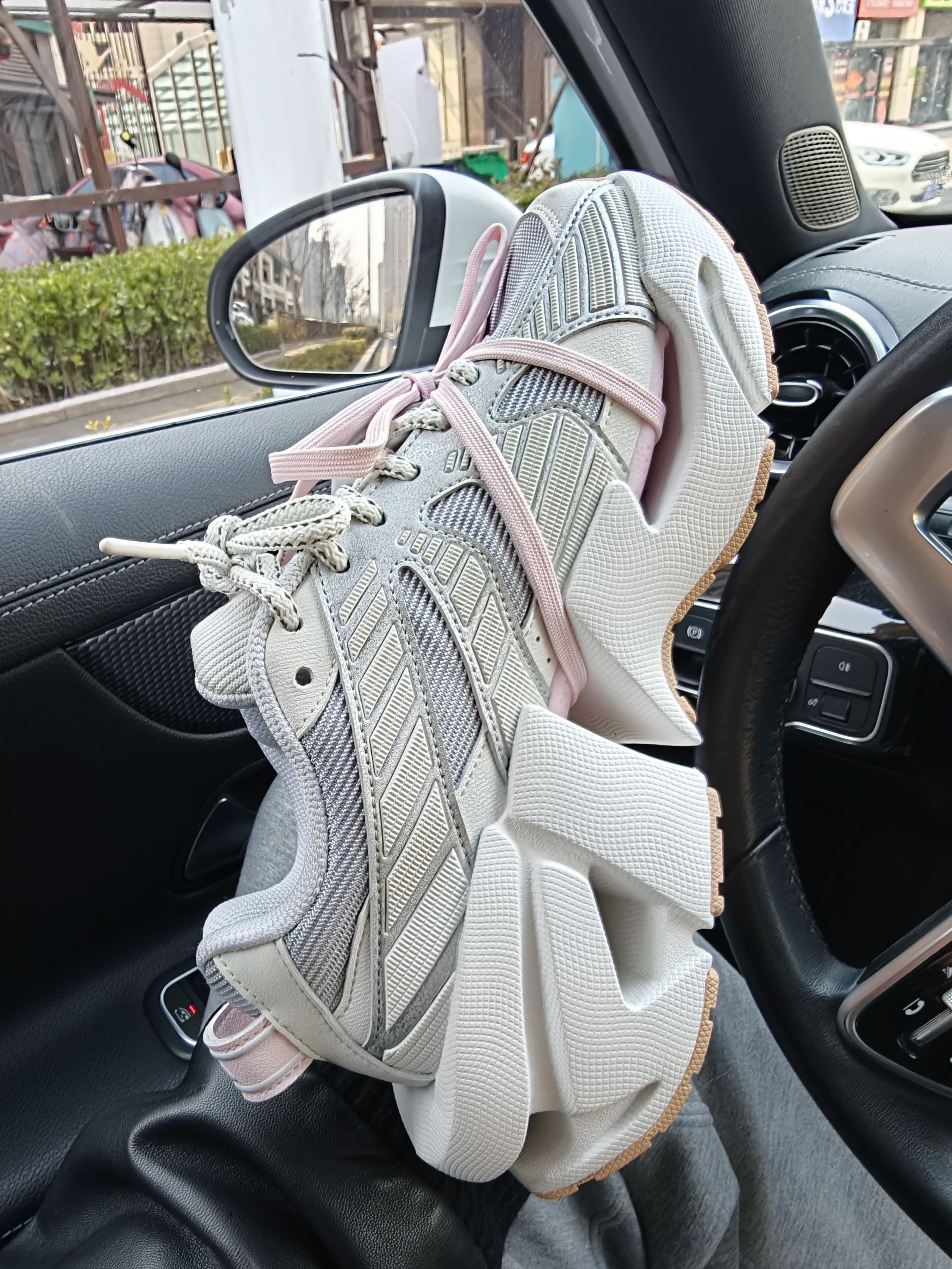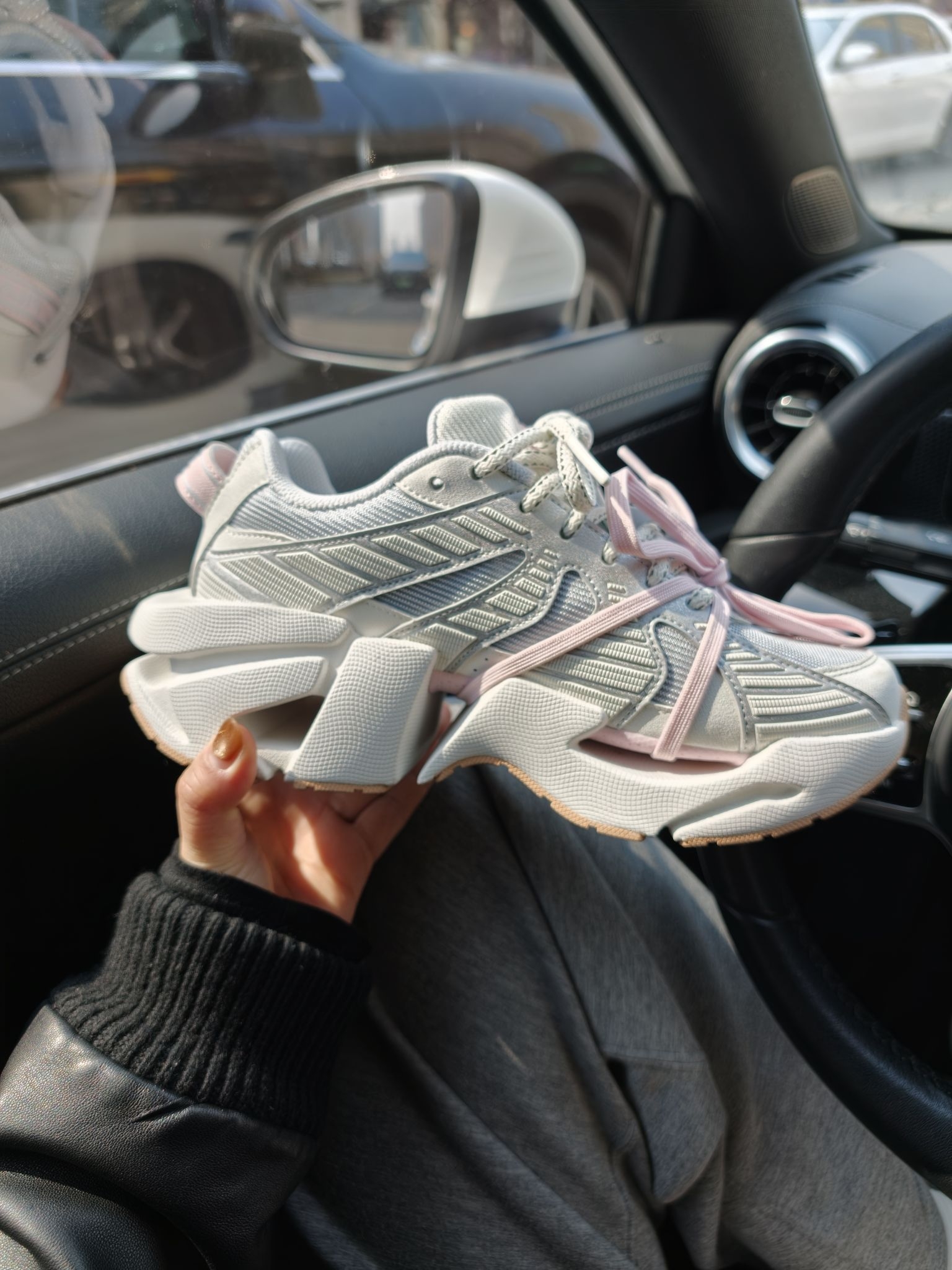 谁能拒绝一双甜酷并存的老爹鞋啊!这双FILA太空鞋真的长在我审美点上~灰银拼色+温柔粉绑带,既有机能风的酷感又藏着少女心,机甲感厚底不仅显高还巨显腿细!上脚软弹不磨脚,春天配牛仔裤、小裙子都超绝,走在街上回头率直接拉满,小个子姐妹闭眼冲就对了!#👟球鞋名称:斐乐机甲鞋 🔍分享理由:增高5厘米,甜酷风