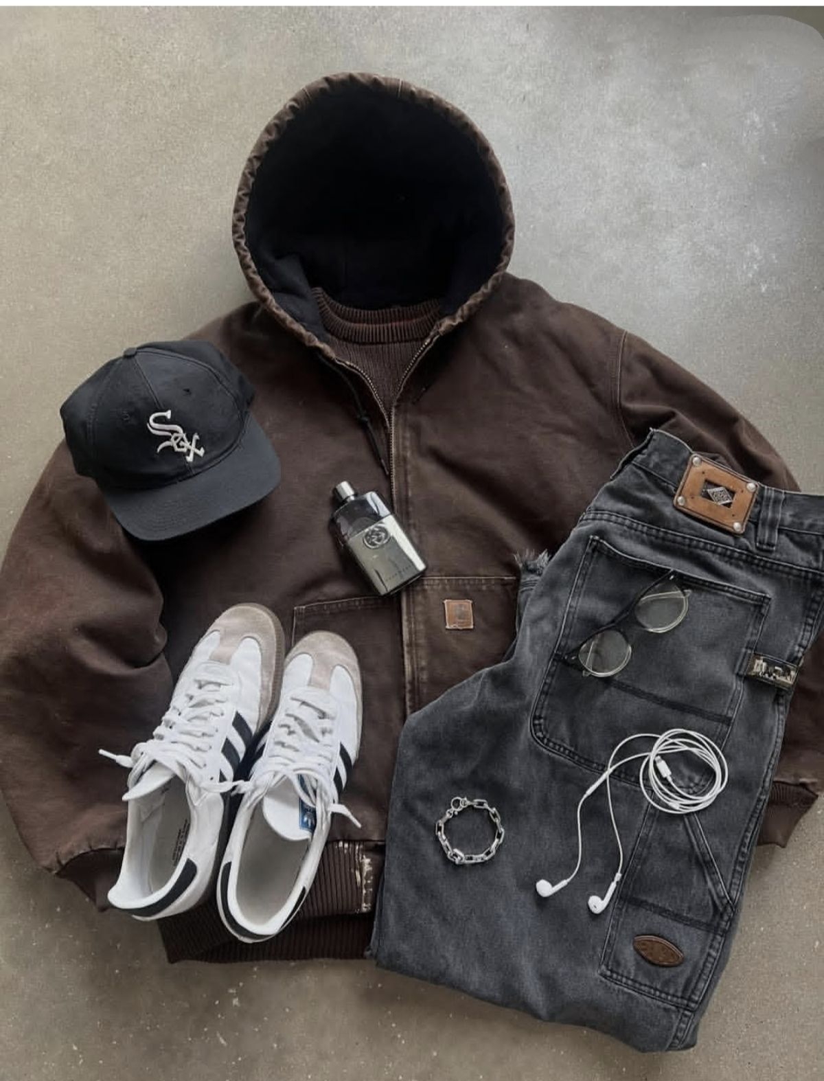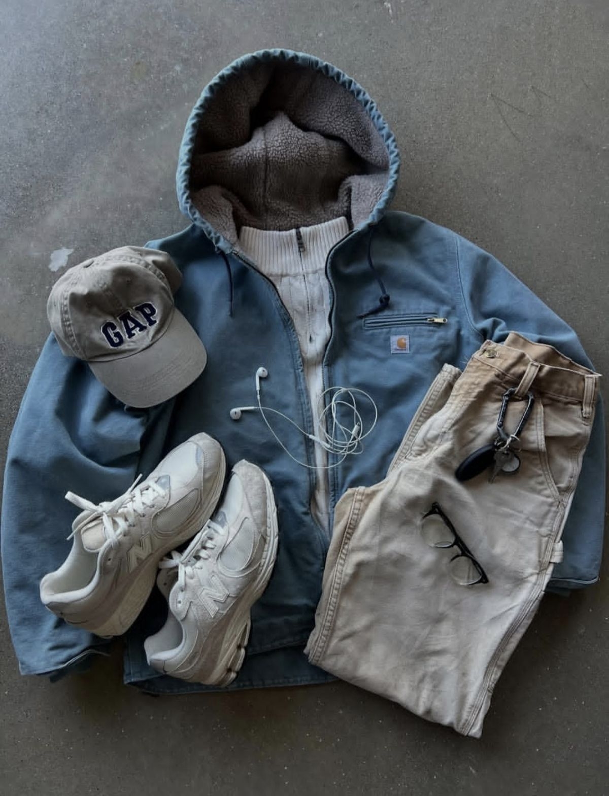 ✅ 配色逻辑:低饱和大地色/雾霾蓝+中性白,视觉干净又显白 ✅ 单品核心:绞花毛衣/工装夹克+Carhartt工装裤+复古运动鞋 ✅ 细节加分:棒球帽、金属手链、香氛小物,瞬间提升精致度 ✅ 场景适配:通勤、约会、citywalk,一套搞定全场景