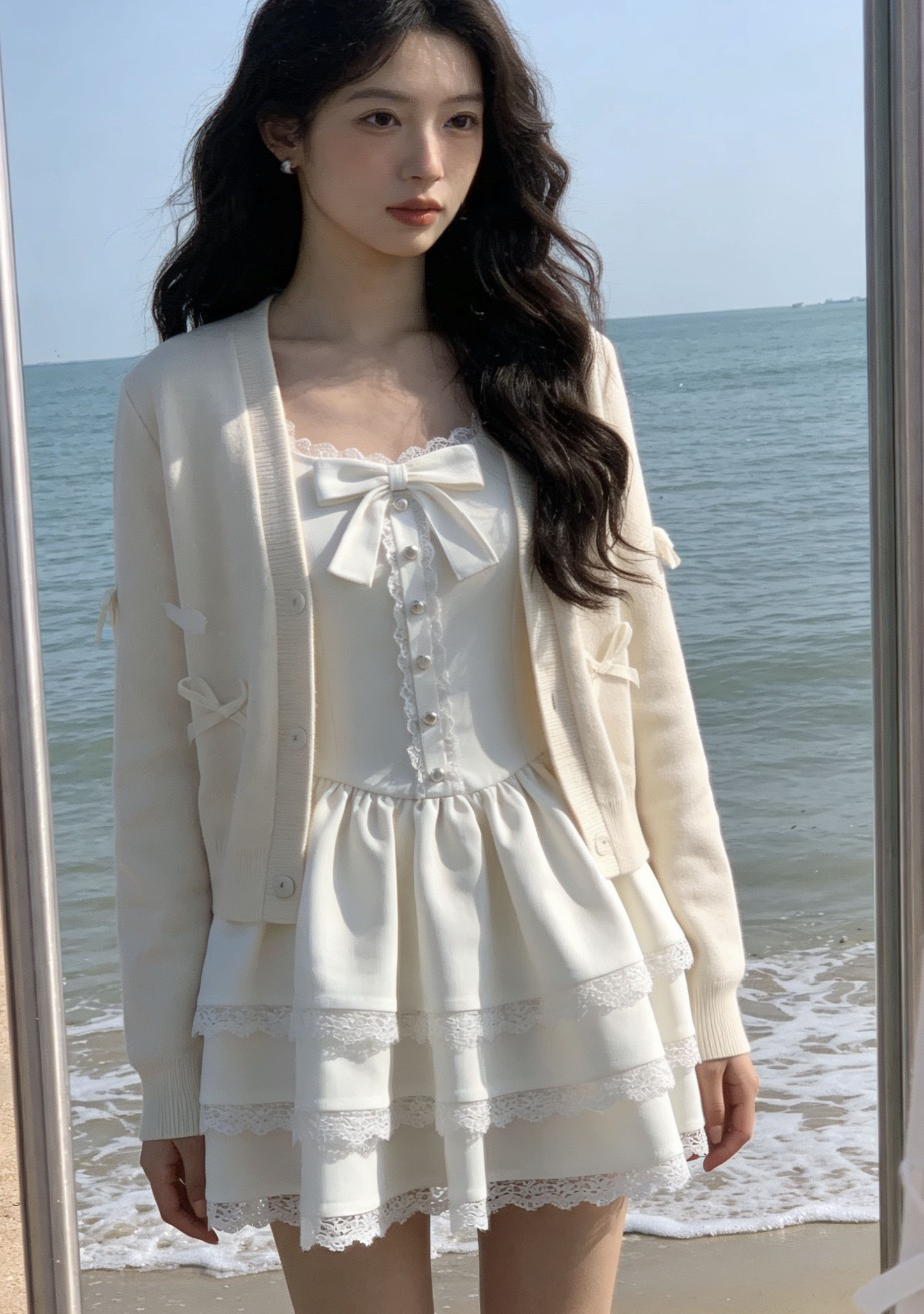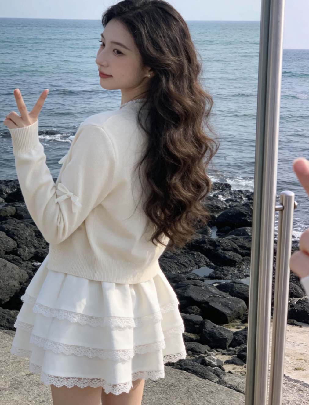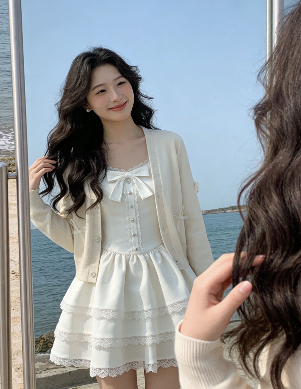 今日春季OOTD 白色针织外套➕蝴蝶结裙裙 出门拍照很出片 妥妥小甜妹一枚 韩系氛围感十足~