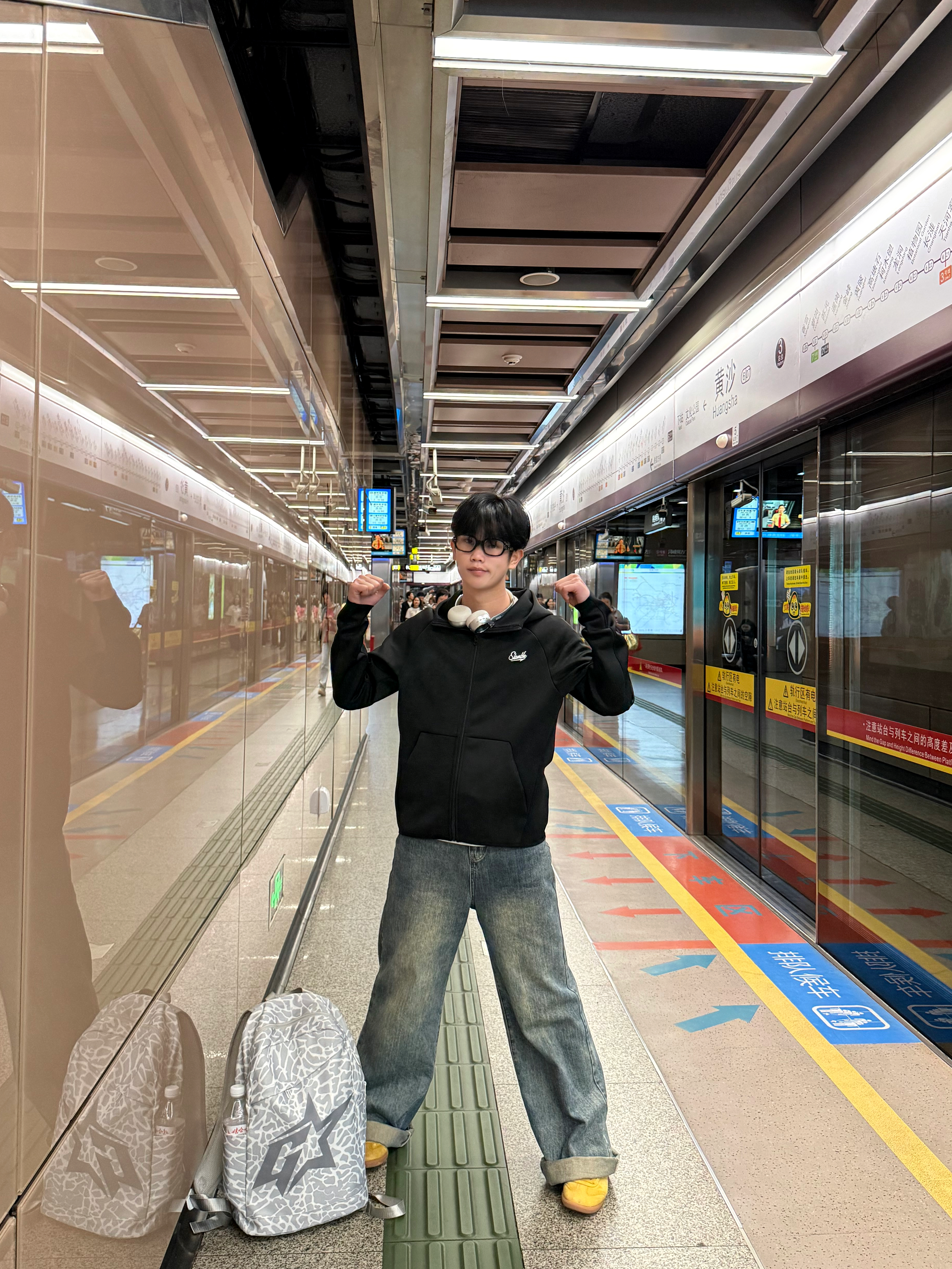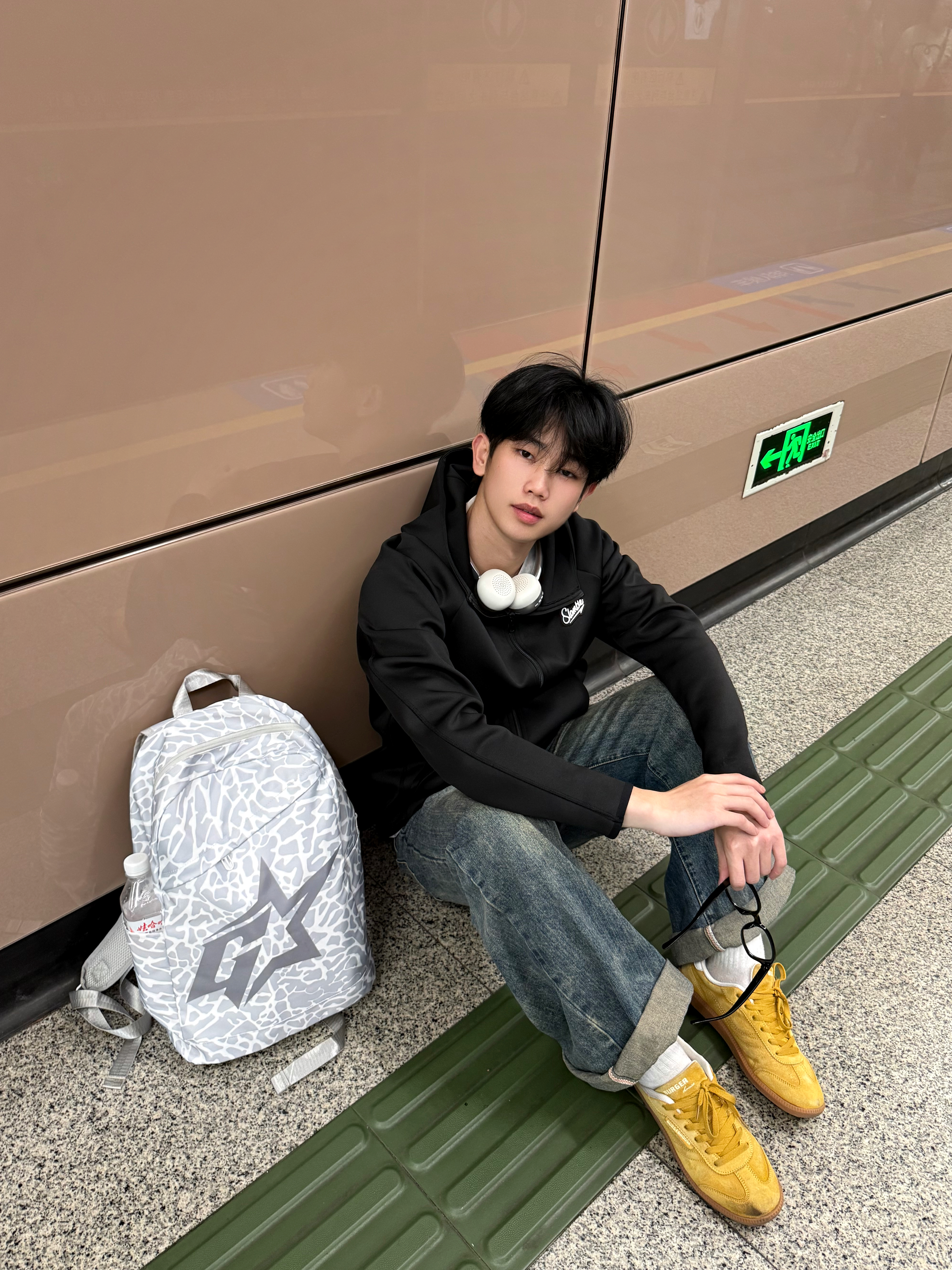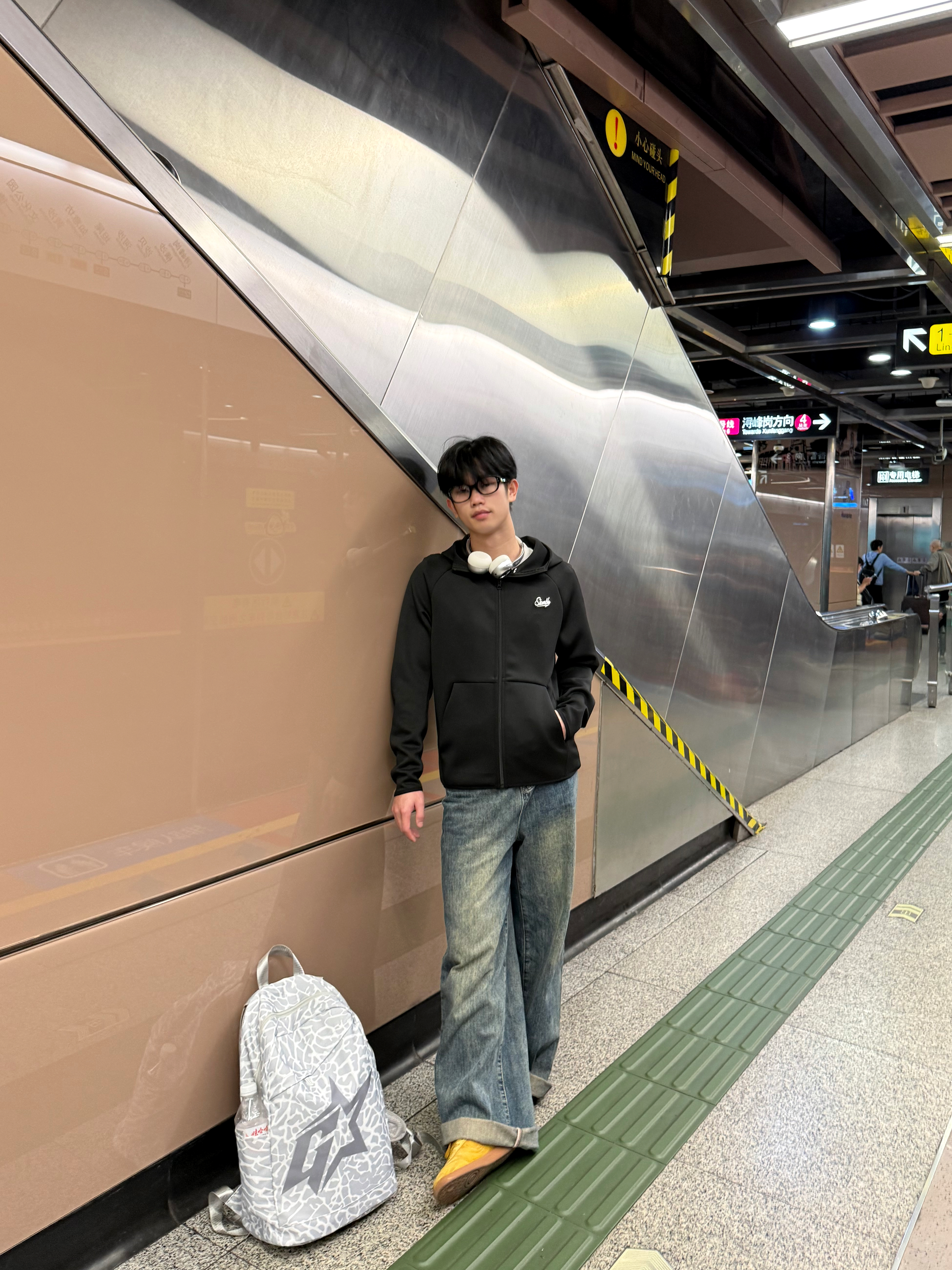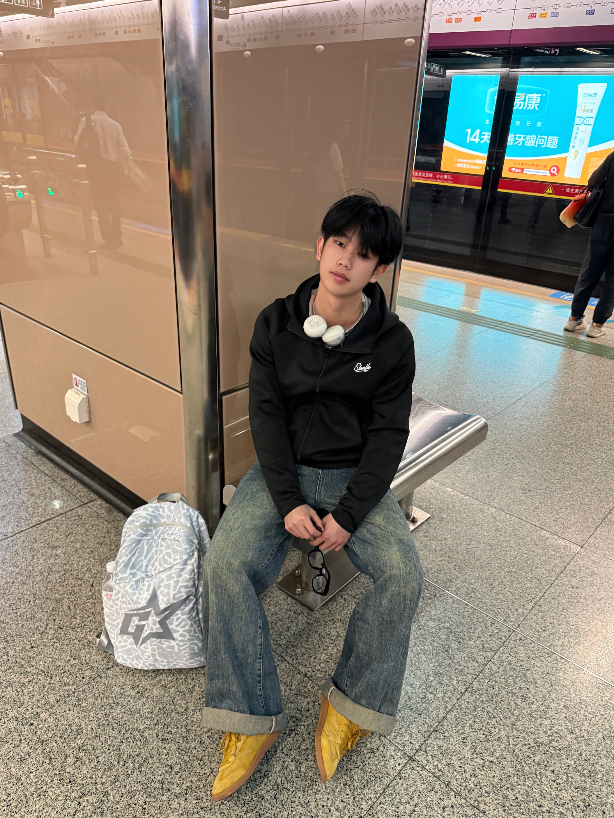 在地铁的角落捕捉一组随性OOTD☕️ 不费力的穿搭公式:黑卫衣+水洗牛仔+姜黄德训鞋 耳机一戴,世界与我无关,只管自在赶路 背包是亮点,鞋子是惊喜,舒服又好看才是穿搭的终极奥义 马年的第一组随手拍,松弛感拉满🌿