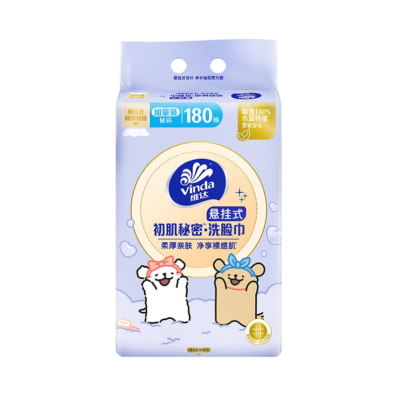 本篇笔记关联了Vinda/维达 初级秘密 线条小狗联名款 M码 160x200mm 悬挂式洗脸巾 干湿两用超柔软擦脸加厚抽取式 180抽/提等商品,为用户提供真实的使用体验和购买参考。