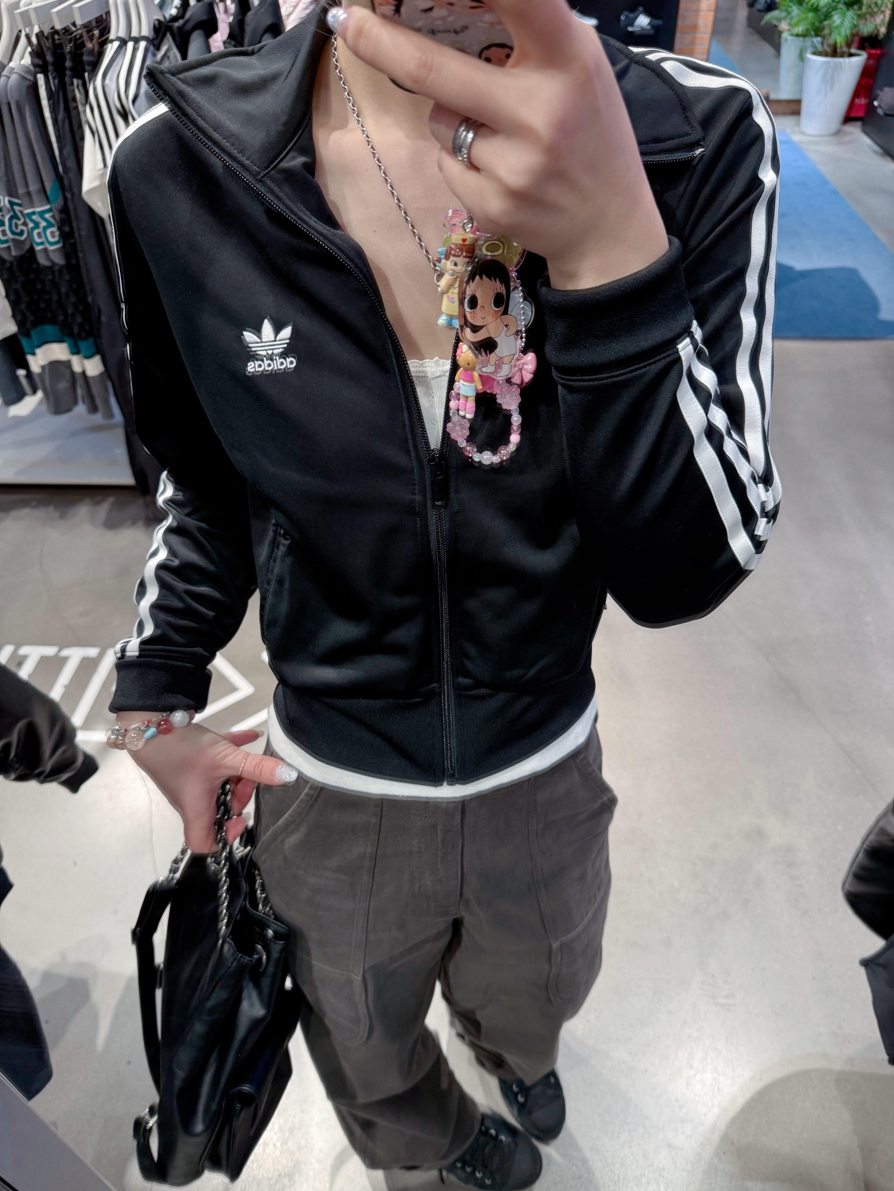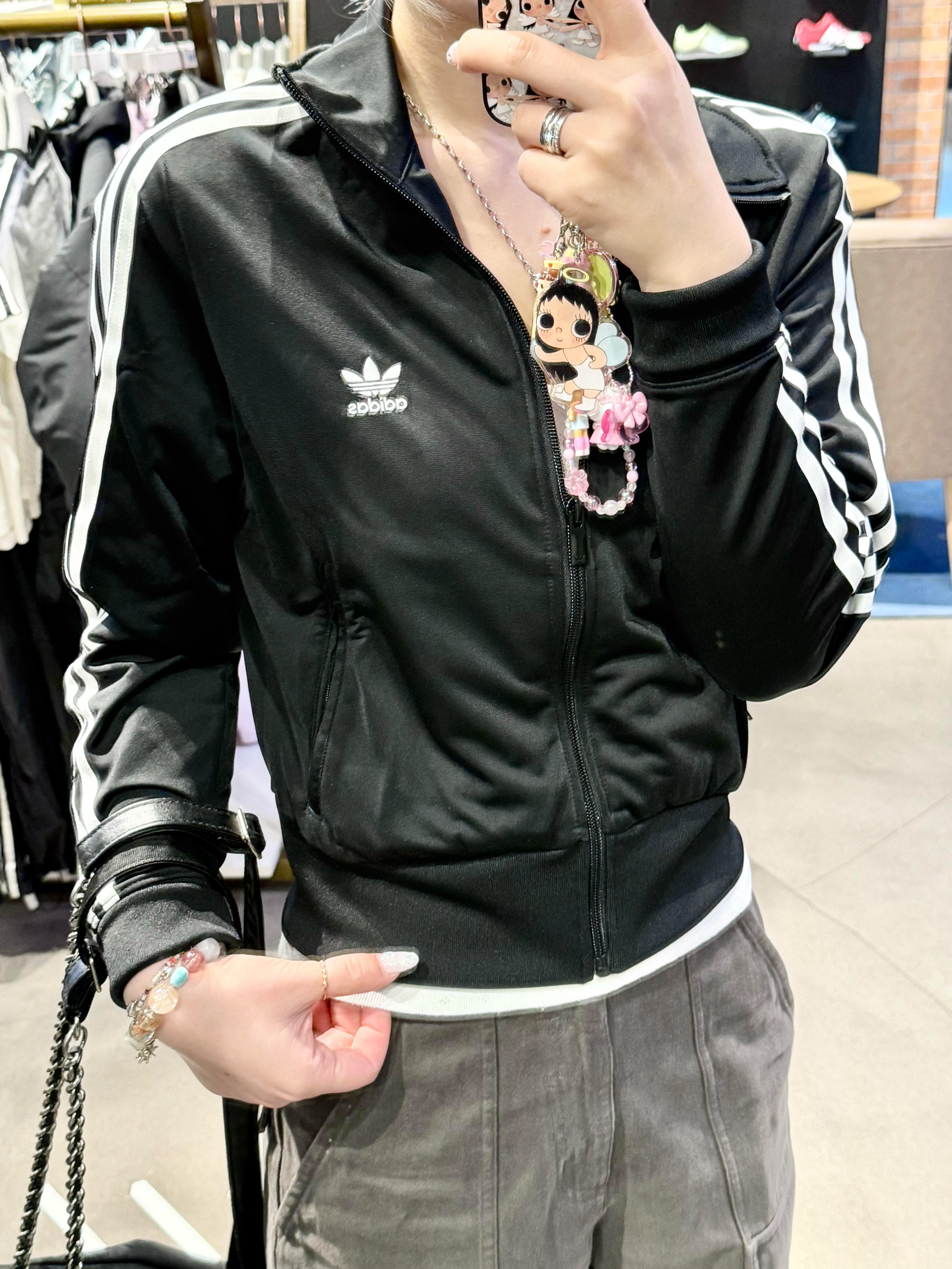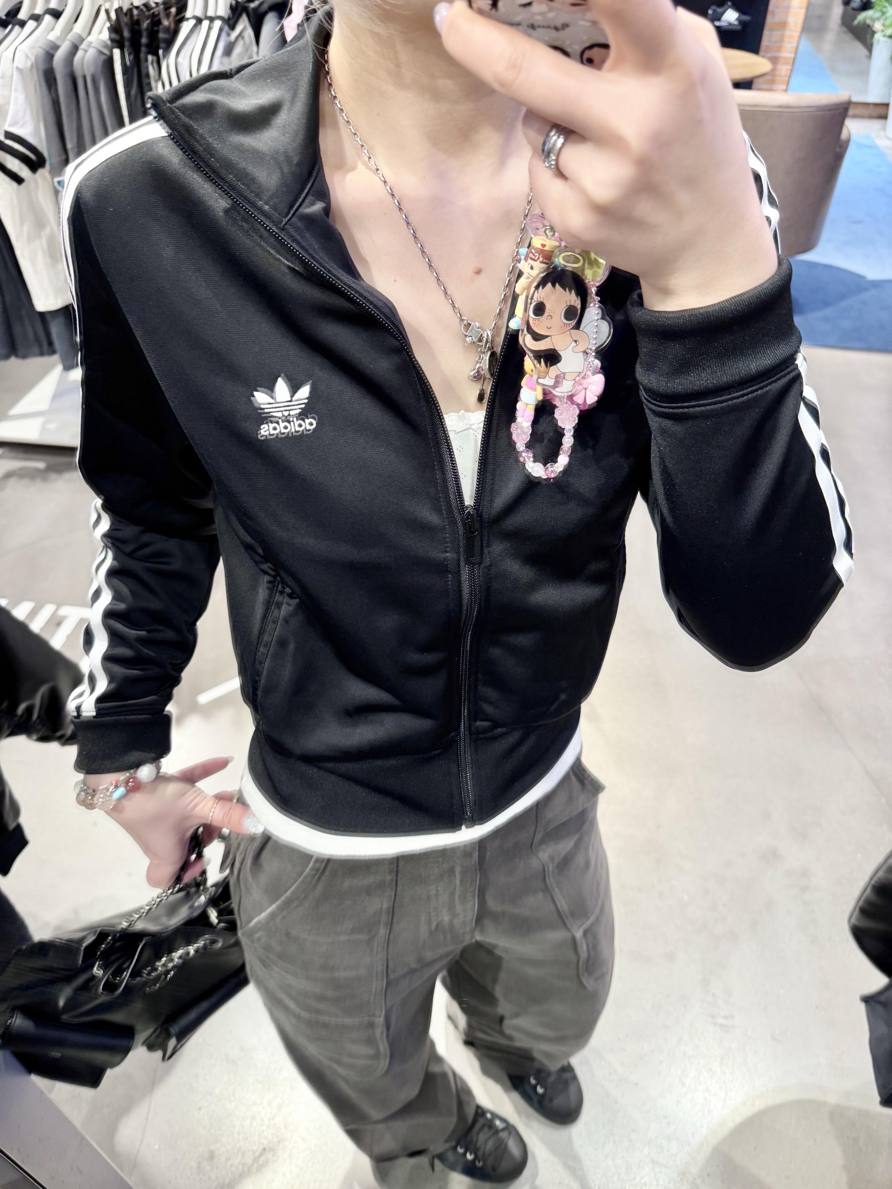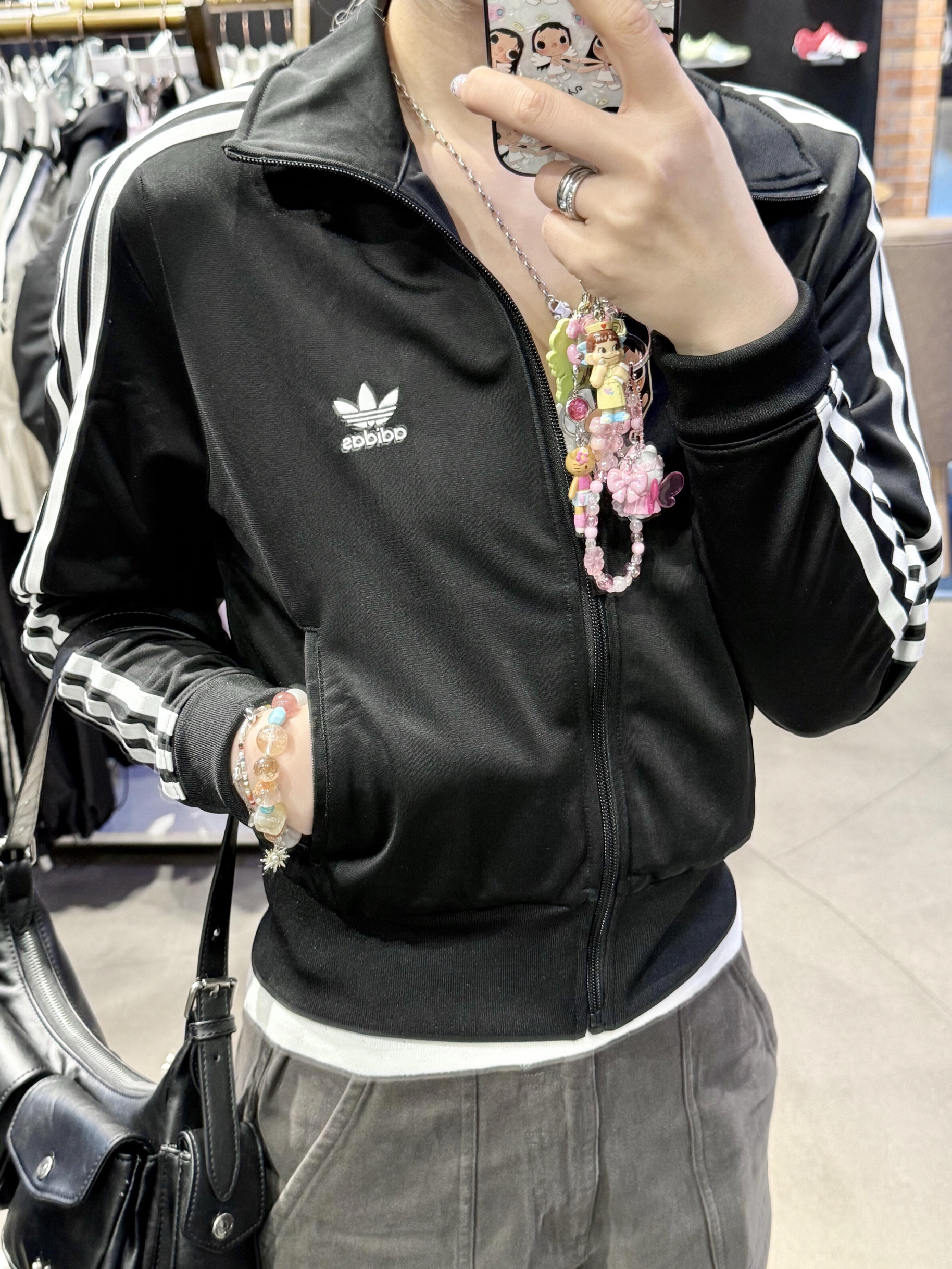 阿迪Jennie同款!这件外套真的被问了800遍链接🔗 阿迪这件经典黑色基础外套, 简直是我衣柜里焊在身上、永远穿不腻的「常青树」🌲 极简耐看的黑色+标志性三条杠, 不挑身材、不挑场景, 随便搭一条工装裤👖, 复古街头感瞬间拉满, 轻轻松松就能get Jennie同款氛围感。 小小细节直接拉高造型感—— 搭配一条超吸睛的手机链挂饰👀, 让整体简约穿搭瞬间变活泼、有记忆点, 甜而不腻,酷又不硬...