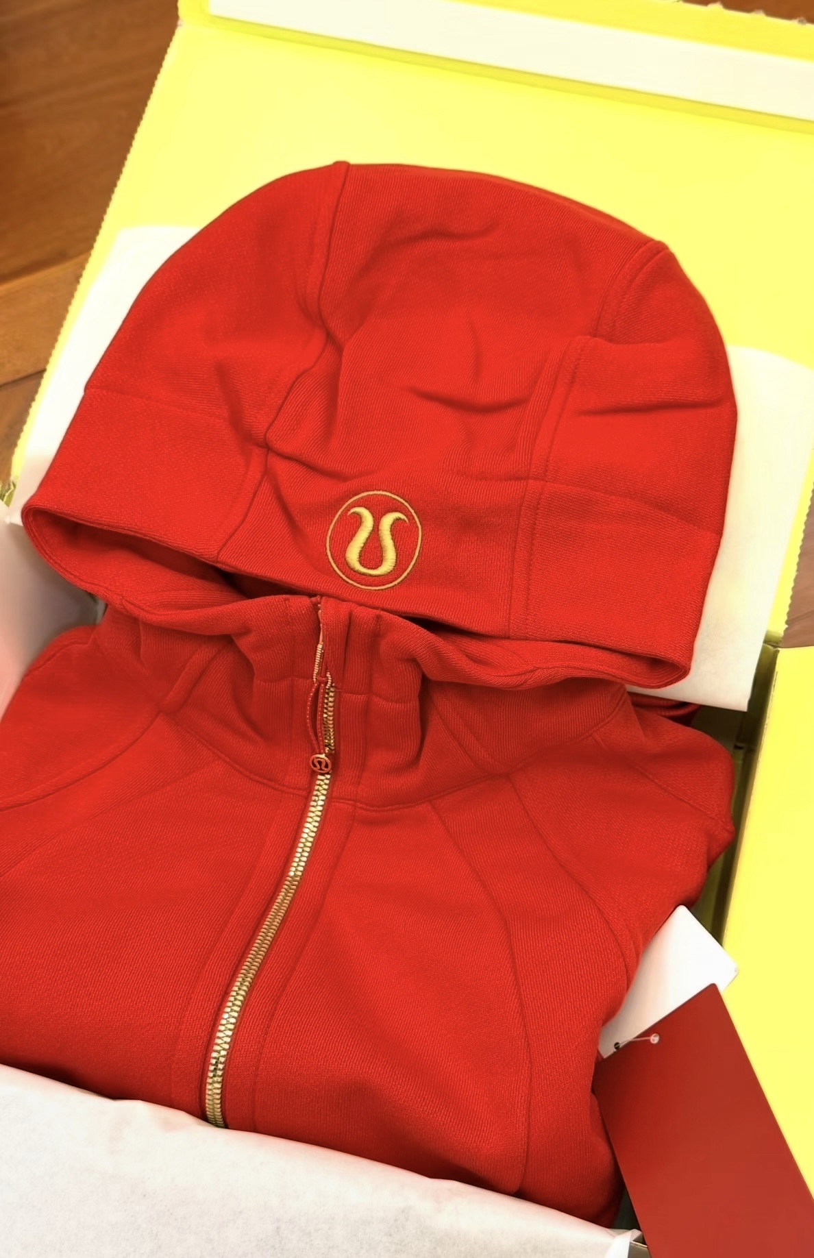 lulu 这款新年限定特别的修身,穿起来特别舒适,非常适合春秋季,休闲百搭茄时尚 scuba里面最显气质的颜色 超级无敌显白啊 很难有这么洋气的卫衣(๑`^´๑) 平常不爱穿红色搭配的都爱上了
