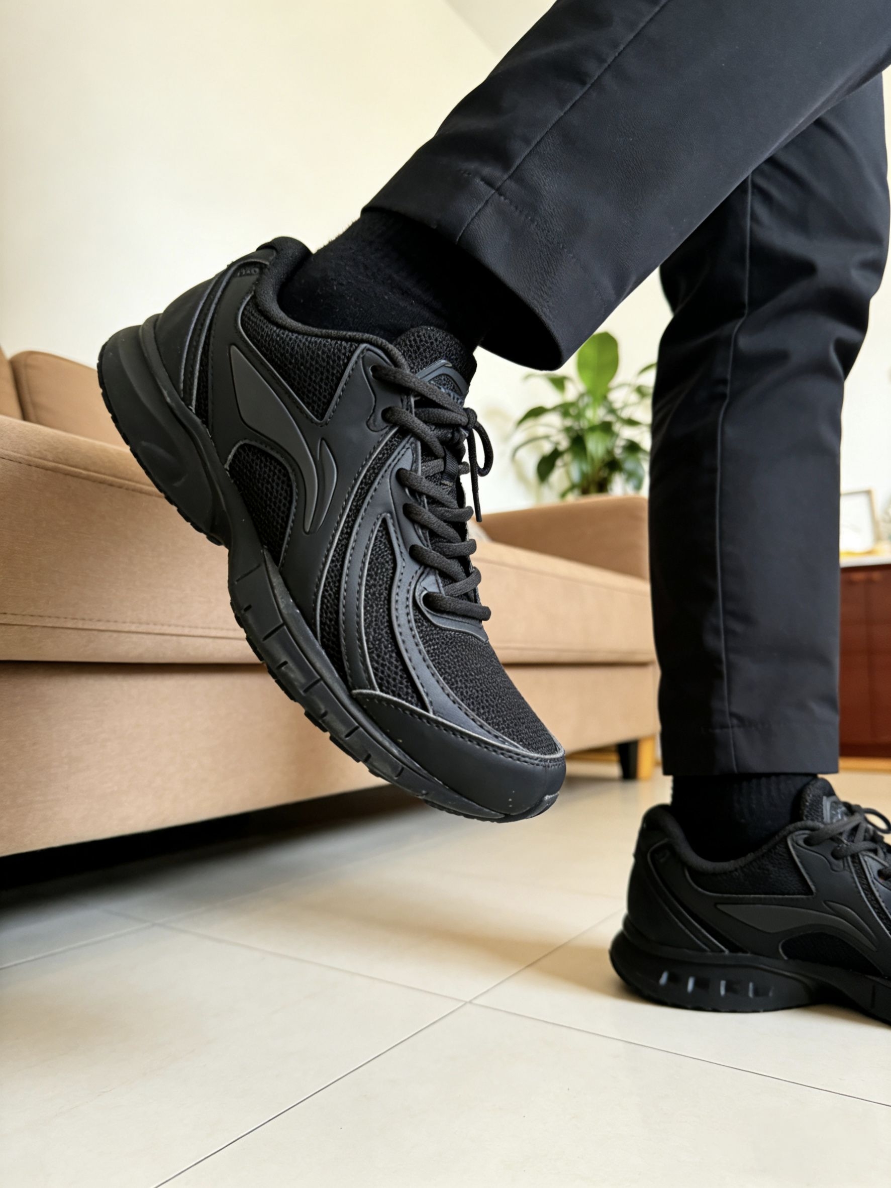 我最近超爱这双全黑实战鞋,鞋面是黑底配上蓝紫logo,灯光下还有渐变反光,真的像暗夜星空一样,神秘感拉满✨ 鞋面用的是轻薄MONO纱和网纱编织,透气性很在线,我打一场球下来,脚也不会闷汗,而且强度够,支撑也稳。 全掌䨻科技加碳板,启动特别快,蹬地那一下很跟脚,突破、变向的时候一点不拖沓。中底外侧有TPU支撑片,防侧翻很扎实,做动作的时候特别安心。 外底是人字纹,室内场抓地力超棒,急停急...