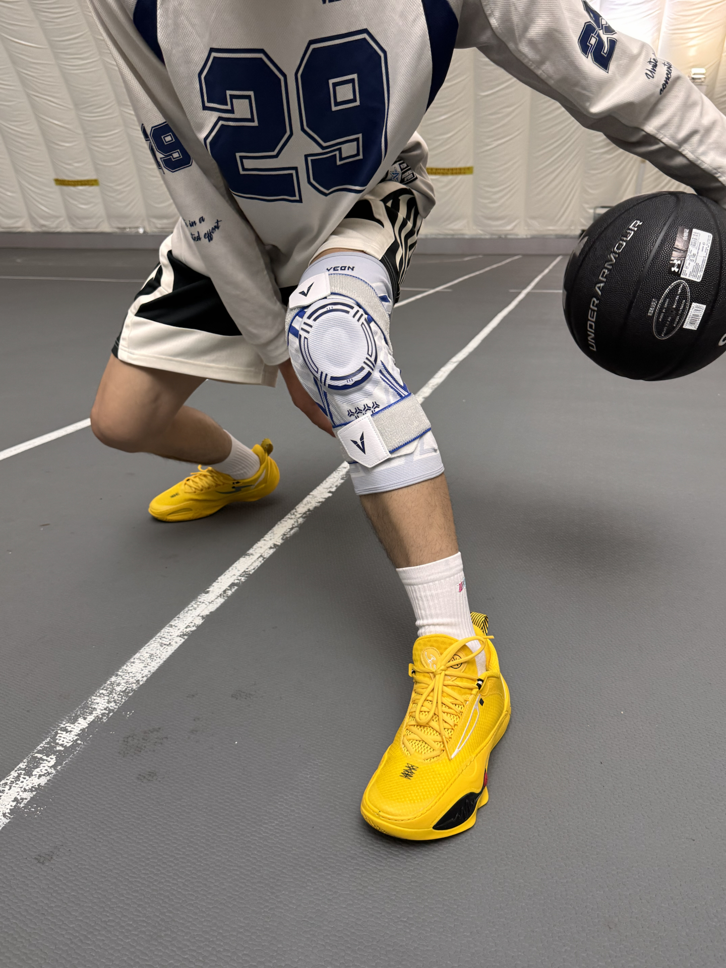 身高178cm,体重65kg,穿M码刚好。 最近打球全靠它,双绑带+硅胶缓冲垫,急停跳投时膝盖稳得一批。针织面料透气不闷,打满全场也没黏腻感,弹簧支撑条能明显感觉到发力时的支撑力。白蓝配色颜值在线,日常穿搭也不突兀。性价比绝了。 #维动VEIDOORN #护膝推荐 #篮球冬训装备党 #维动护膝