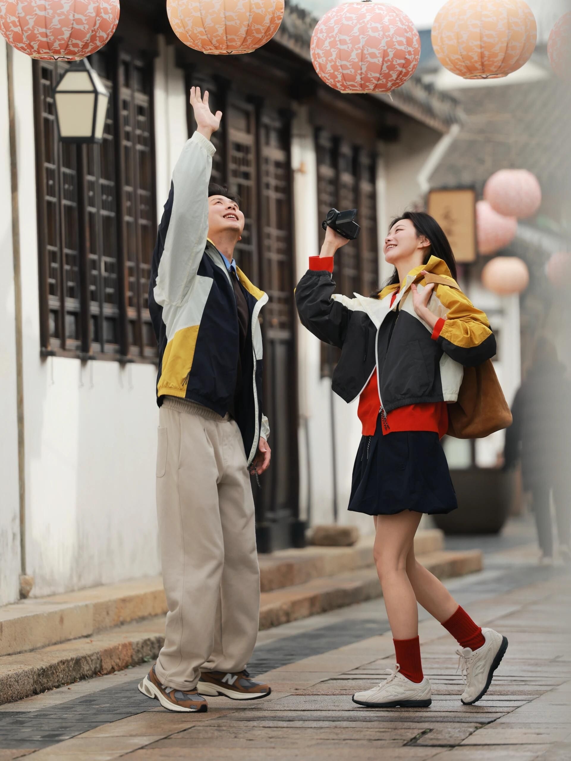 年前拉上搭子出门撒欢 提前逃离忙碌都市,去静宜小镇捕捉纯粹年味~ 阳光下微风裹着糖炒栗子的香气,穿梭在挂满红灯笼的街头,把寻常日子过成了喜欢的模样,这就是年前最该做的事。 这次穿了New Balance Classics系列外套,复古拼接的设计,结合轻阔版型,既有新年的热闹感,又藏着随性的松弛感。我们选了同系列的男女款,亮黄色相呼应,走在人潮里默契又亮眼,是情侣间心照不宣的暗号,也是街头最吸睛的...
