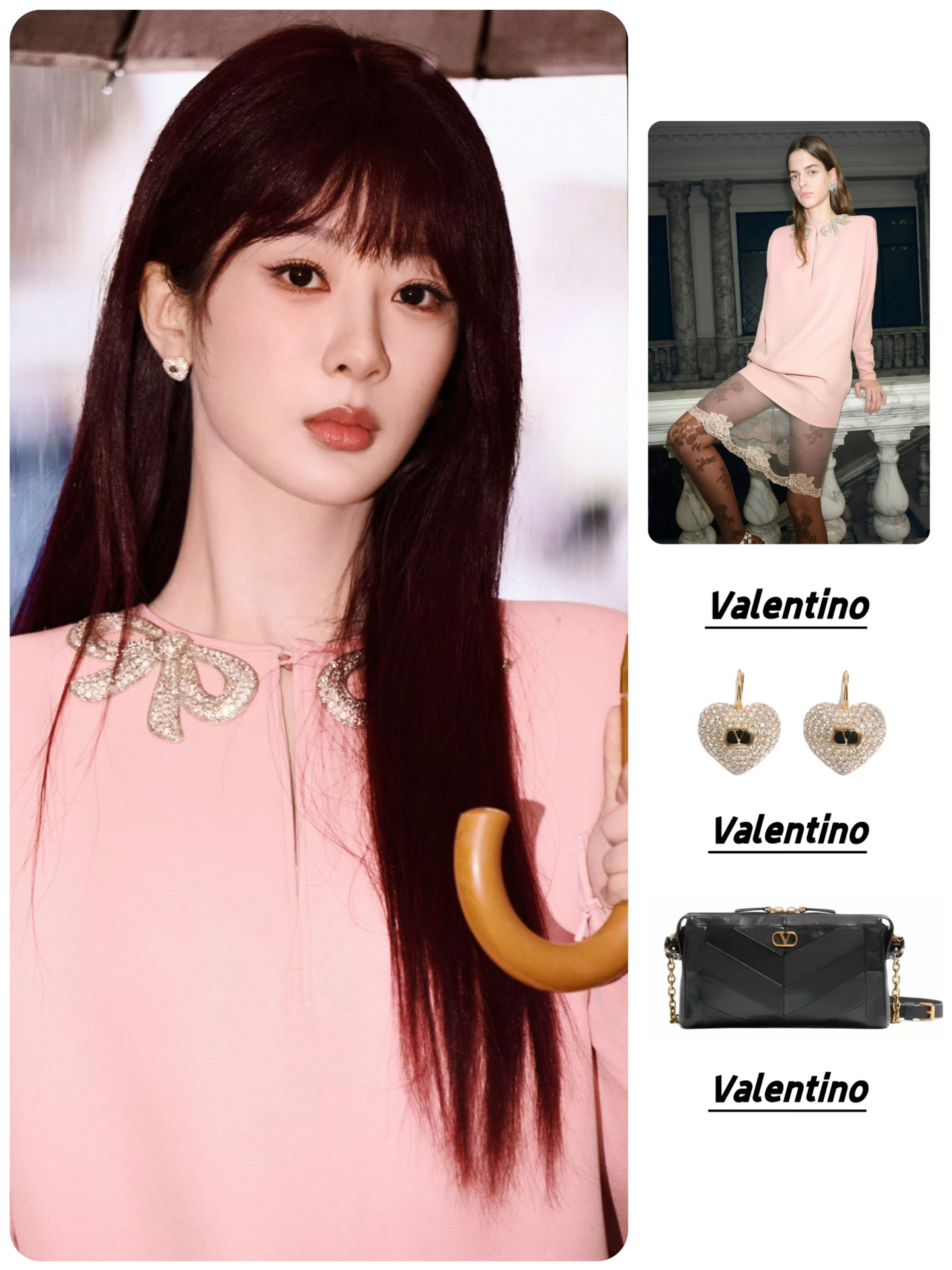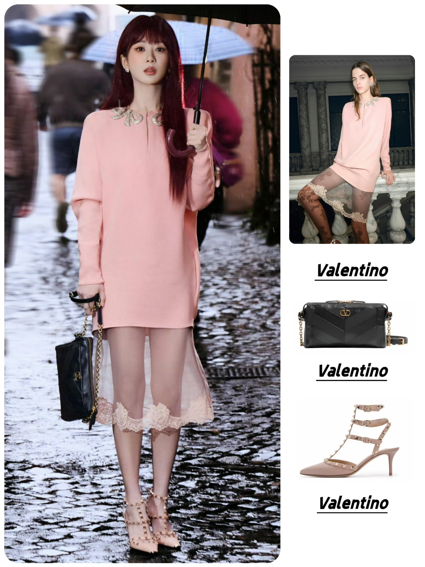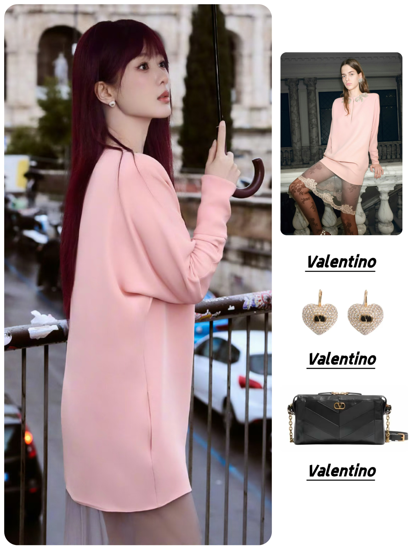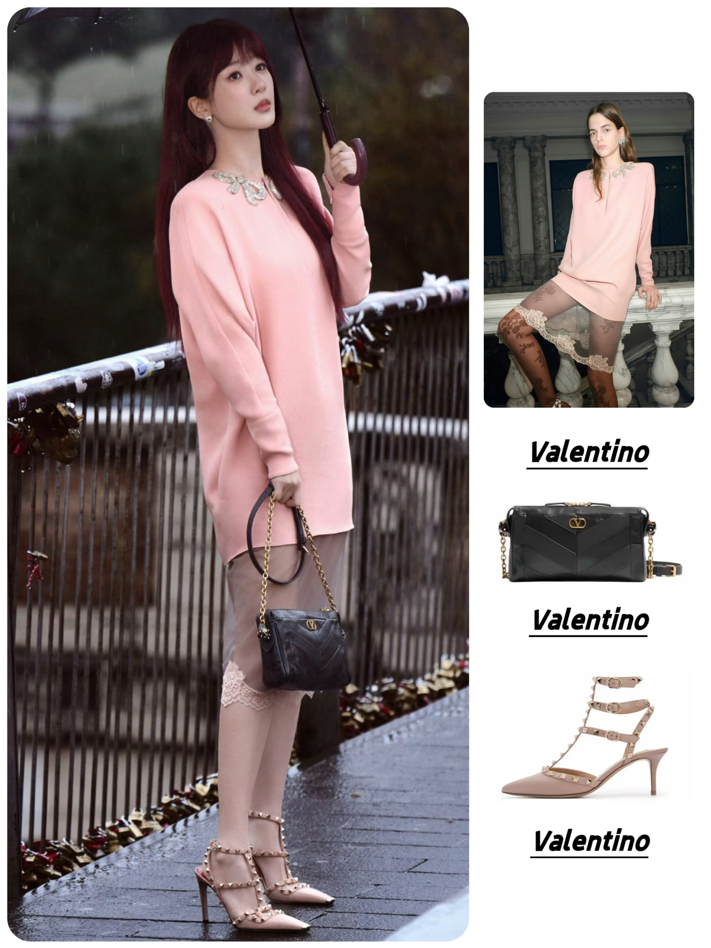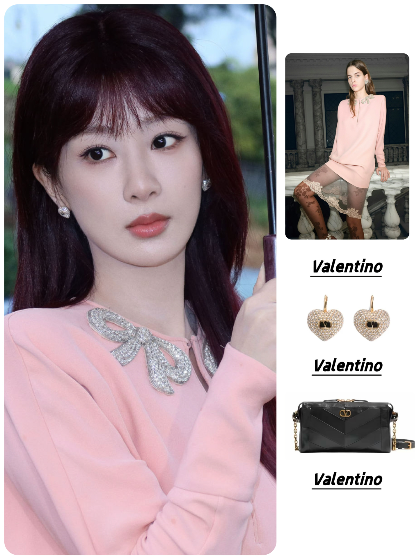 耳饰:Valentino华伦天奴 徽标细节 金属 珐琅 水晶 耳环 👜Valentino华伦天奴 PANTHEA 金色五金件 羊皮 单肩包 👠Valentino华伦天奴 Rockstud 皮革 搭扣铆钉 细跟 高跟鞋 #时装周星光造型图鉴 #杨紫同款