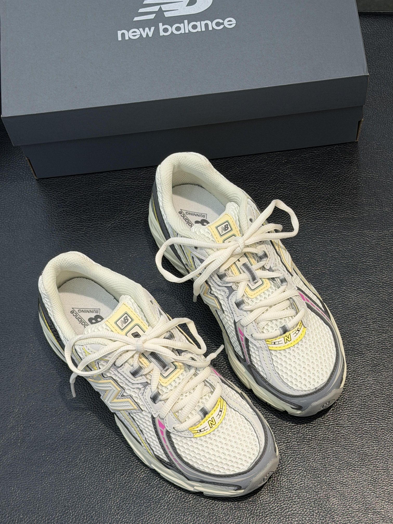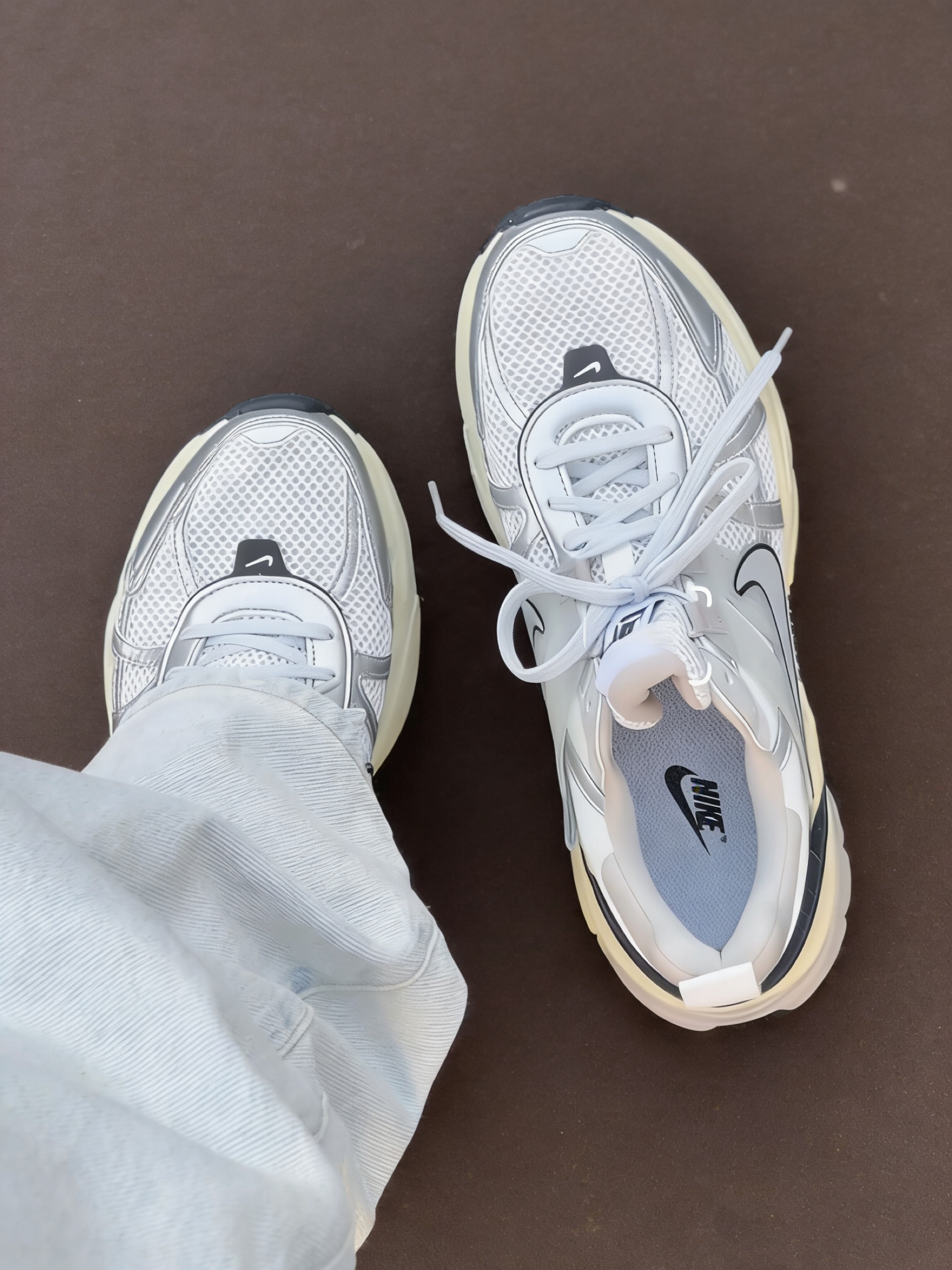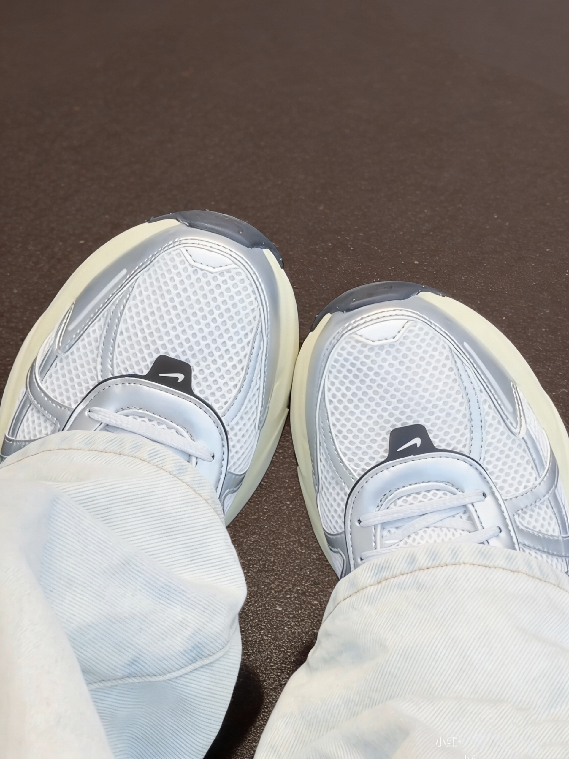 这双鞋真的把Y2K未来感和复古氛围感玩明白了!奶白网面拼接亮银色饰条,配上做旧感的米白中底,加上标志性的黑勾Swoosh,低饱和度的配色高级又不挑人,黄黑皮上脚也完全无压力,男女通吃适配度拉满。鞋型线条流畅利落,完全没有普通老爹鞋的笨重感,上脚不显脚大反而悄悄修饰脚型,低调又有辨识度,走在路上完全不会撞款尴尬。
